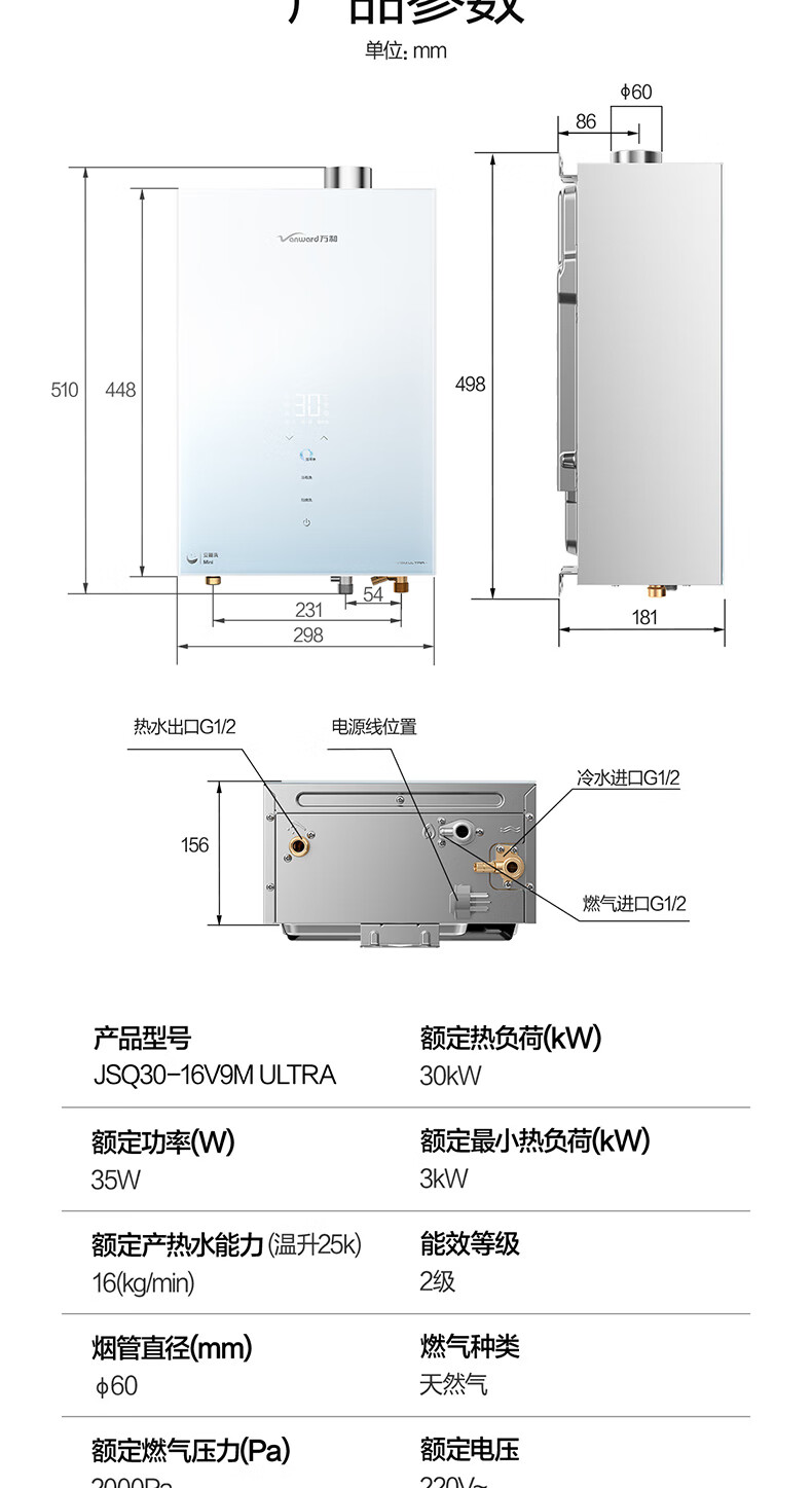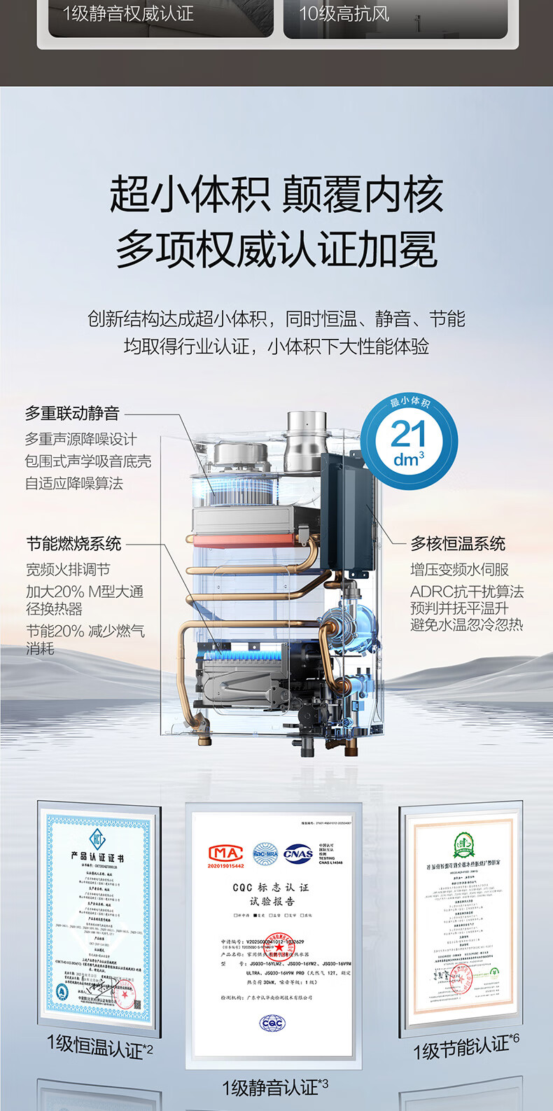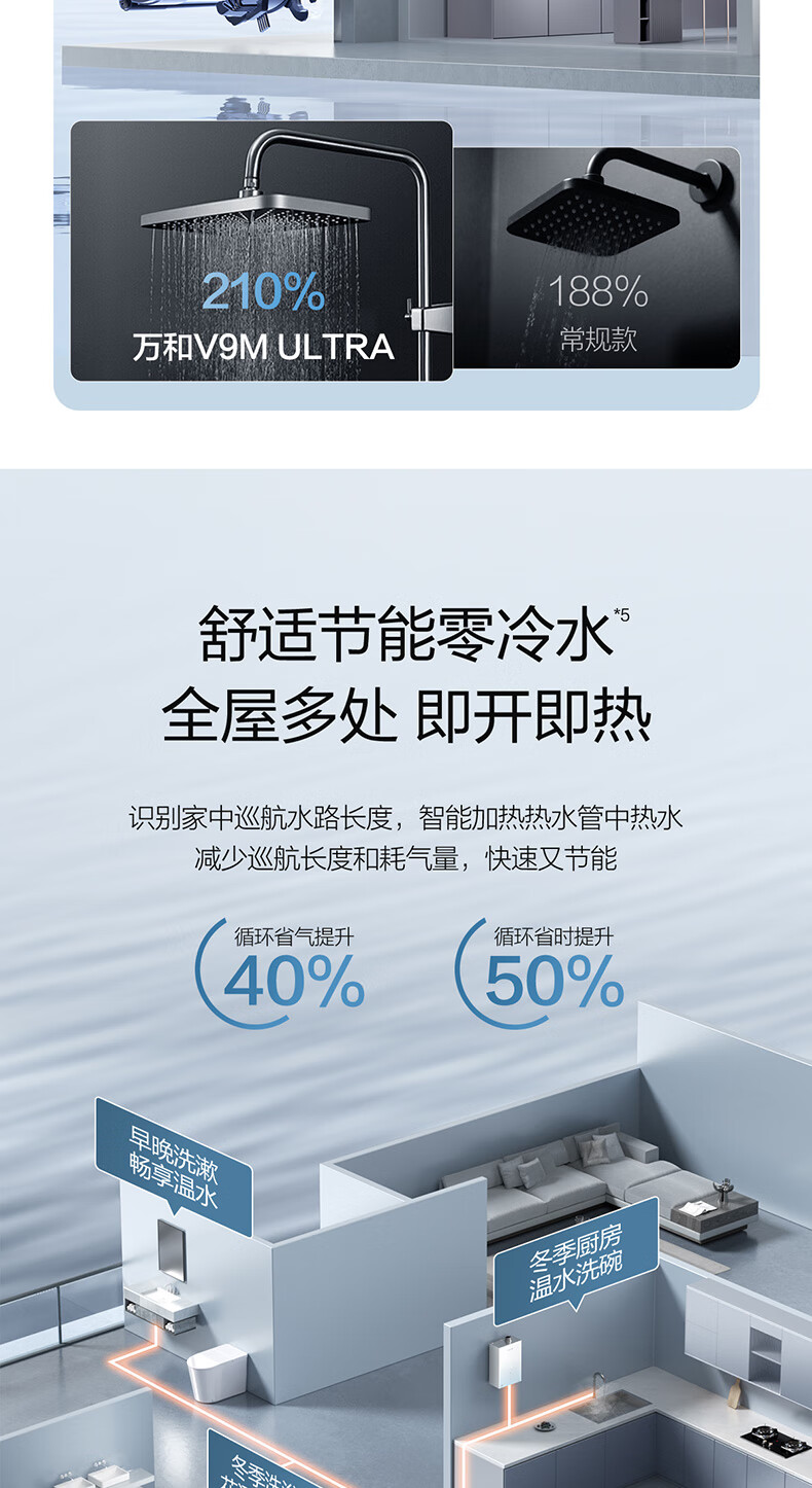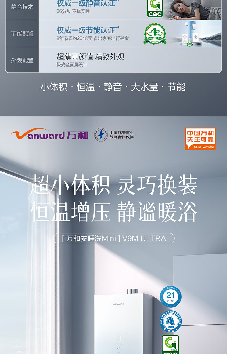Wanhe Ansuiwash MINI V9M series small volume casual installation first-class constant temperature first-class energy-saving first-class silent household natural gas water heater gas approximate A3 paper size 16L MINI small volume zero cold water version
