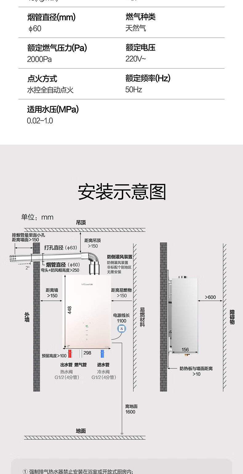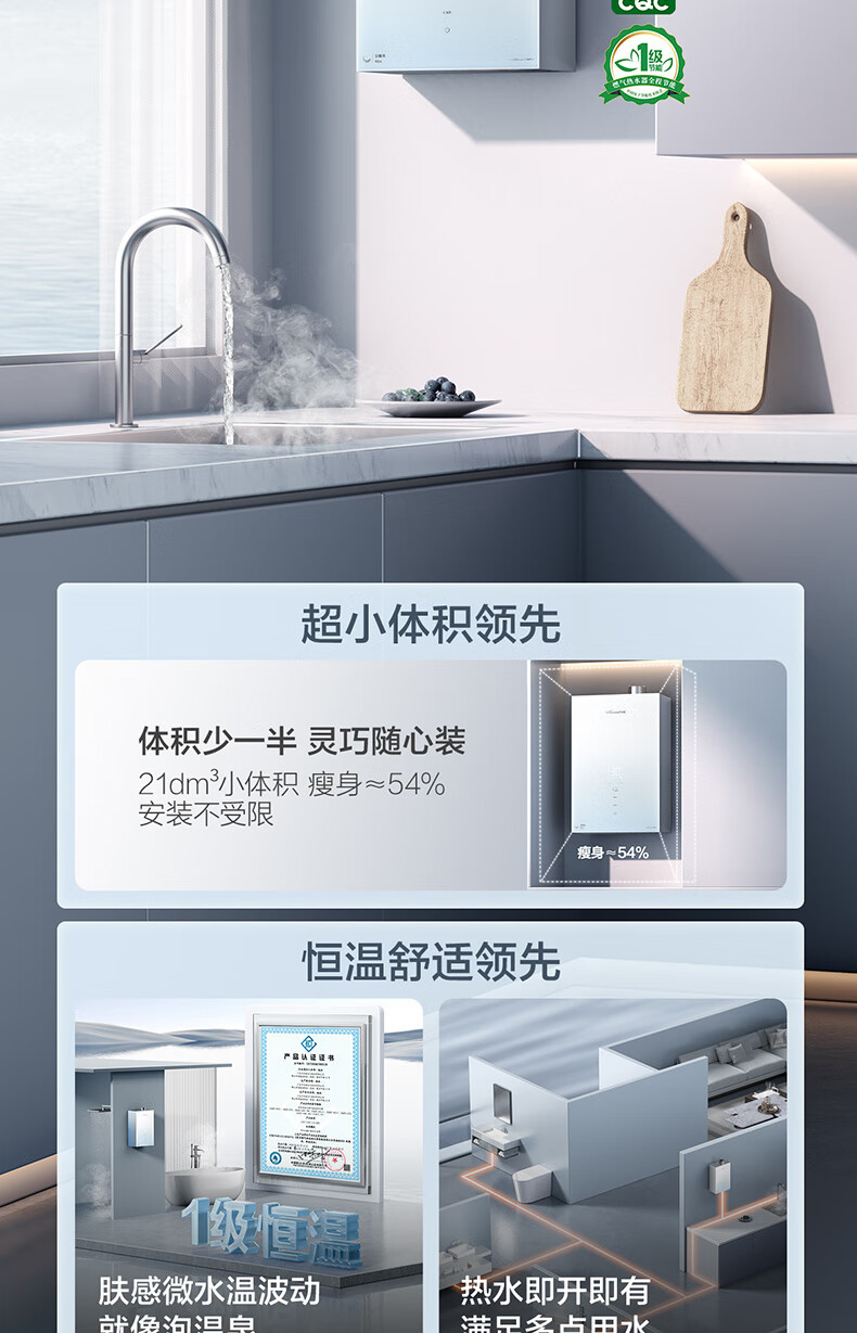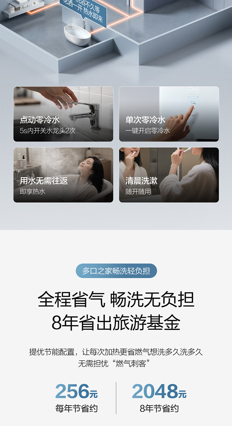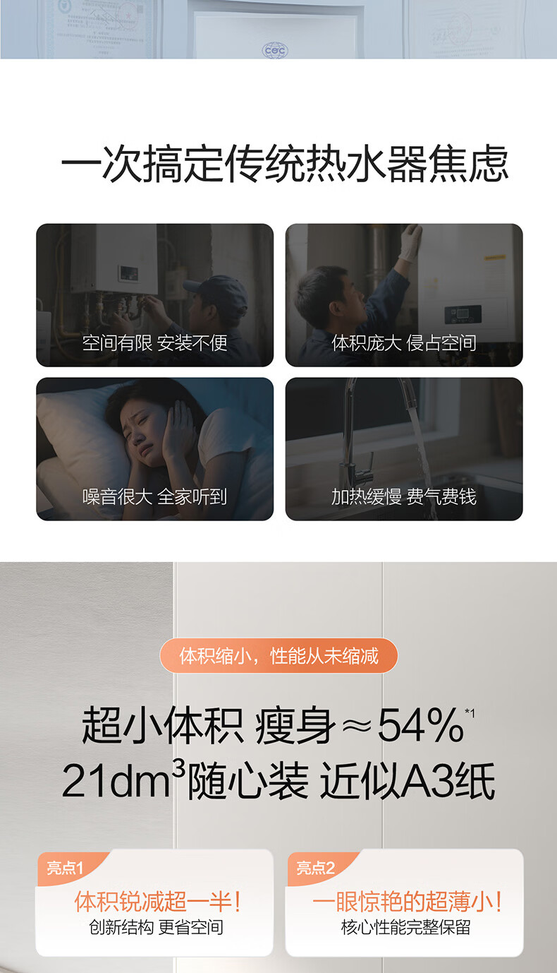 Wanhe Ansuiwash MINI V9M series small volume casual installation first-class constant temperature first-class energy-saving first-class silent household natural gas water heater gas approximate A3 paper size 16L MINI small volume zero cold water version
