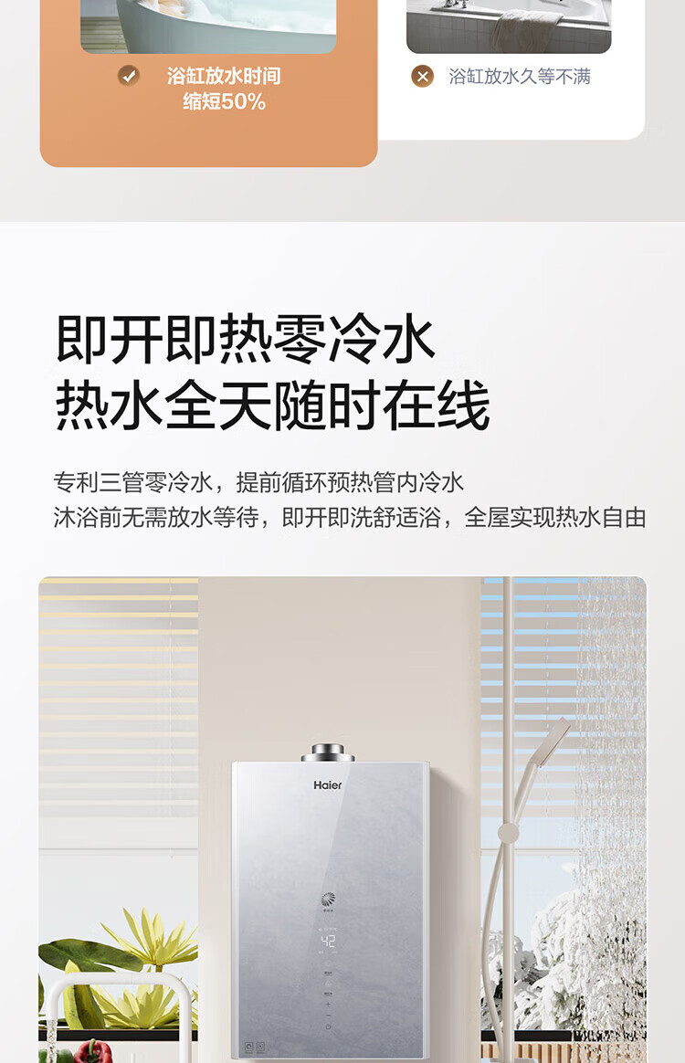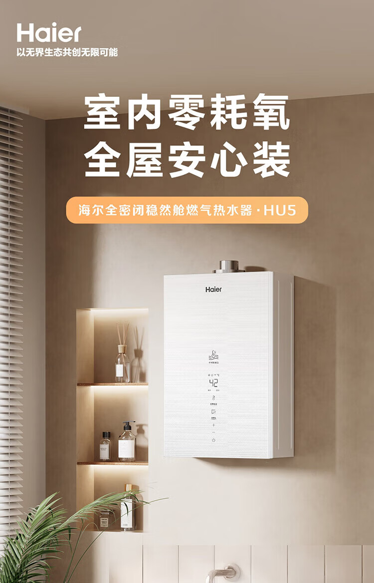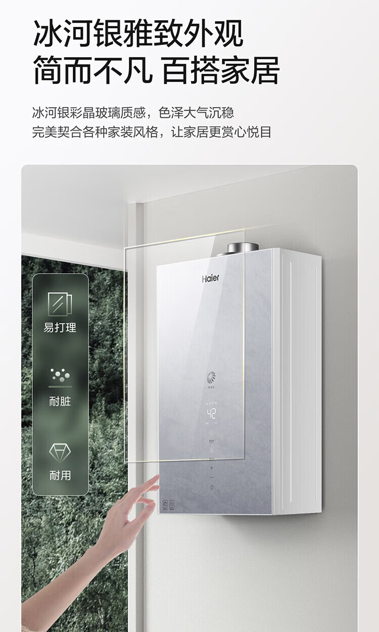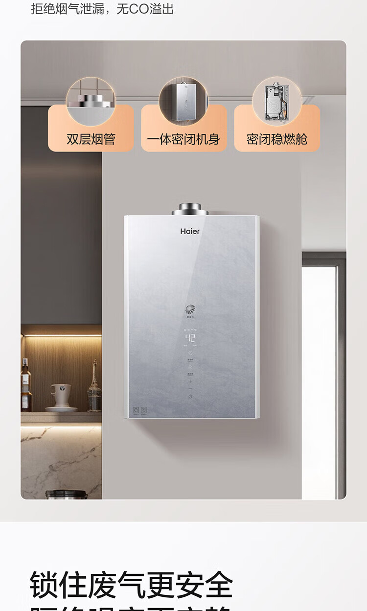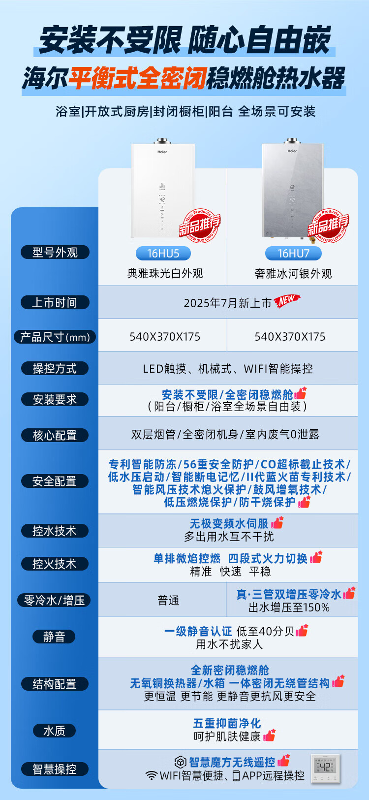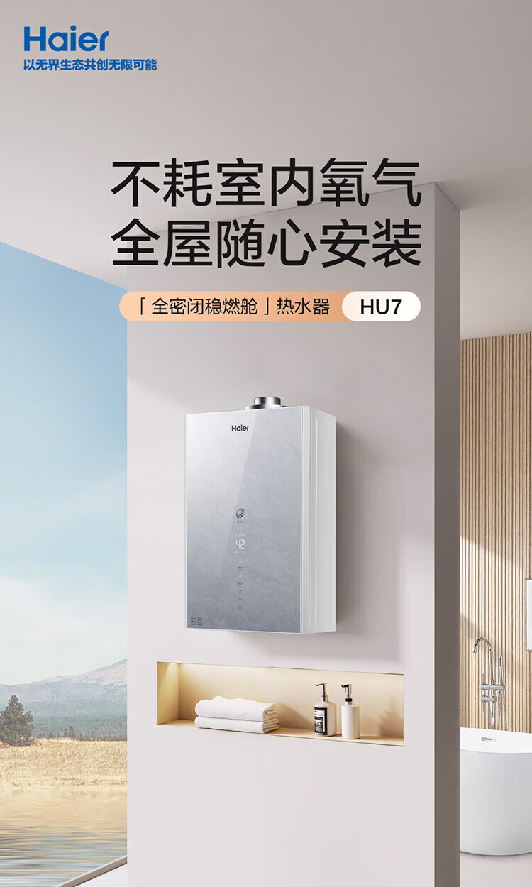 Haier gas water heater 16 liters level one silent frequency conversion water servo constant temperature household natural gas balanced zero cold water pressurized fully sealed stable combustion chamber state subsidy trade-in 16L HU7 three-pipe zero cold water + bathroom kitchen | cabinet balcony can be installed