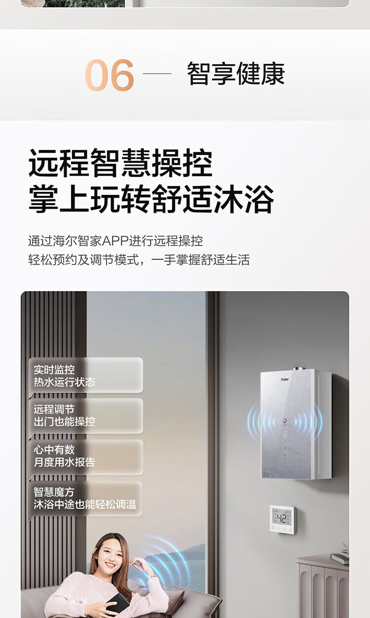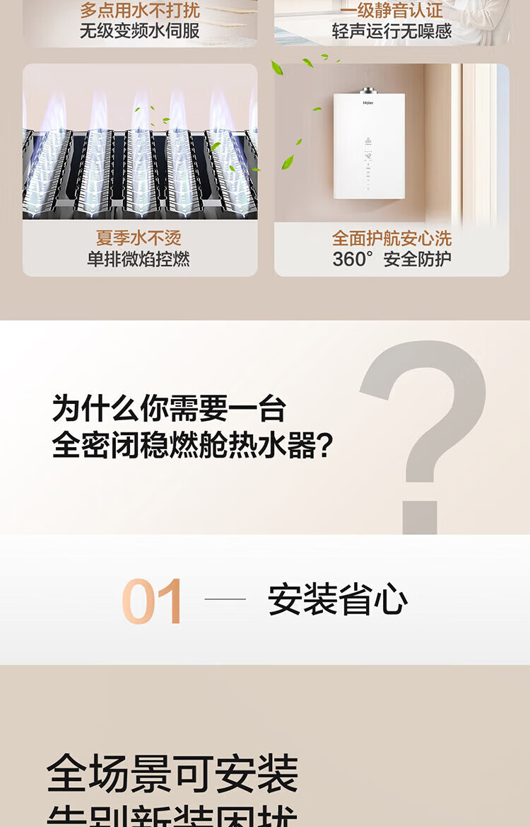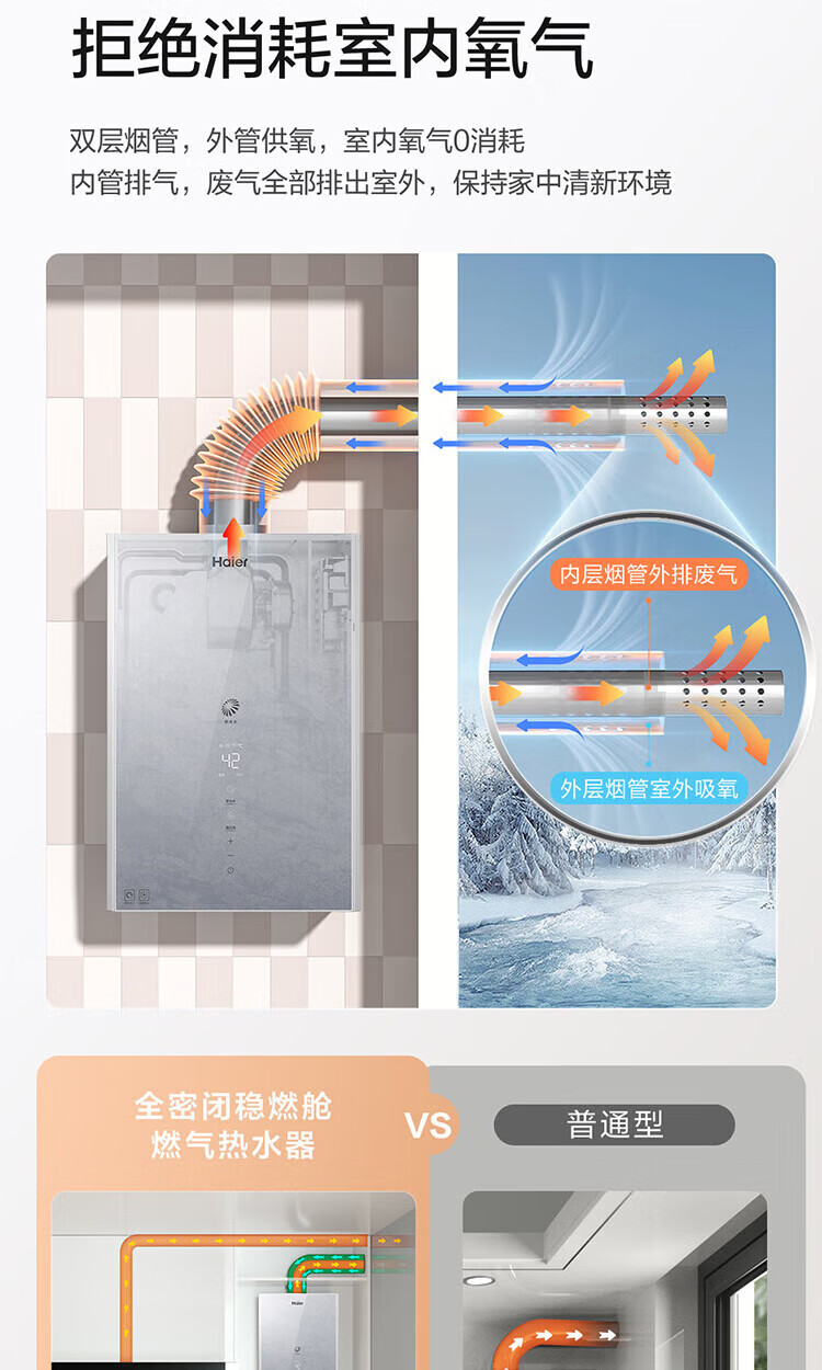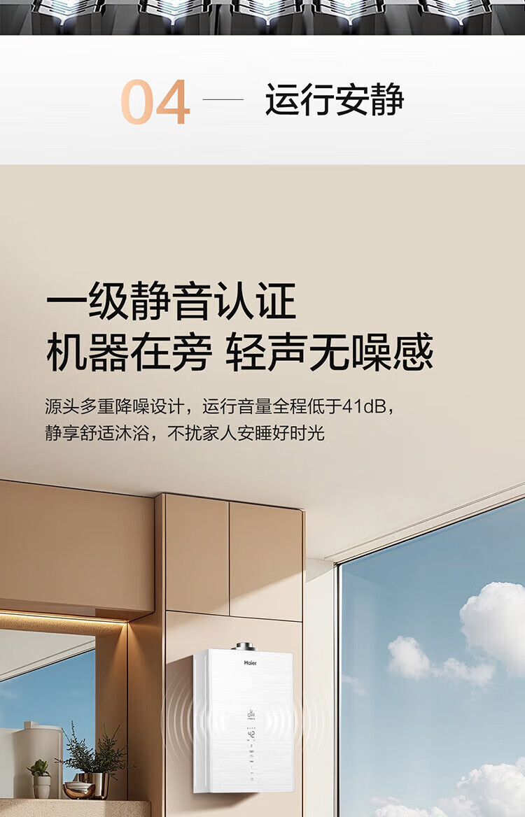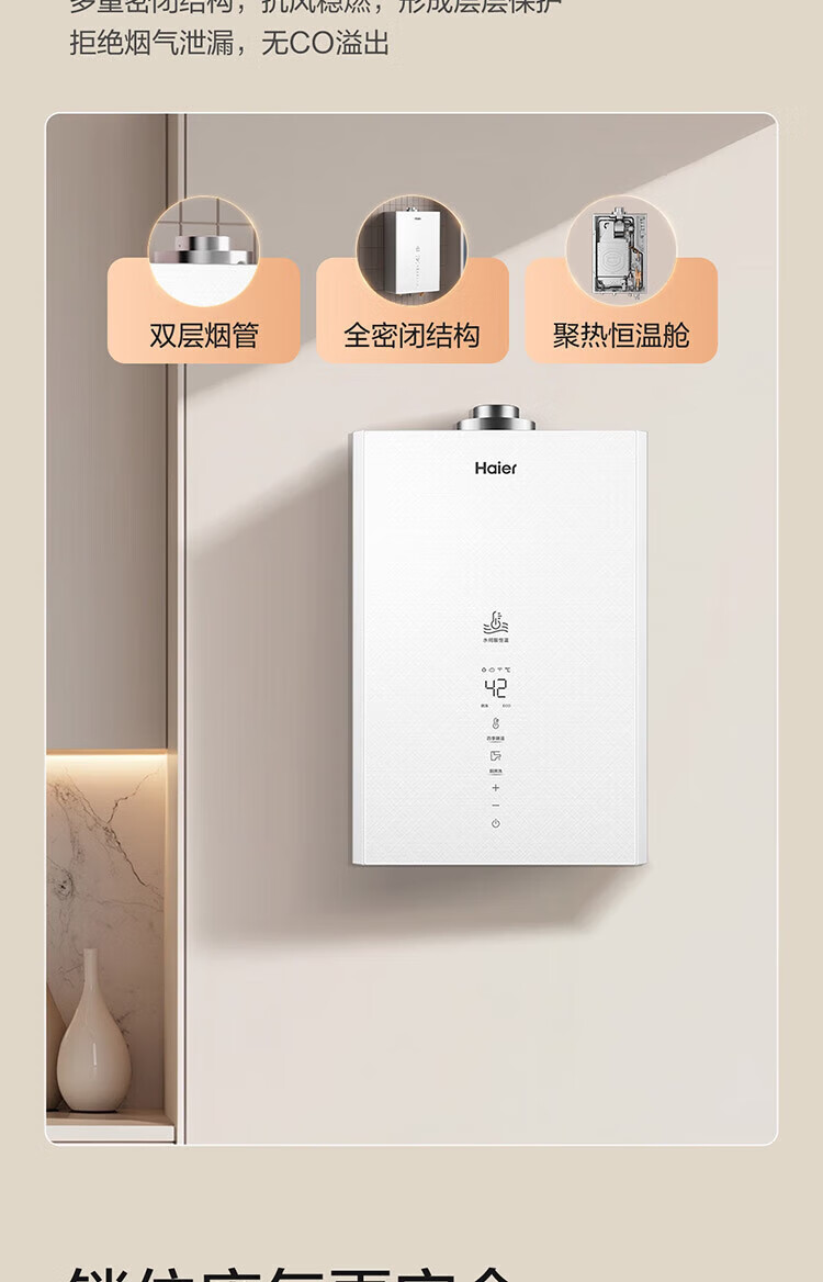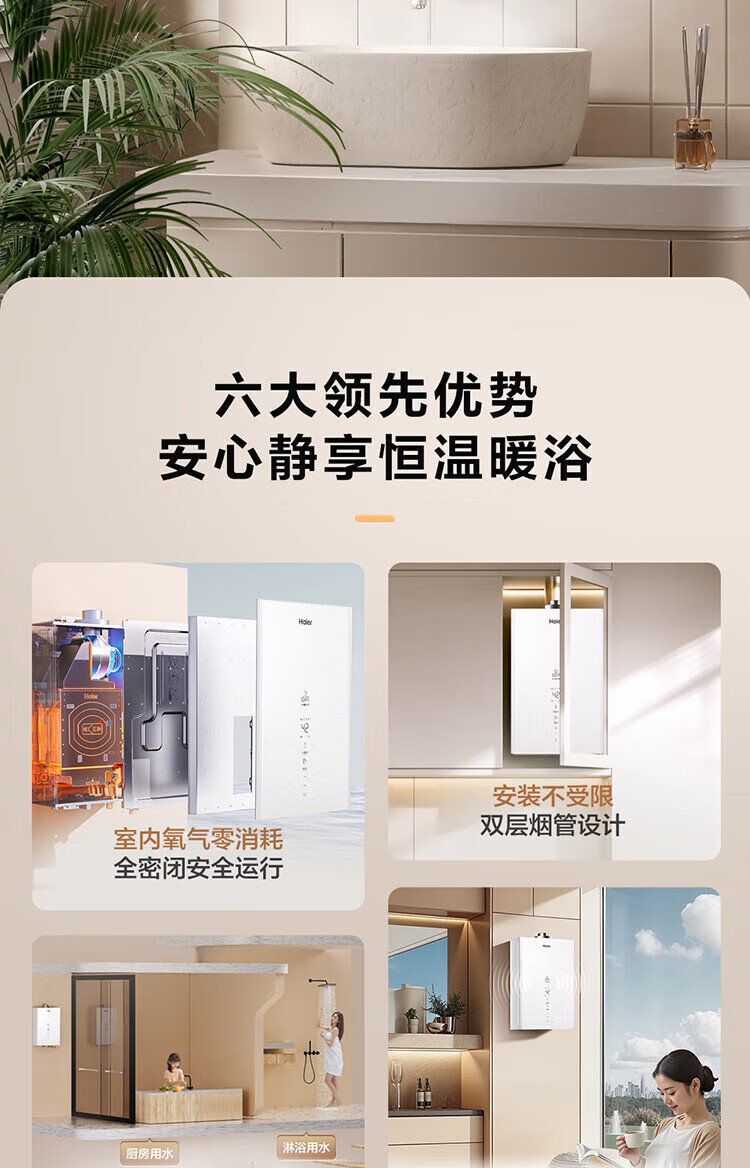 Haier gas water heater 16 liters level one silent frequency conversion water servo constant temperature household natural gas balanced zero cold water pressurized fully sealed stable combustion chamber state subsidy trade-in 16L HU7 three-pipe zero cold water + bathroom kitchen | cabinet balcony can be installed