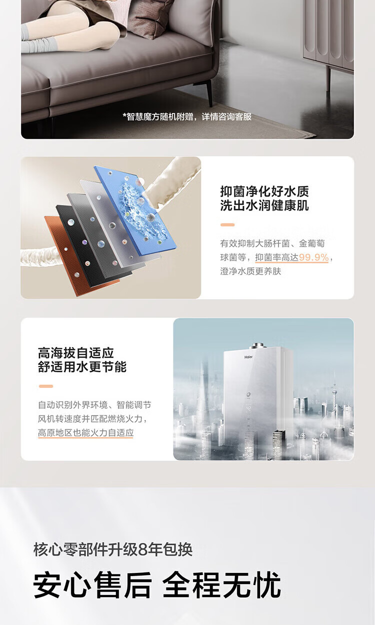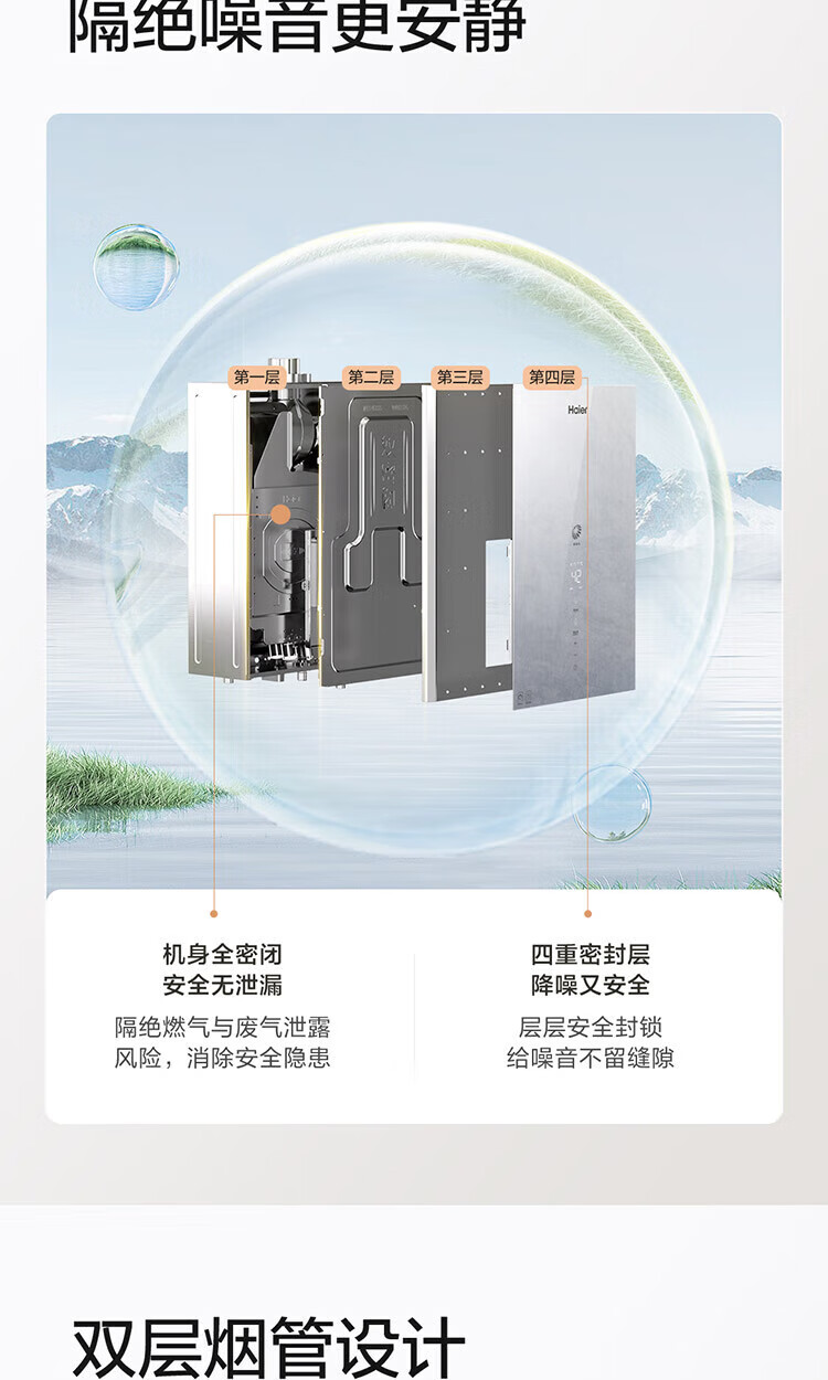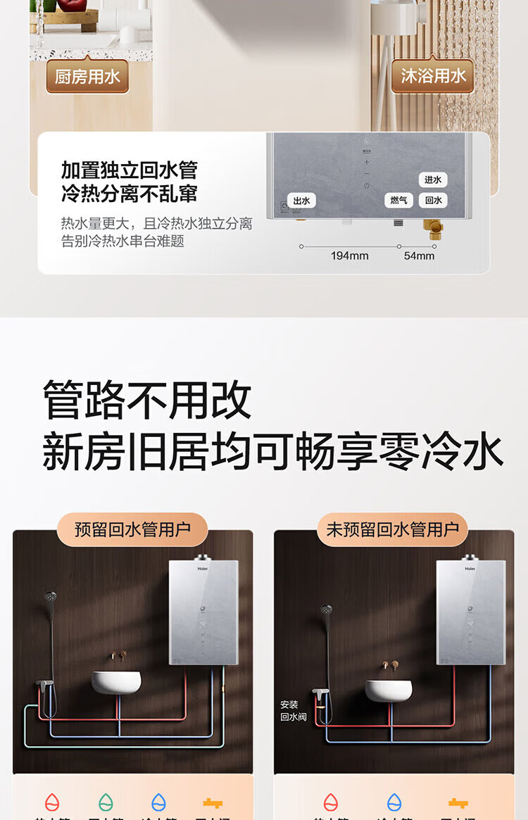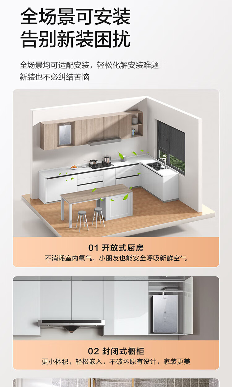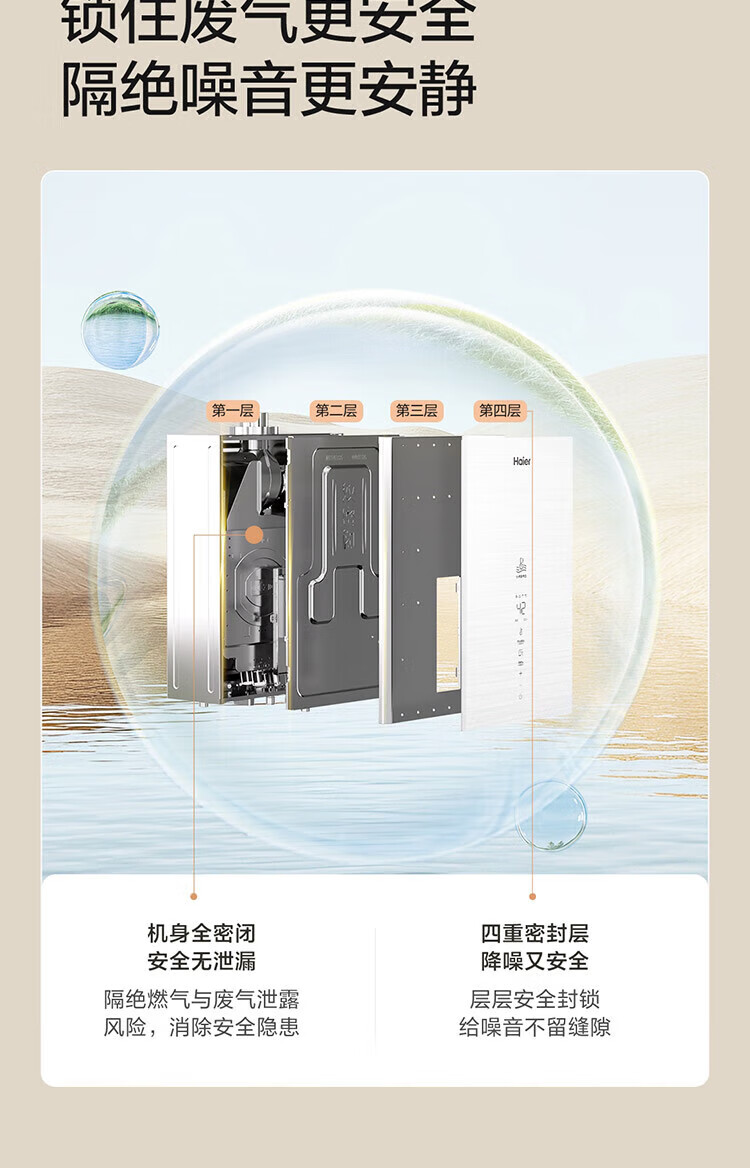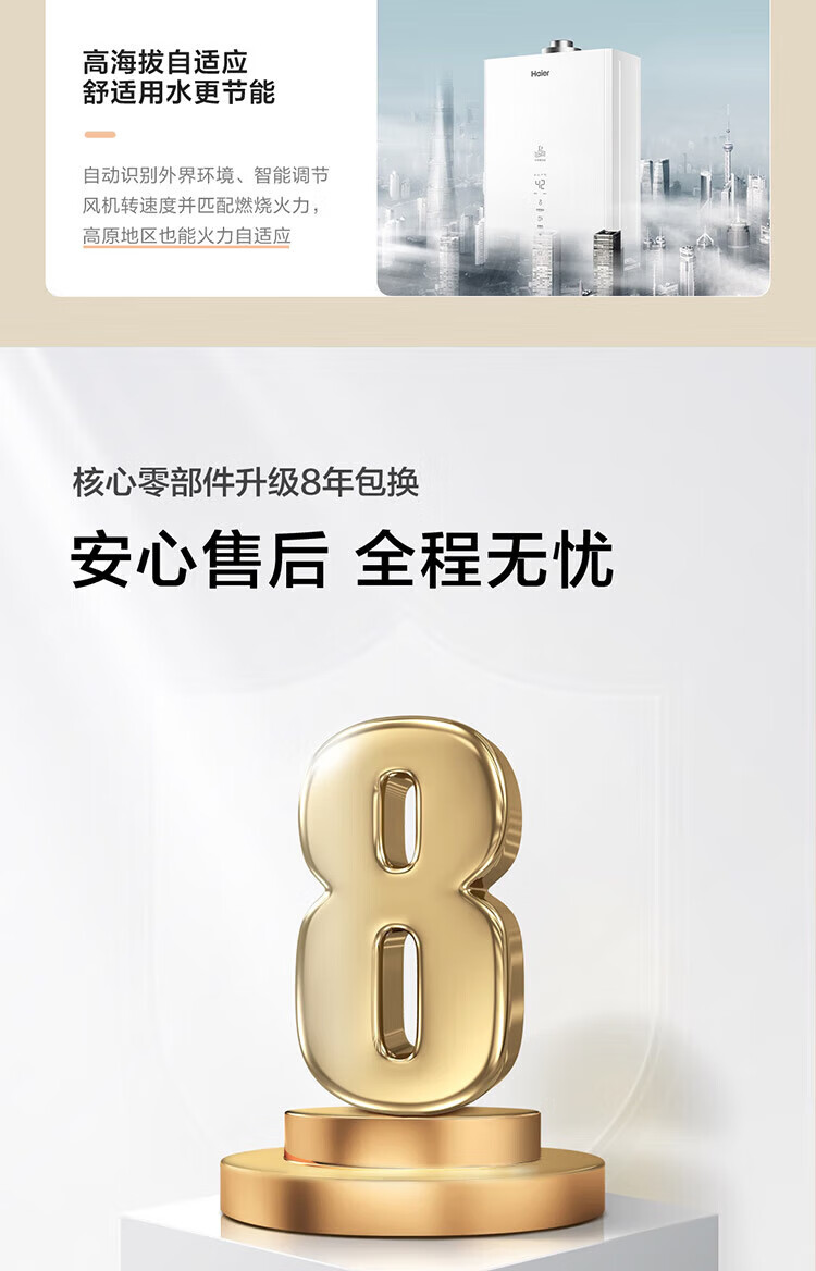 Haier gas water heater 16 liters level one silent frequency conversion water servo constant temperature household natural gas balanced zero cold water pressurized fully sealed stable combustion chamber state subsidy trade-in 16L HU7 three-pipe zero cold water + bathroom kitchen | cabinet balcony can be installed