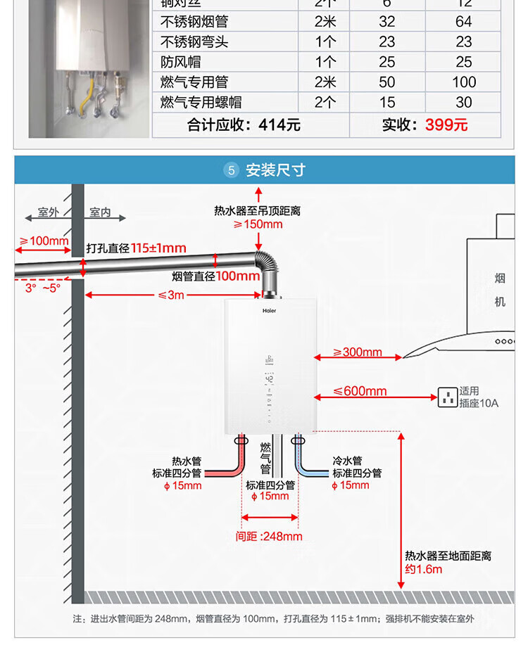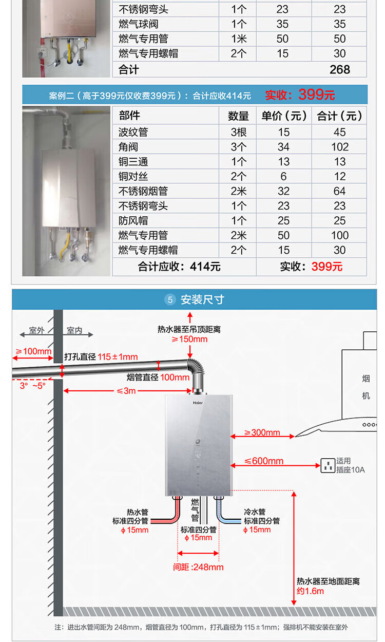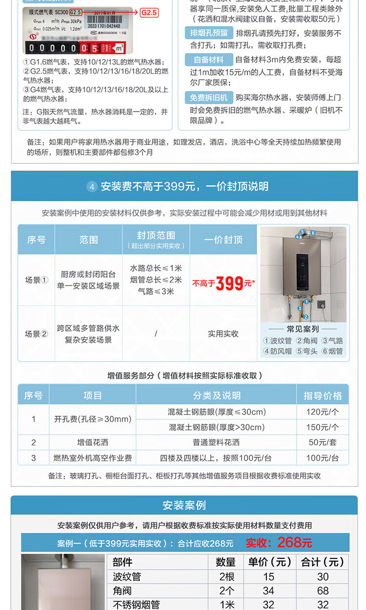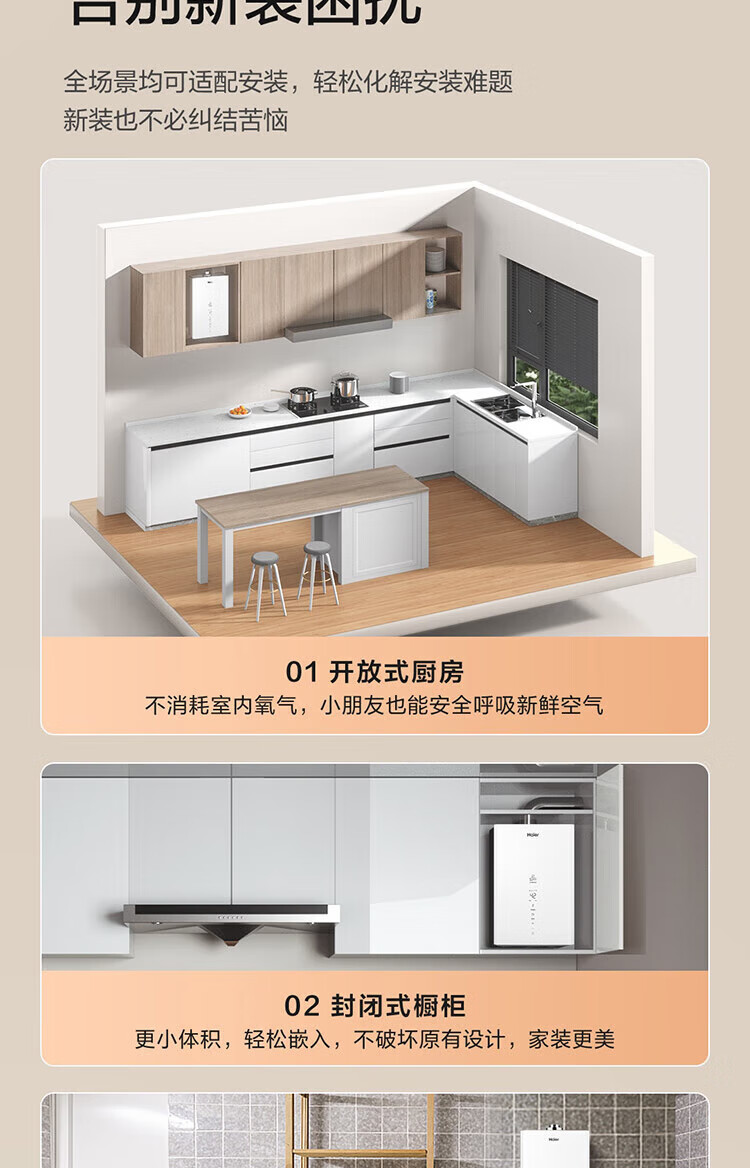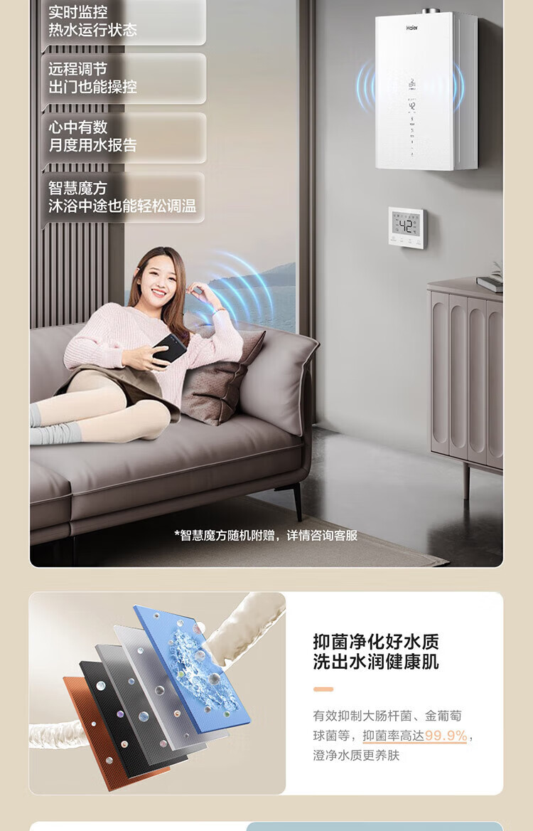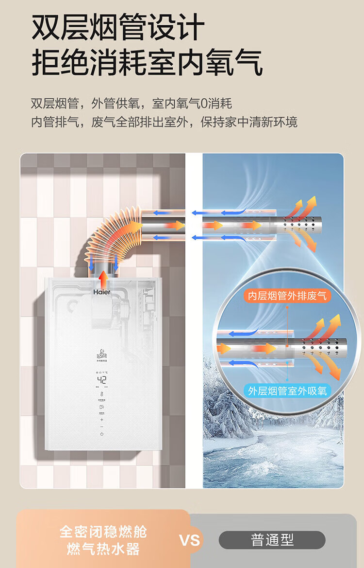 Haier gas water heater 16 liters level one silent frequency conversion water servo constant temperature household natural gas balanced zero cold water pressurized fully sealed stable combustion chamber state subsidy trade-in 16L HU7 three-pipe zero cold water + bathroom kitchen | cabinet balcony can be installed