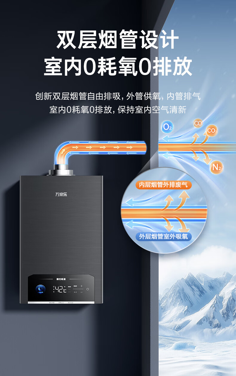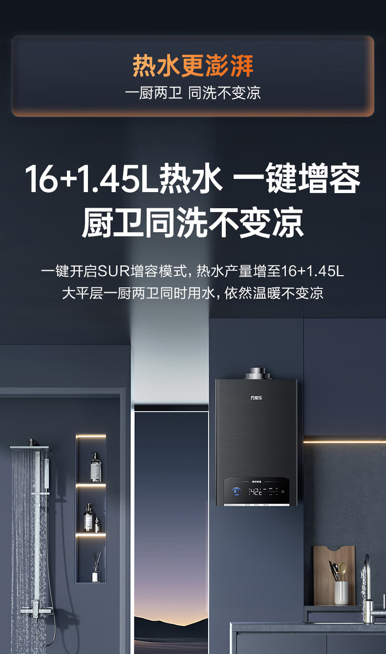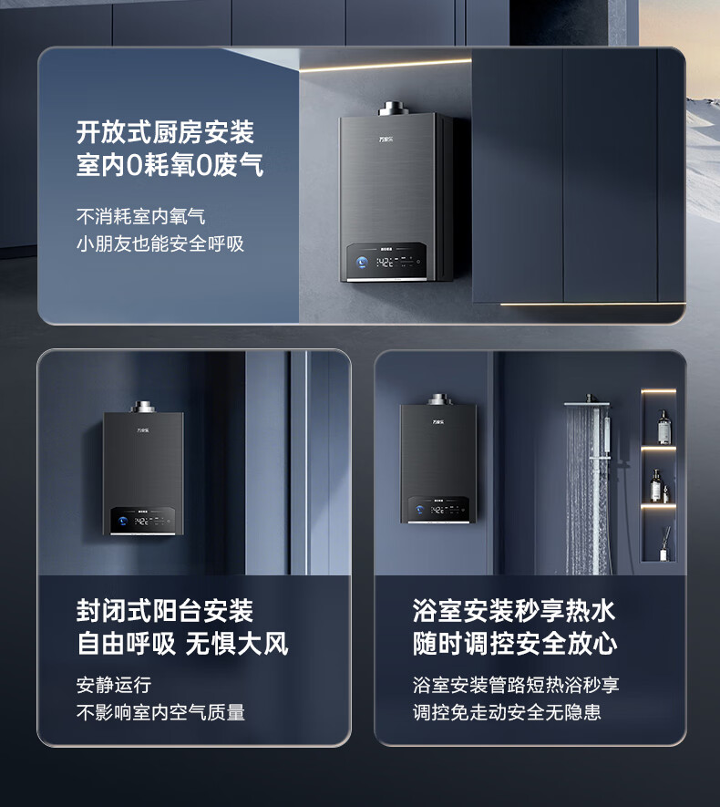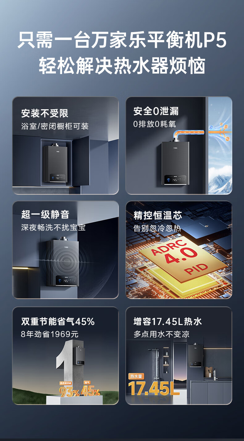 Macro balanced gas water heater P5R1 has a 15% discount on national supplements. Upgraded to 4.0 precise control constant temperature and super-silent for bathrooms and open kitchens. Dual energy saving of 45%. 16L. Newly upgraded silent 16P5R1 (F) natural gas.