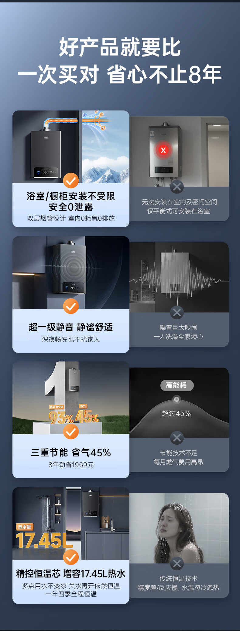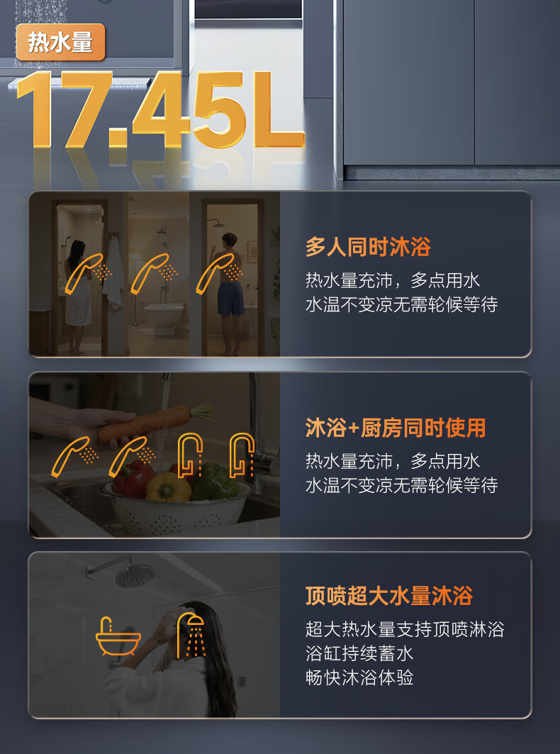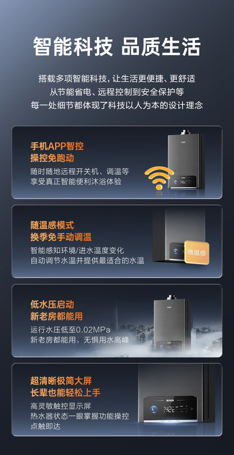 Macro balanced gas water heater P5R1 has a 15% discount on national supplements. Upgraded to 4.0 precise control constant temperature and super-silent for bathrooms and open kitchens. Dual energy saving of 45%. 16L. Newly upgraded silent 16P5R1 (F) natural gas.