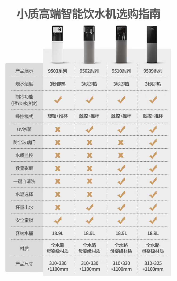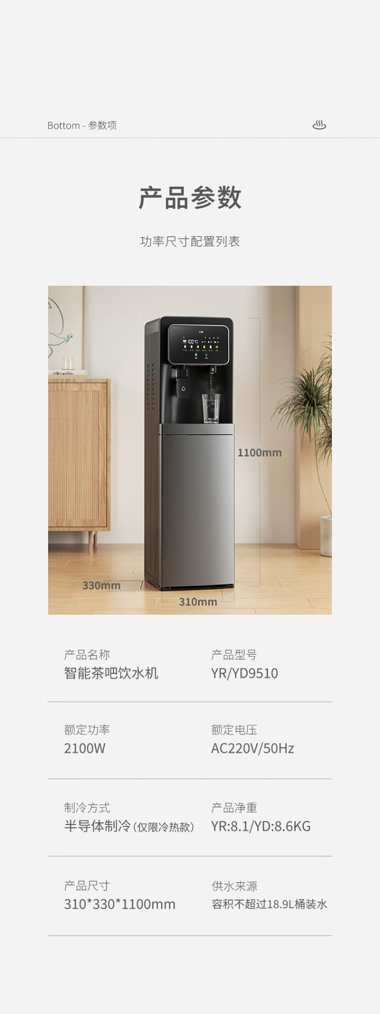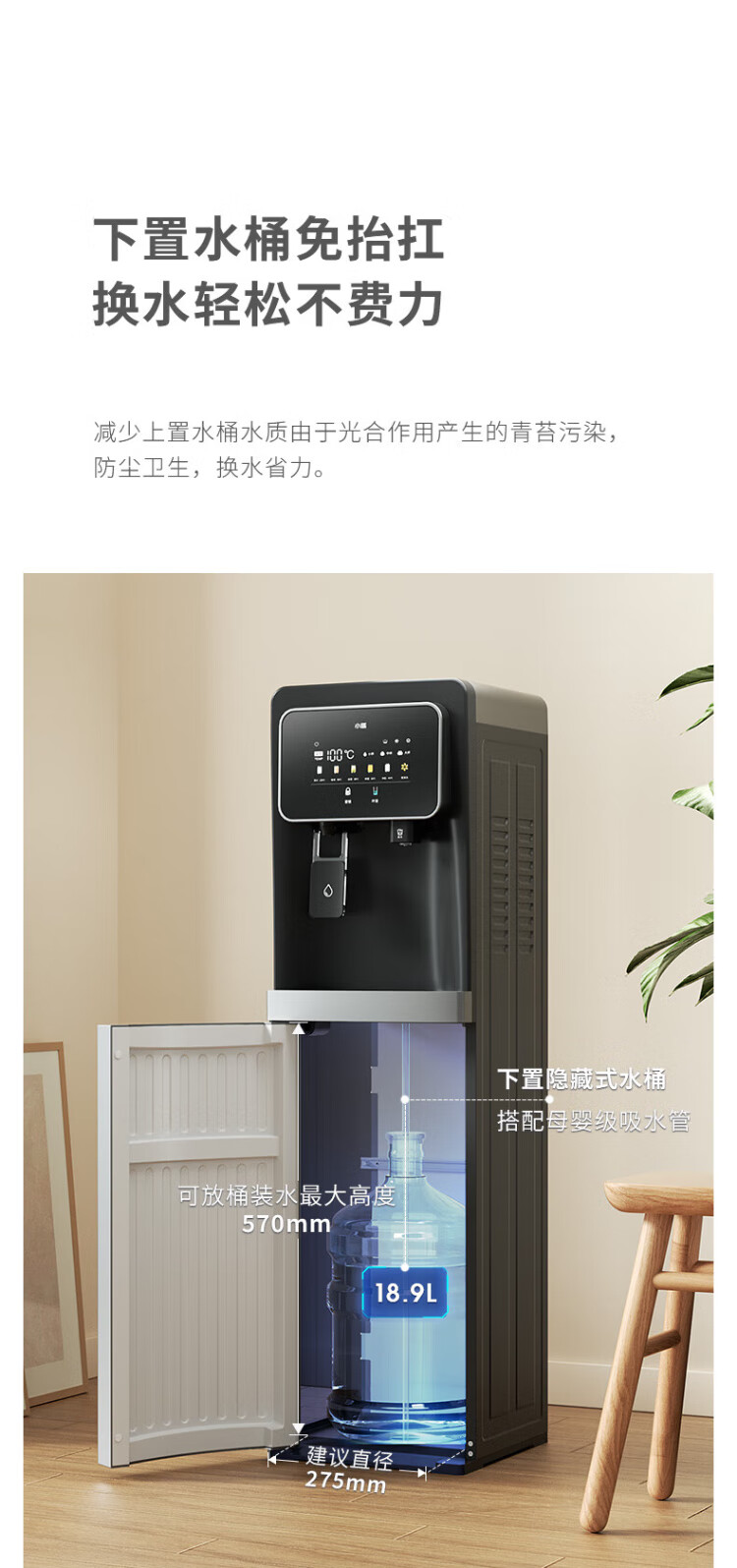 Small instant hot water dispenser with bottom bucket, household vertical fully automatic intelligent all-in-one machine, child lock, anti-dry heating, warm and cold office appliances, installation-free, multi-level temperature selection, water quality monitoring + UV sterilization + multi-level temperature adjustment YD9509, hot and cold type, full waterway maternal and infant material