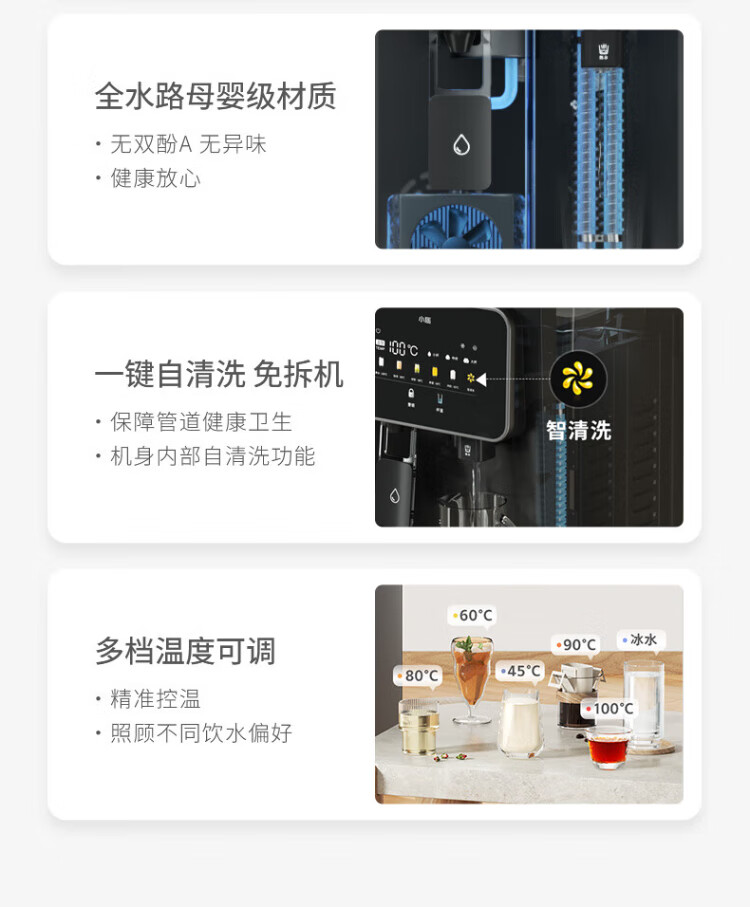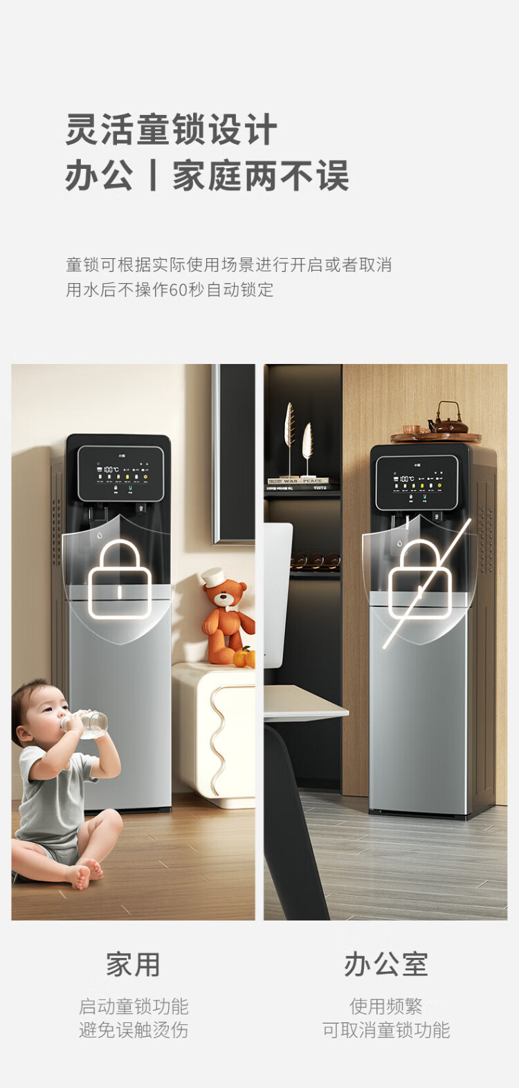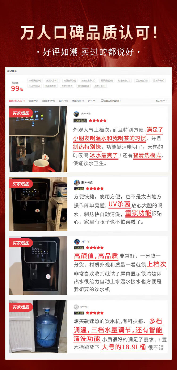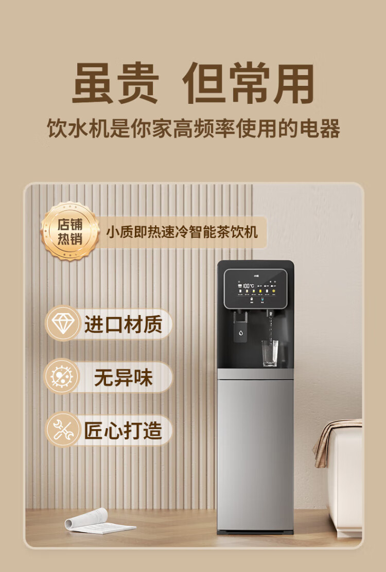 Small instant hot water dispenser with bottom bucket, household vertical fully automatic intelligent all-in-one machine, child lock, anti-dry heating, warm and cold office appliances, installation-free, multi-level temperature selection, water quality monitoring + UV sterilization + multi-level temperature adjustment YD9509, hot and cold type, full waterway maternal and infant material