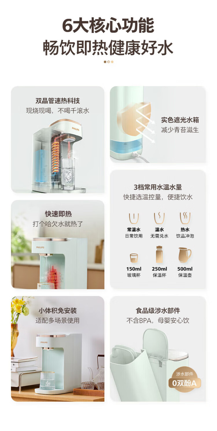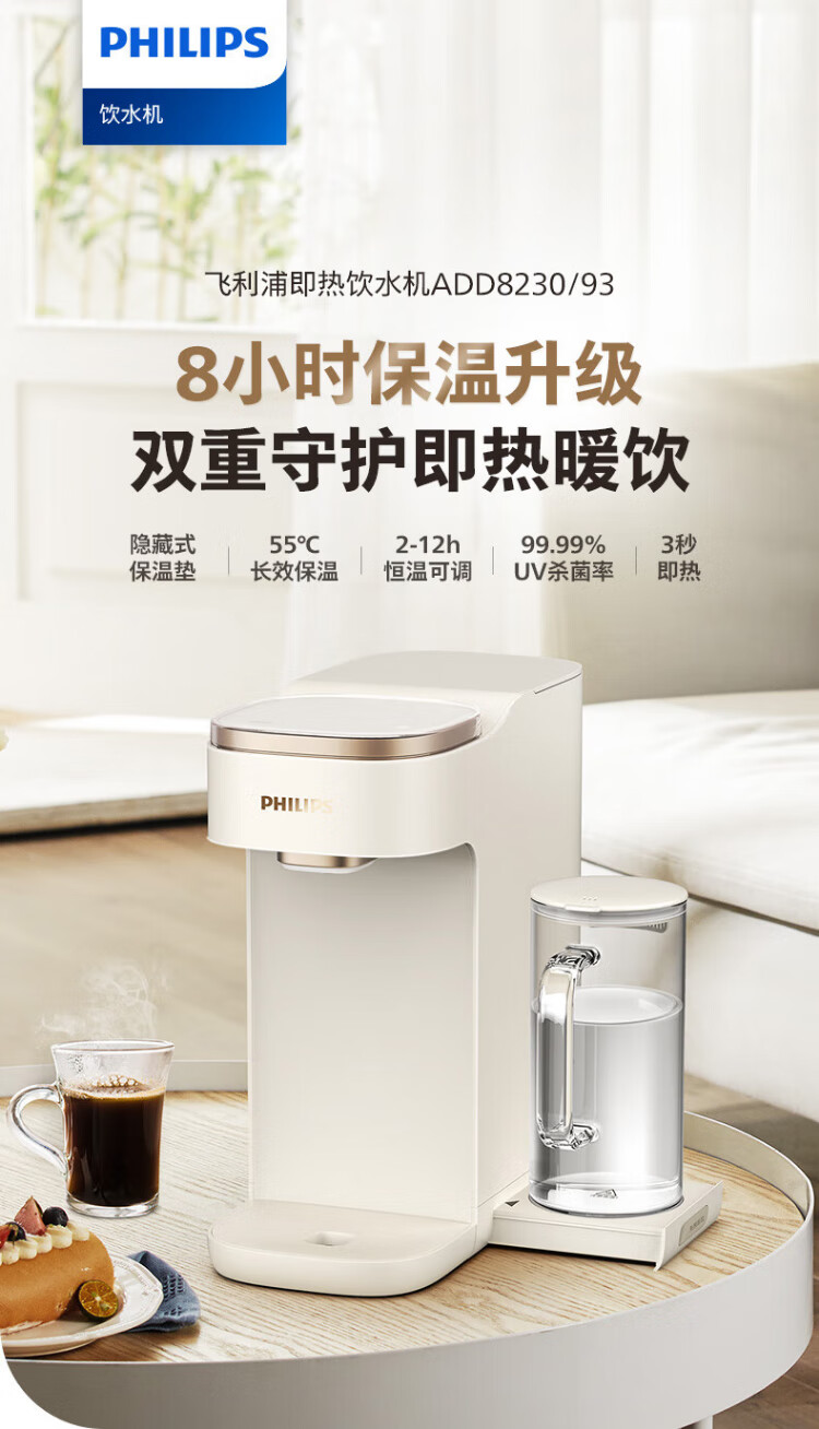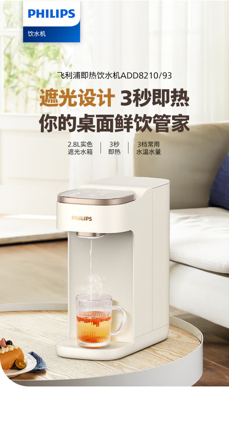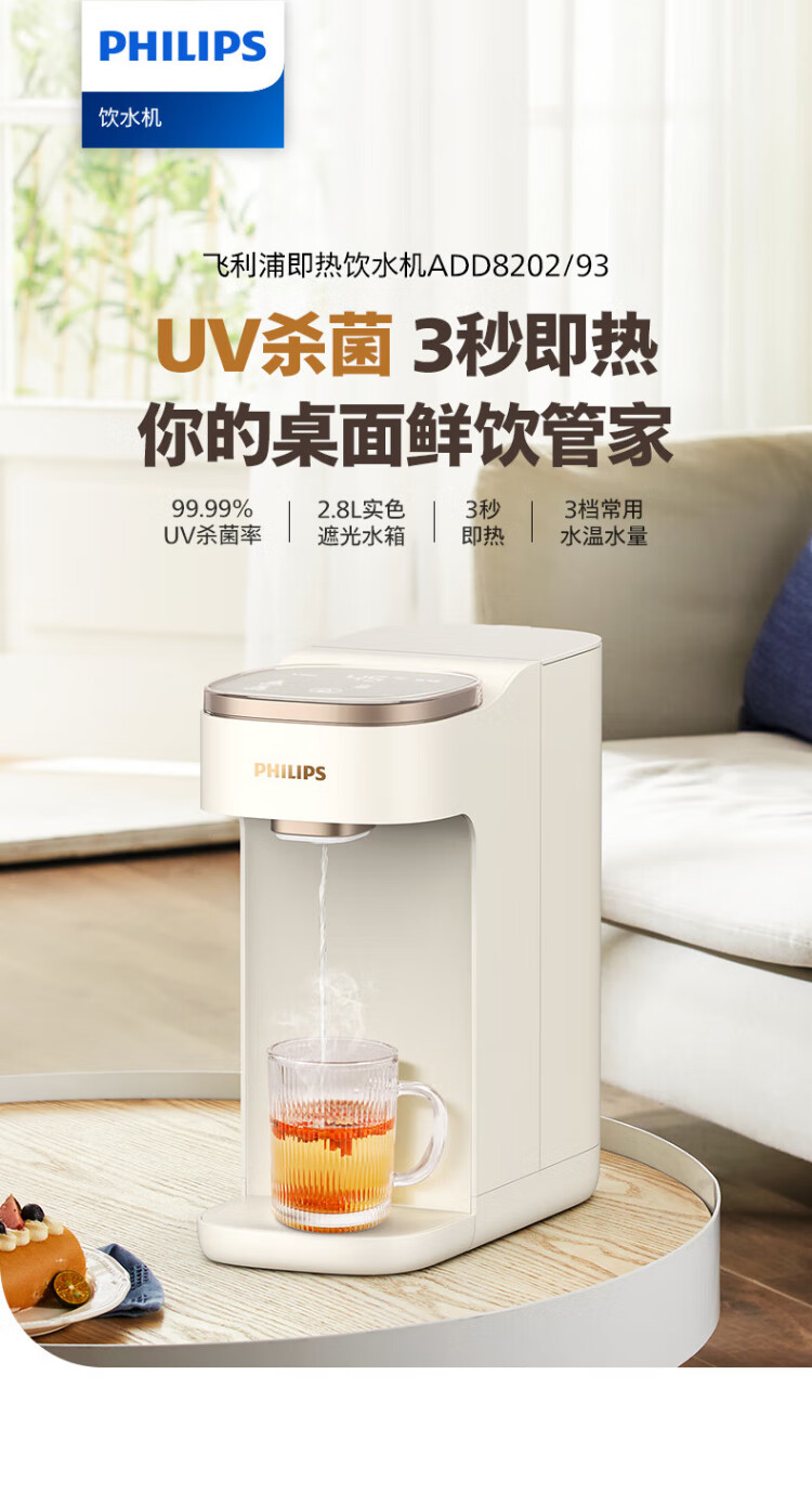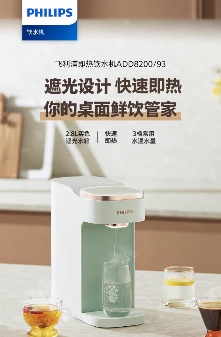 Philips (PHILIPS) water dispenser household instant hot water dispenser installation-free small desktop direct drinking dispenser desktop intelligent instant hot water dispenser office mini water bar dispenser ADD8202 instant hot water dispenser ADD8202 visual UV sterilization function