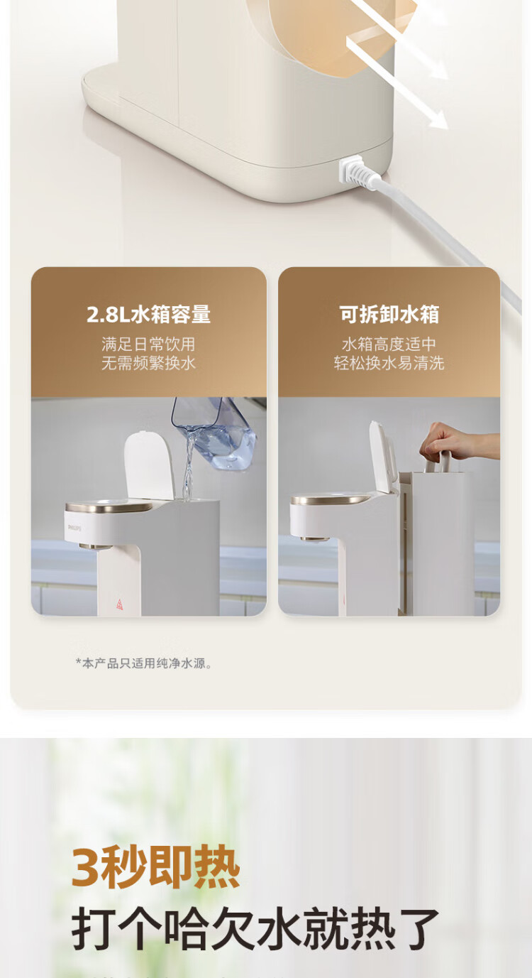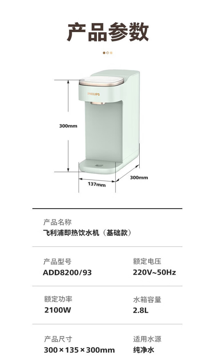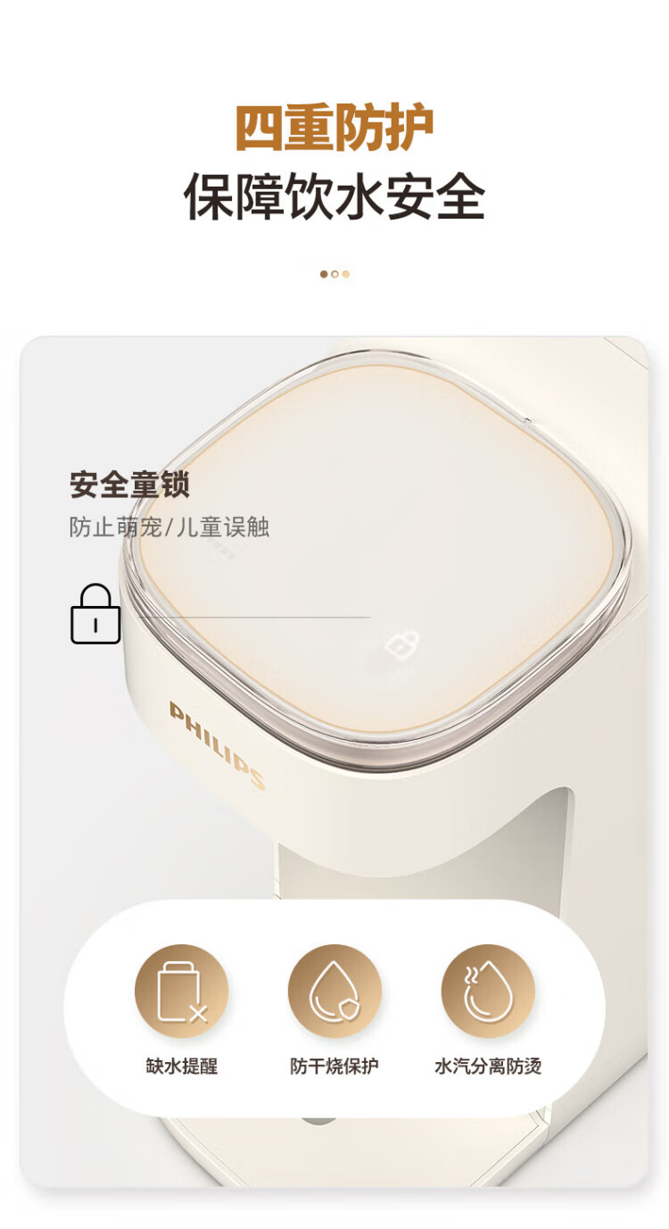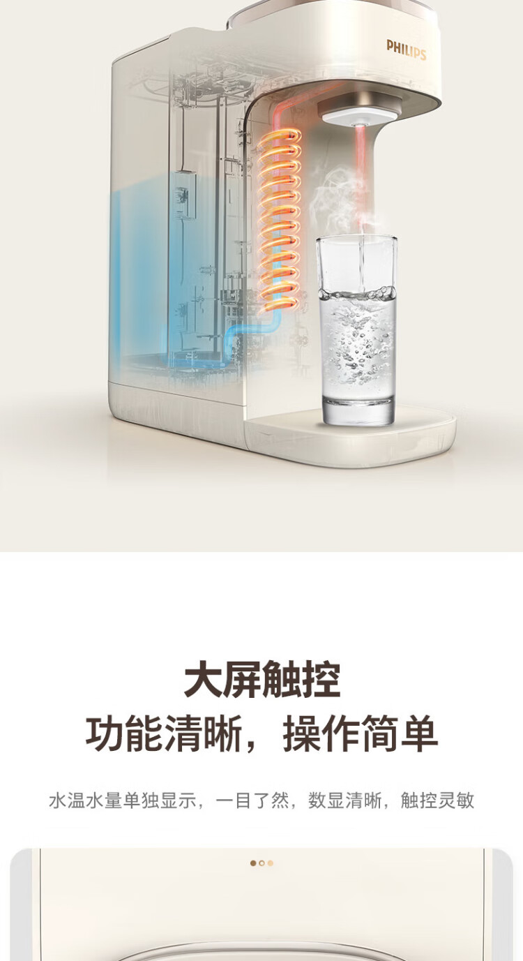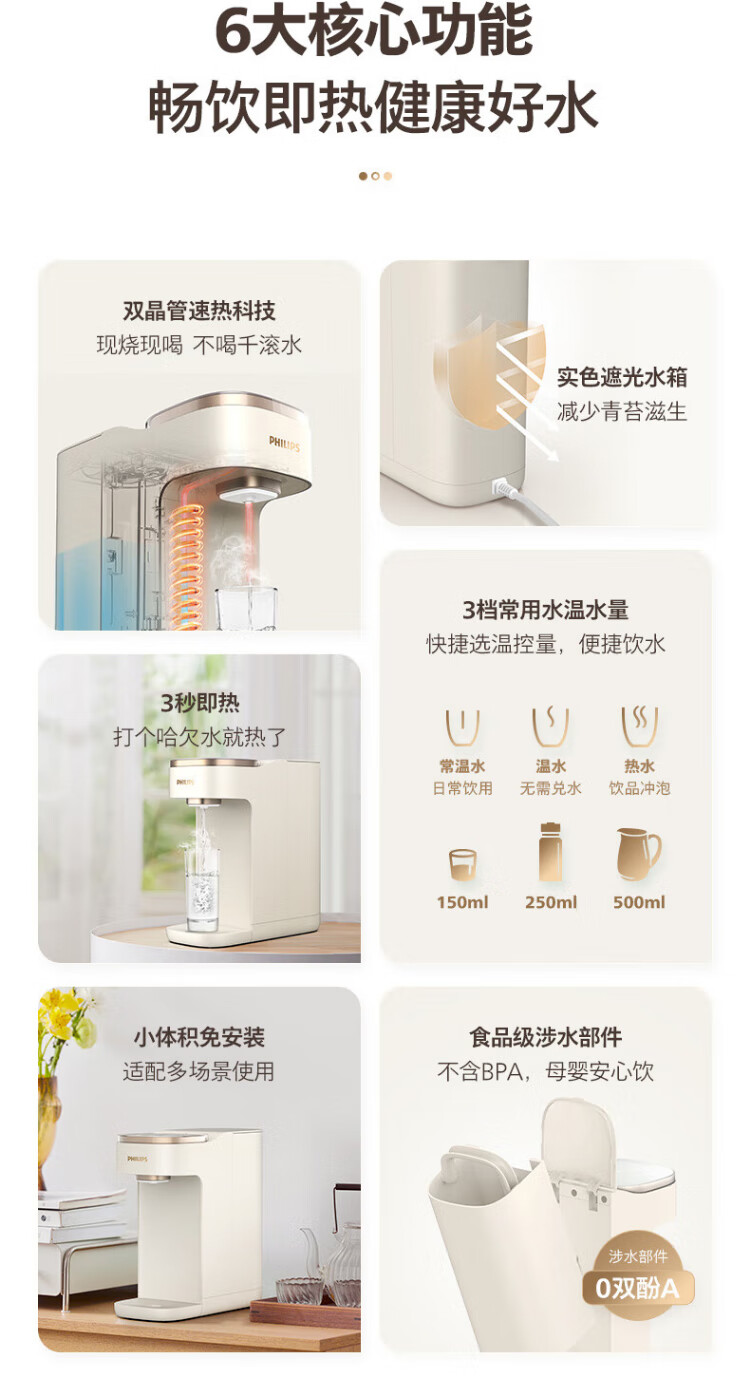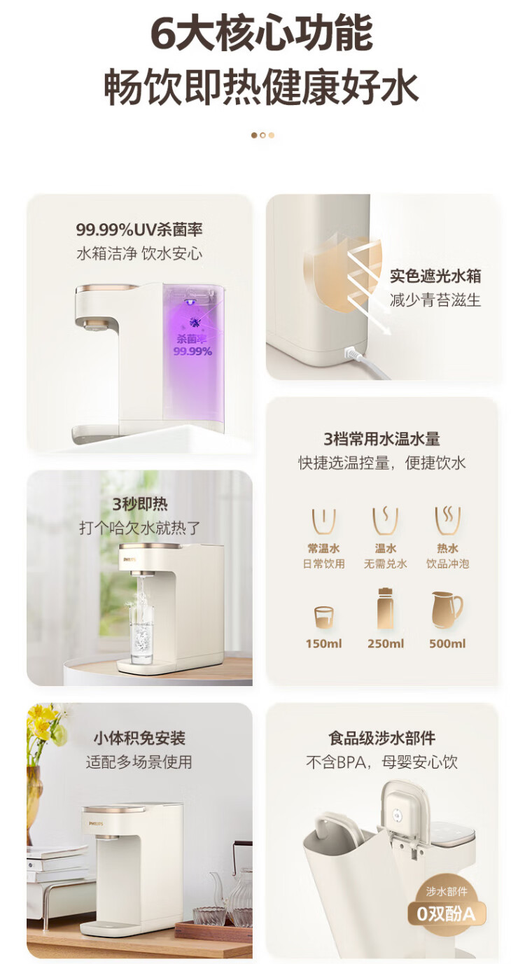 Philips (PHILIPS) water dispenser household instant hot water dispenser installation-free small desktop direct drinking dispenser desktop intelligent instant hot water dispenser office mini water bar dispenser ADD8202 instant hot water dispenser ADD8202 visual UV sterilization function