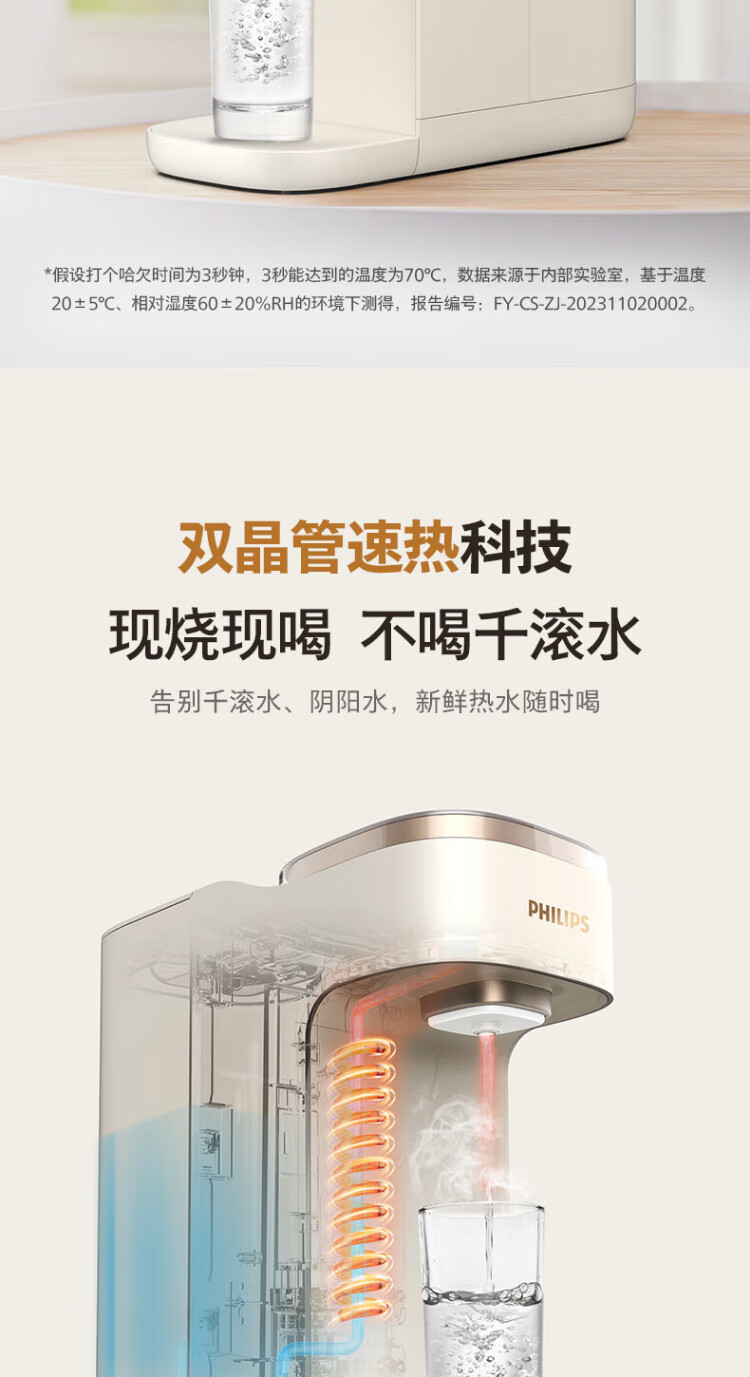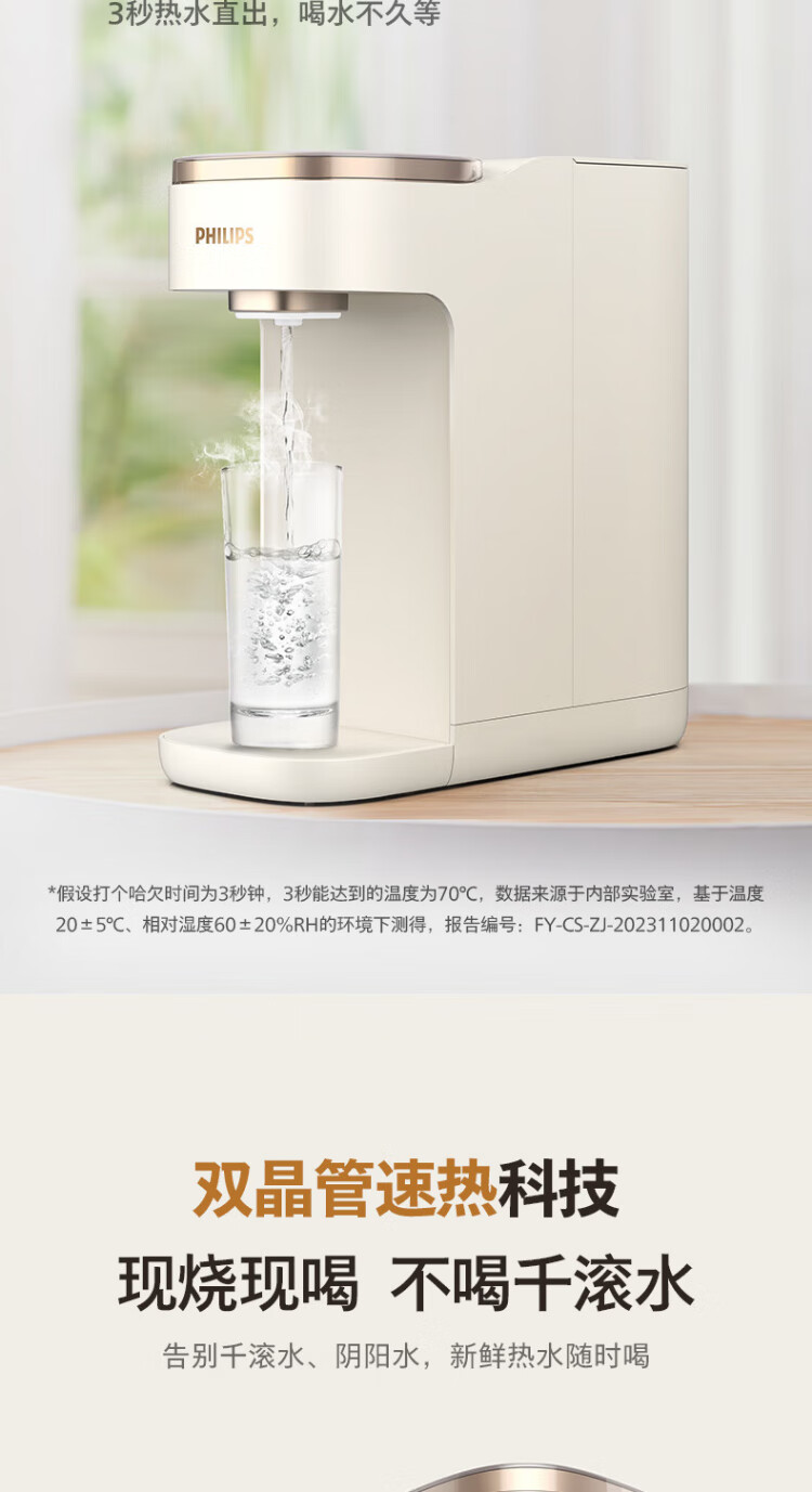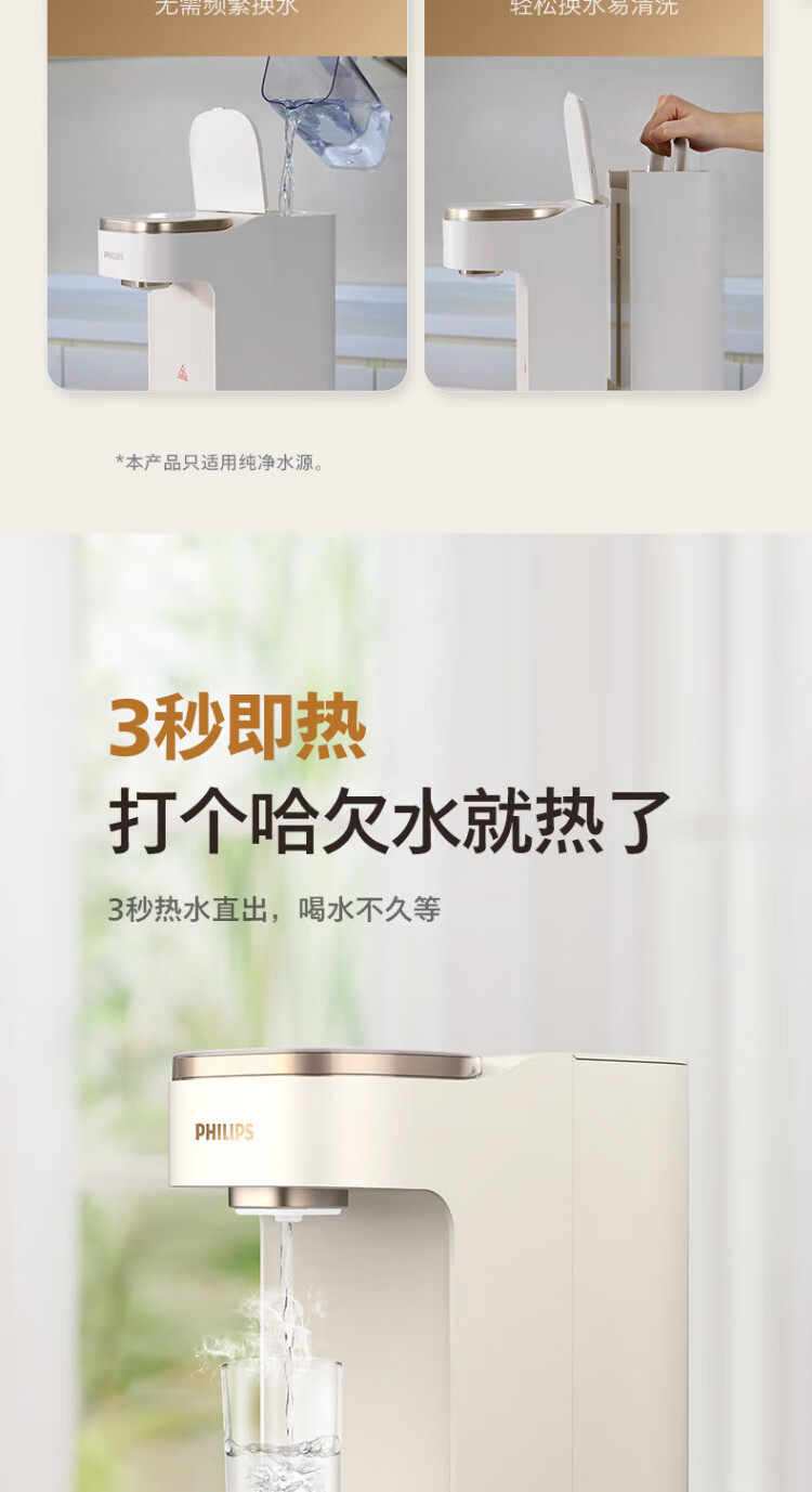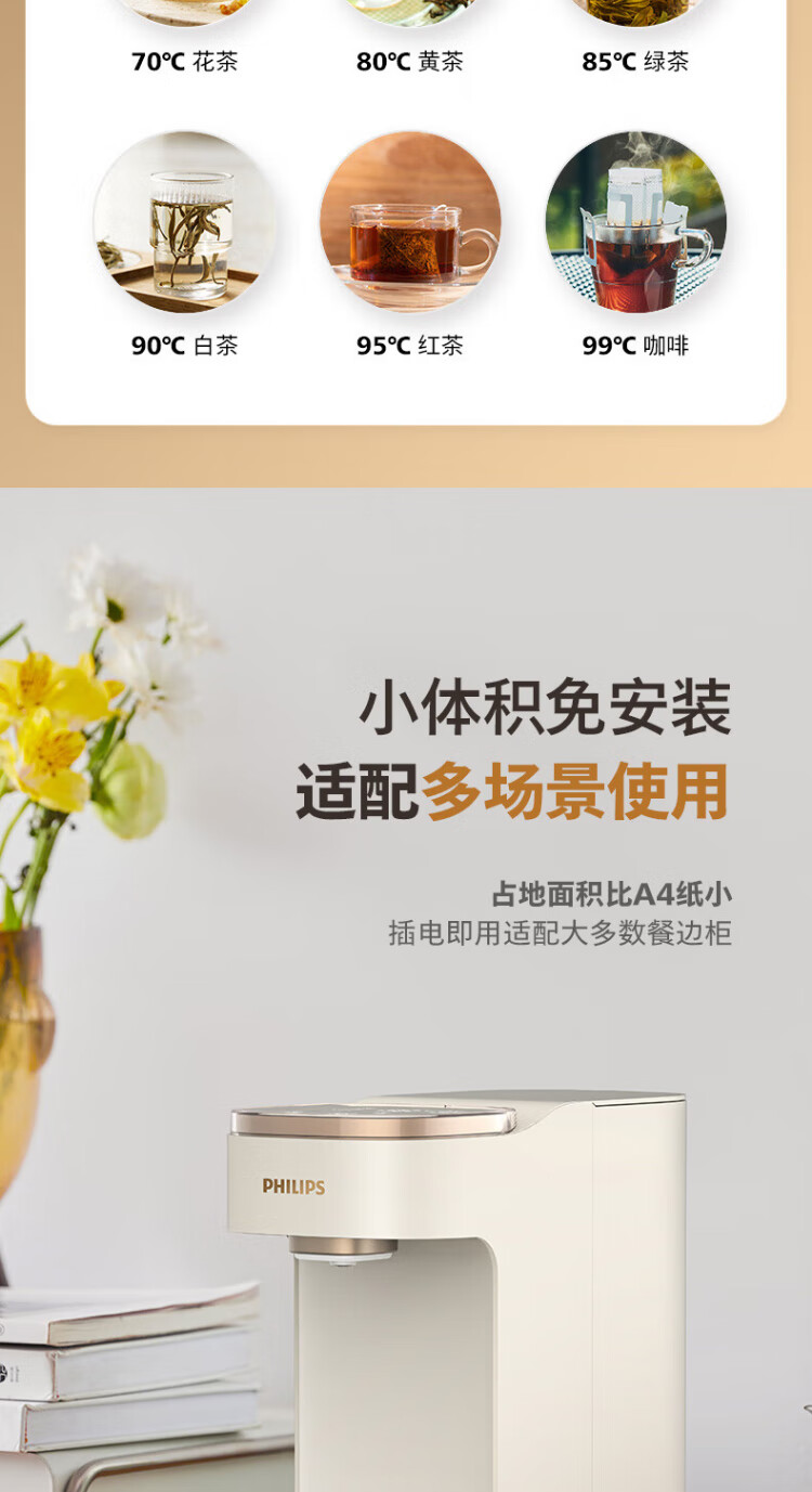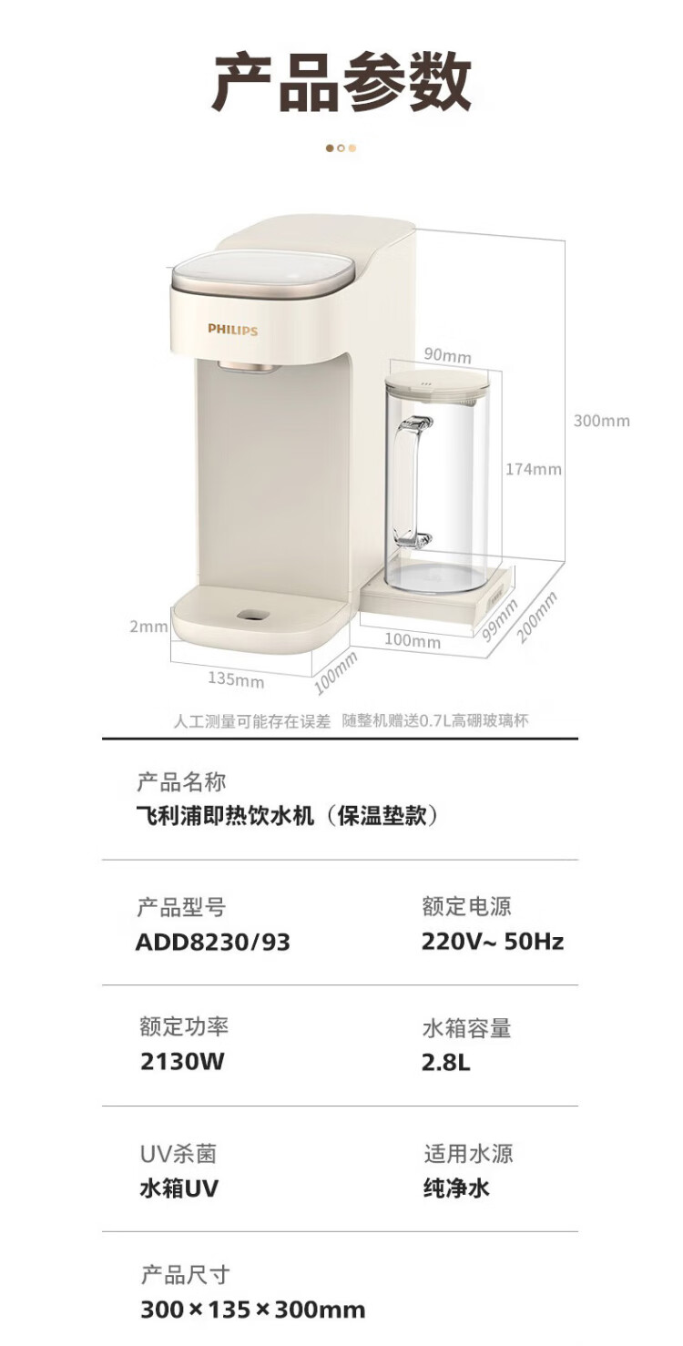 Philips (PHILIPS) water dispenser household instant hot water dispenser installation-free small desktop direct drinking dispenser desktop intelligent instant hot water dispenser office mini water bar dispenser ADD8202 instant hot water dispenser ADD8202 visual UV sterilization function