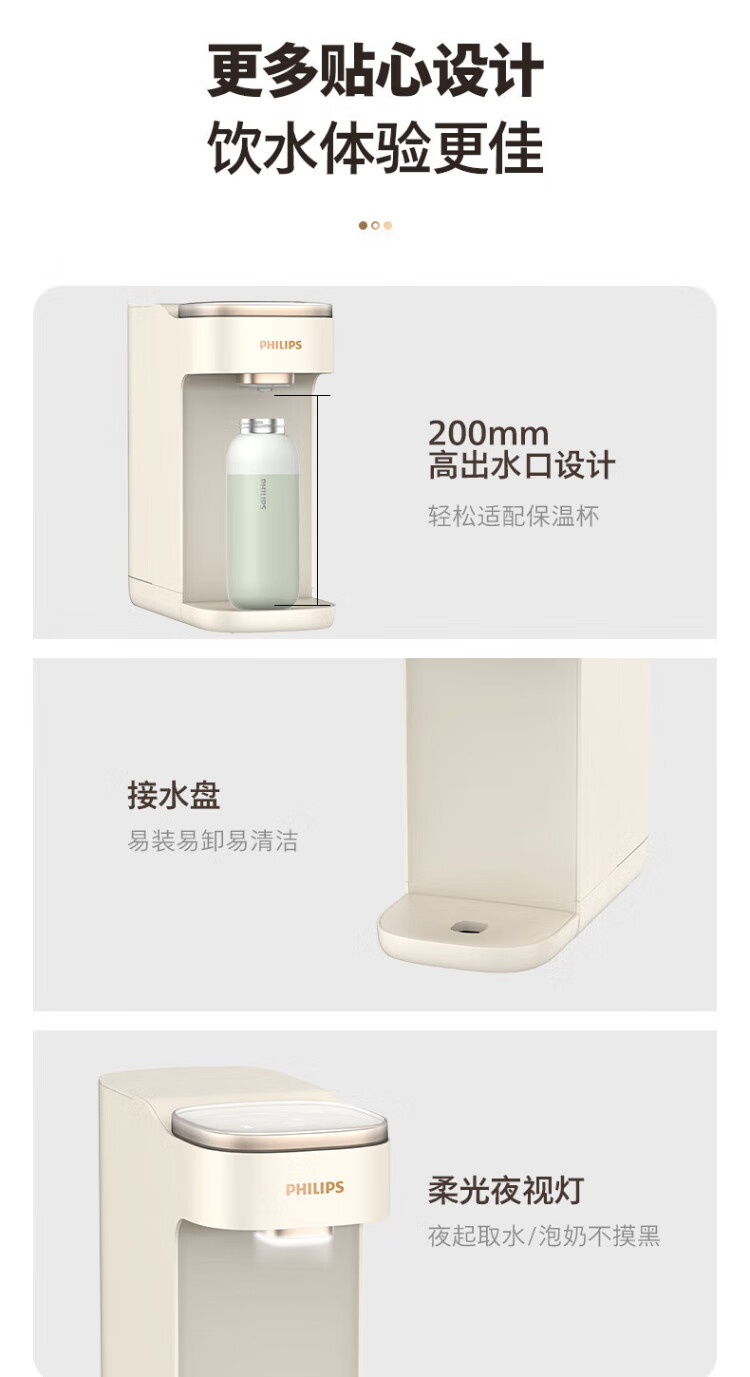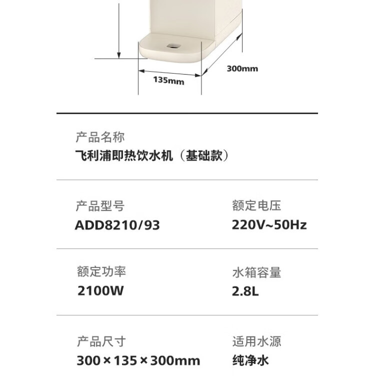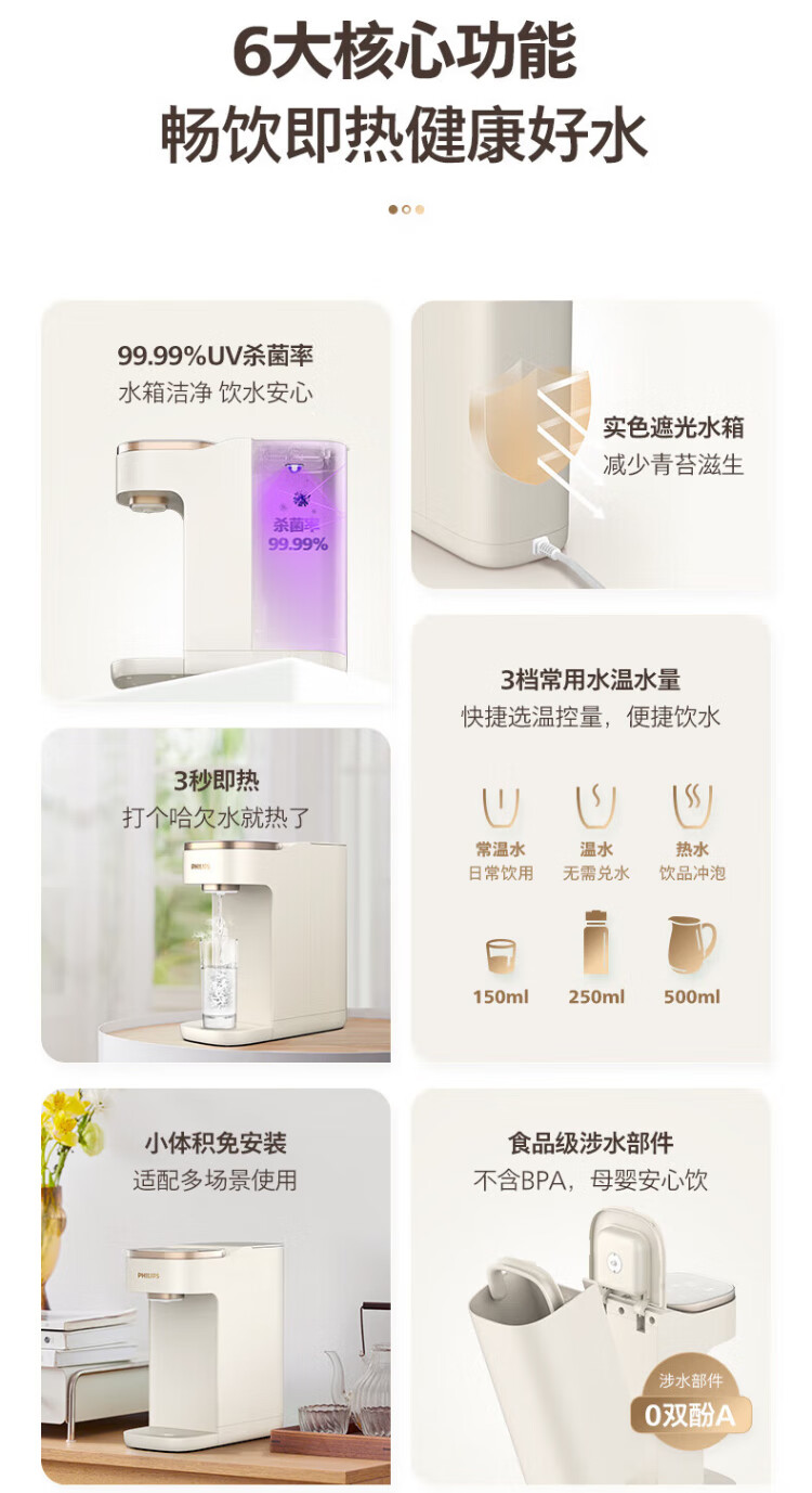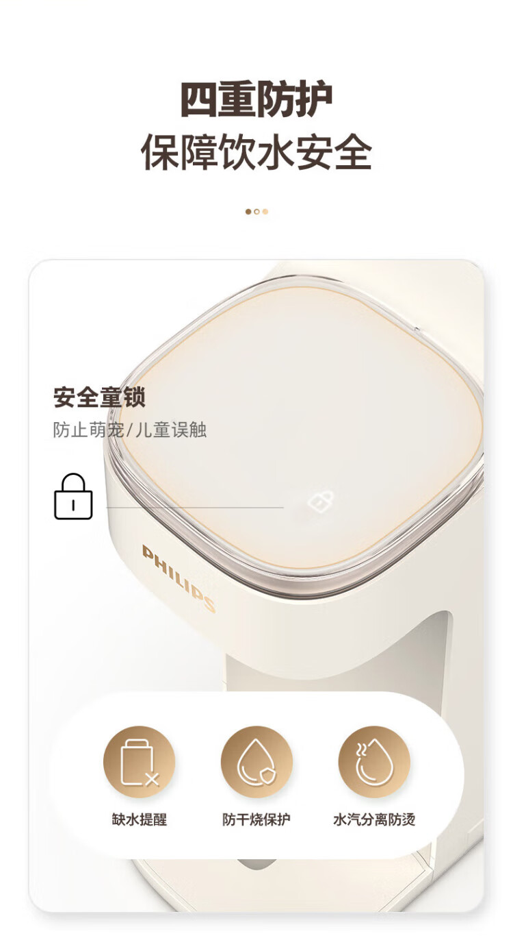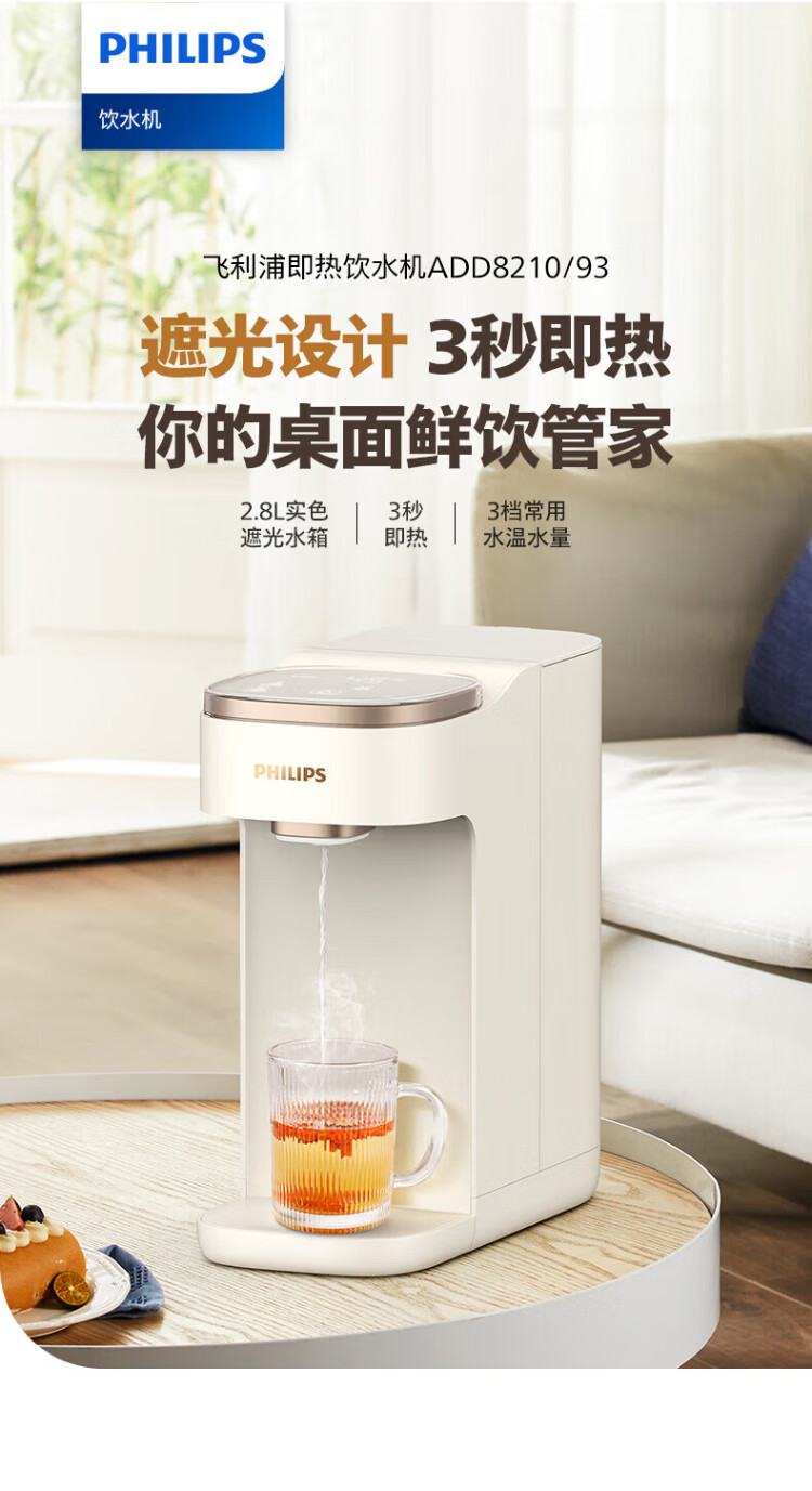 Philips (PHILIPS) instant hot water dispenser, small household desktop water dispenser, installation-free desktop smart one-button instant hot water dispenser, office mini water bar machine, mother and baby hot water dispenser, instant hot type ADD8230, exclusive heat preservation function