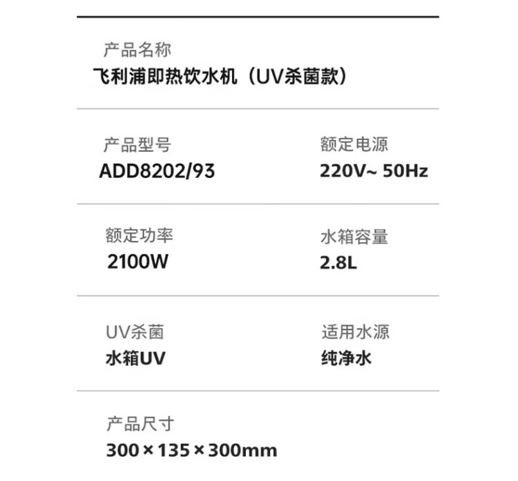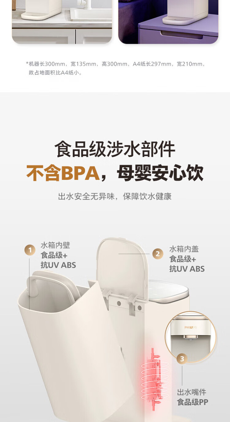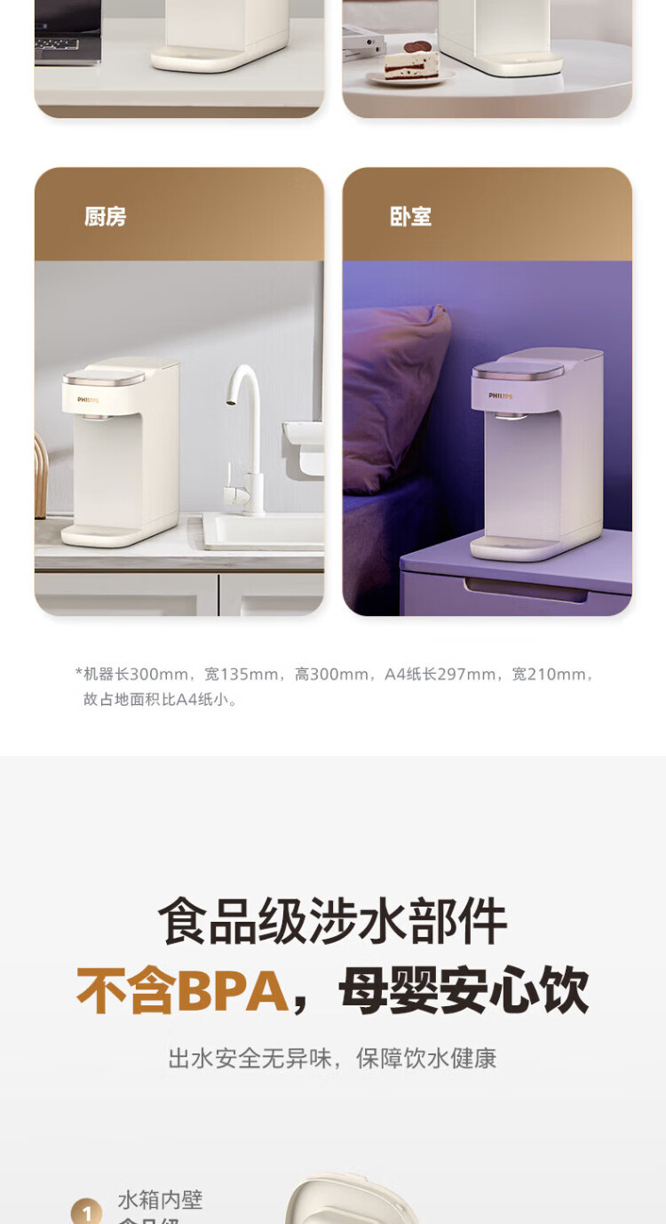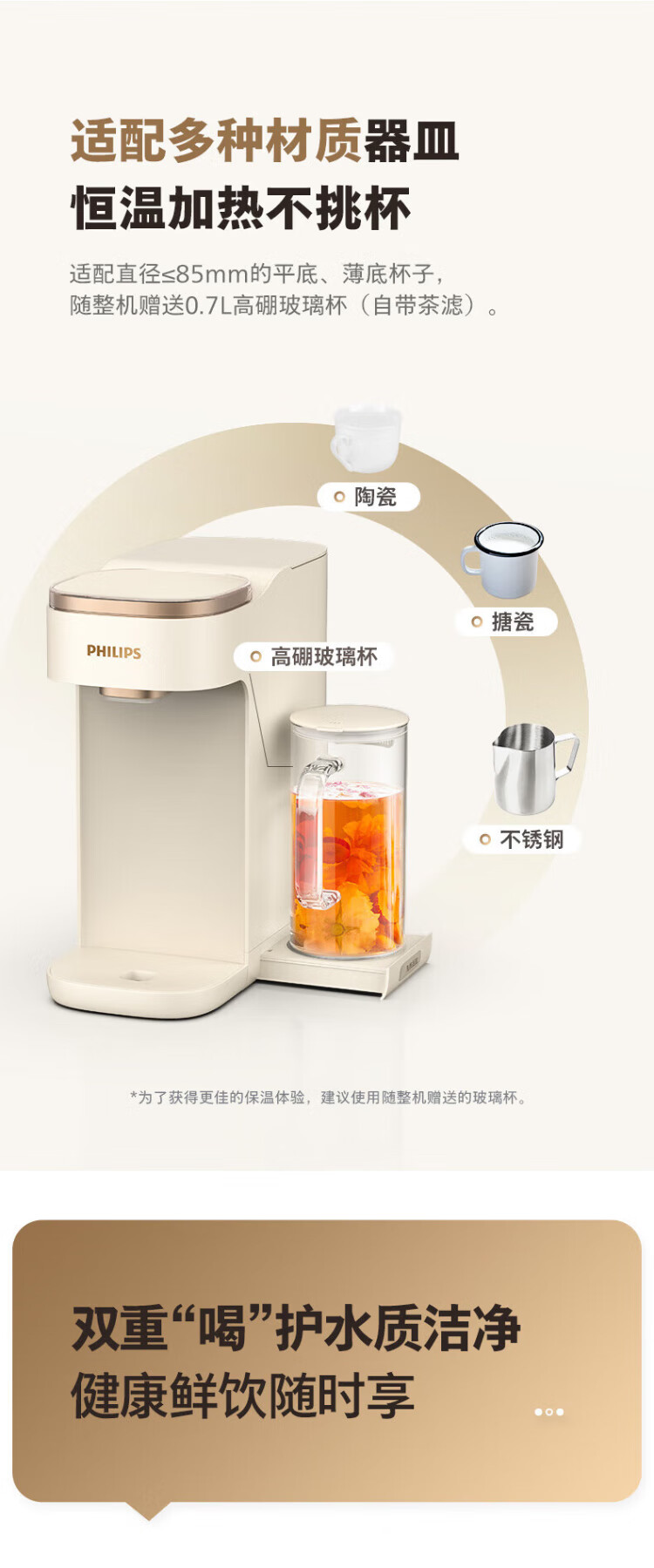 Philips (PHILIPS) instant hot water dispenser, small household desktop water dispenser, installation-free desktop smart one-button instant hot water dispenser, office mini water bar machine, mother and baby hot water dispenser, instant hot type ADD8230, exclusive heat preservation function