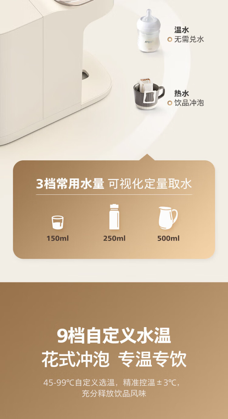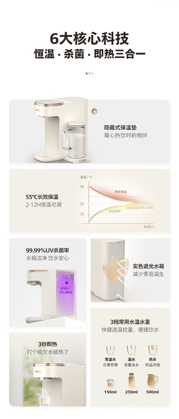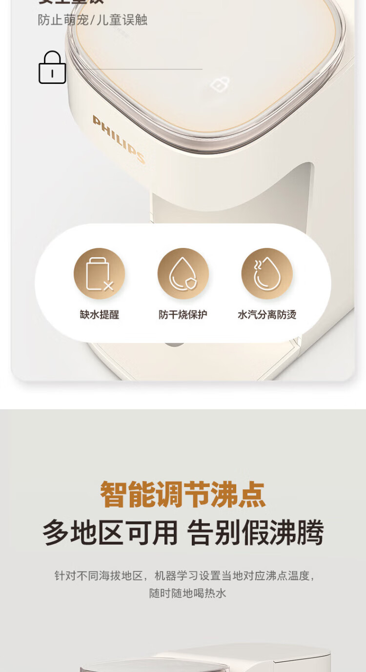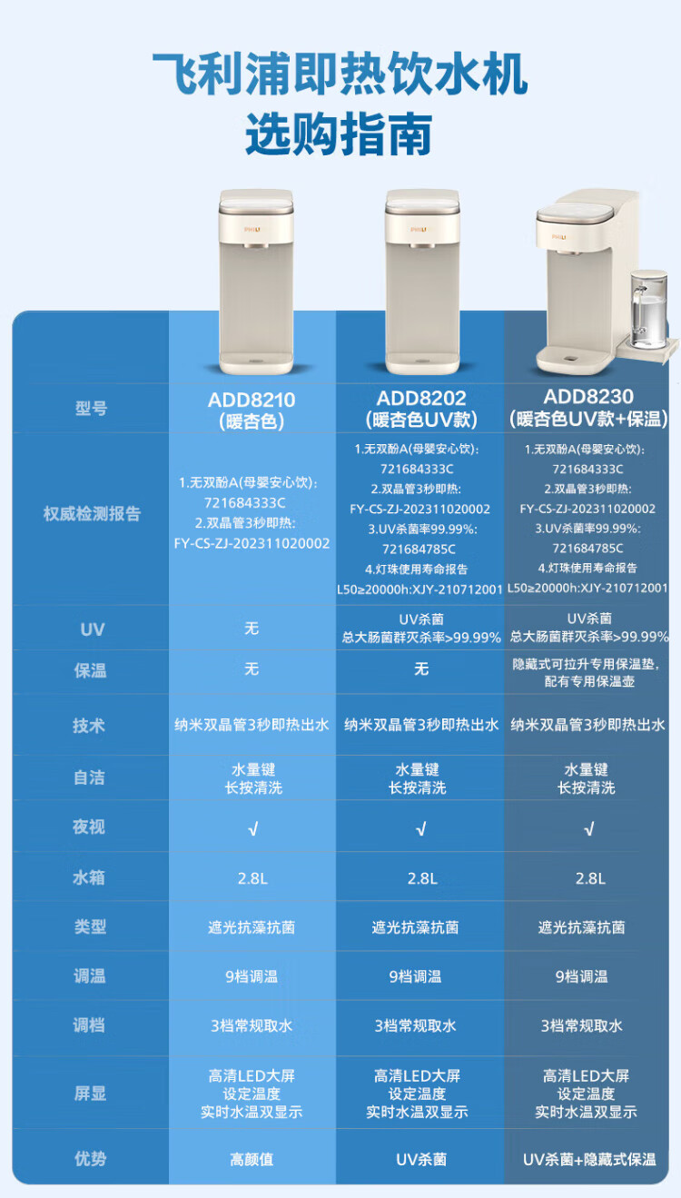 Philips (PHILIPS) instant hot water dispenser, small household desktop water dispenser, installation-free desktop smart one-button instant hot water dispenser, office mini water bar machine, mother and baby hot water dispenser, instant hot type ADD8230, exclusive heat preservation function