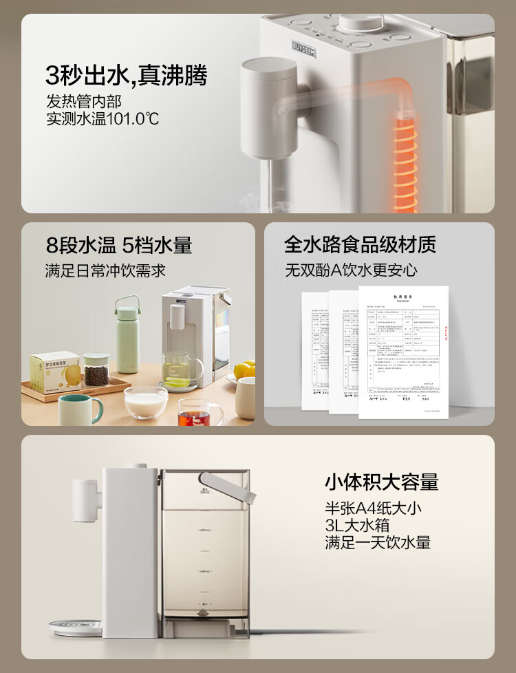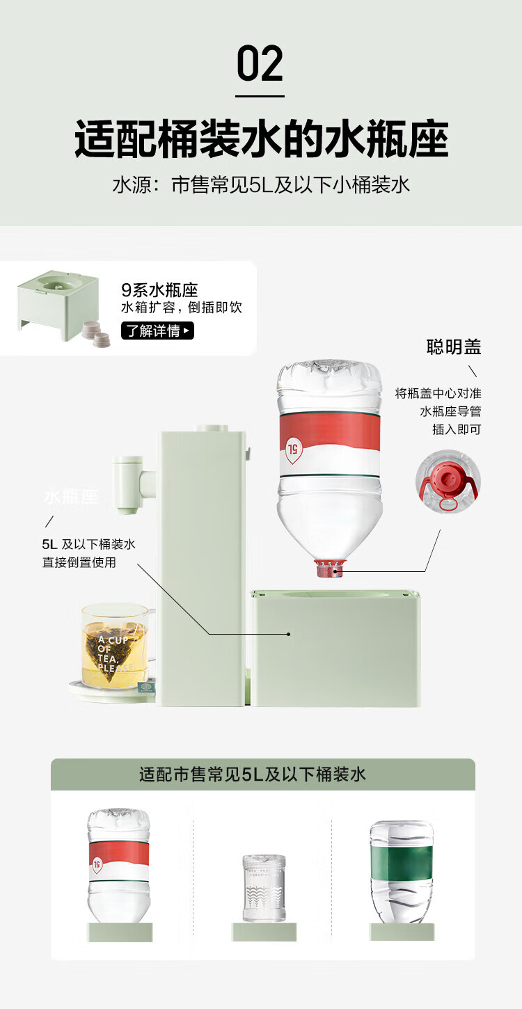 Buydeem instant hot water dispenser Home instant hot water dispenser Desktop tea dispenser Office small mini smart water dispenser milk brewing device DS95&9 series 3L water tank New product DS95 water dispenser + water bottle holder set Instant hot type