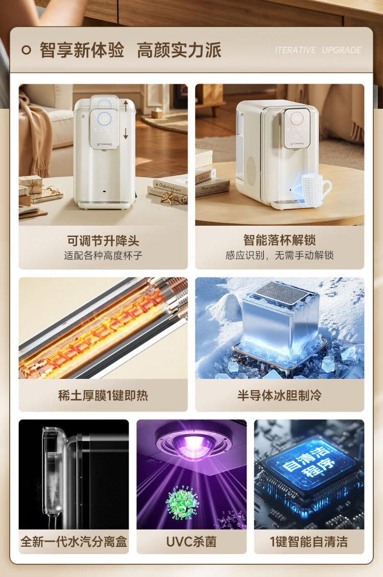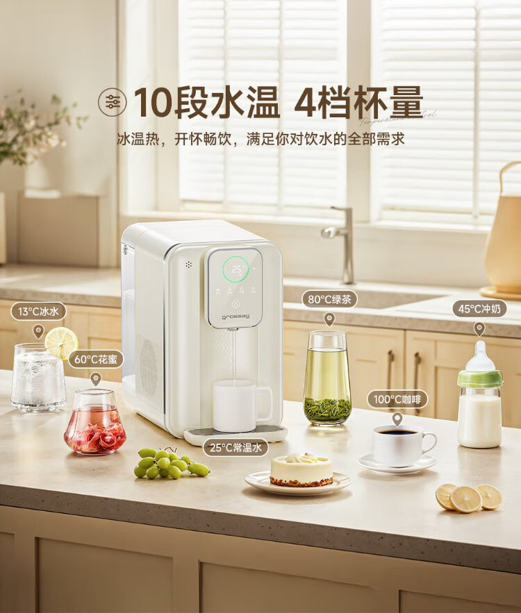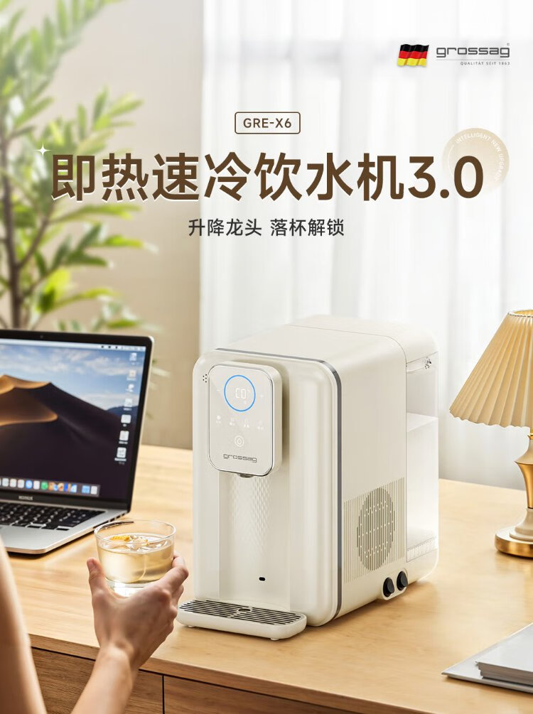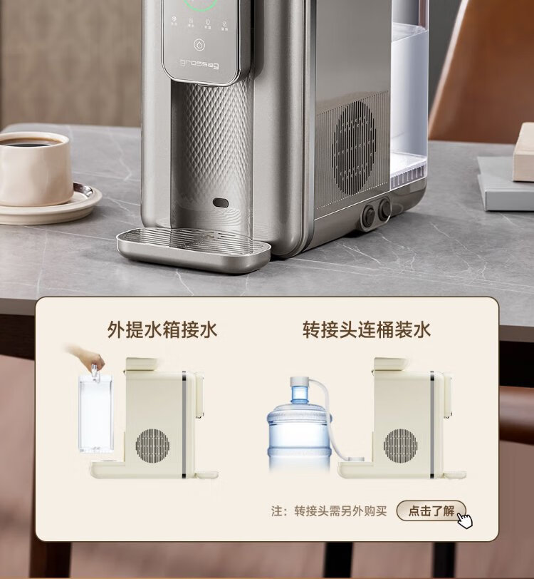 Grossag instant hot water dispenser Home desktop instant hot and instant cold water dispenser Desktop small office water dispenser water boiler all-in-one living room smart constant temperature electric kettle milk dispenser Voice version liftable faucet water dispenser - Obsidian Gray X7 instant hot and refrigerated type