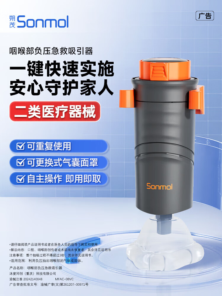 朔茂(sonmol)海姆立克防噎仪 急救器咽喉部负压急救吸引器自动便携08VS