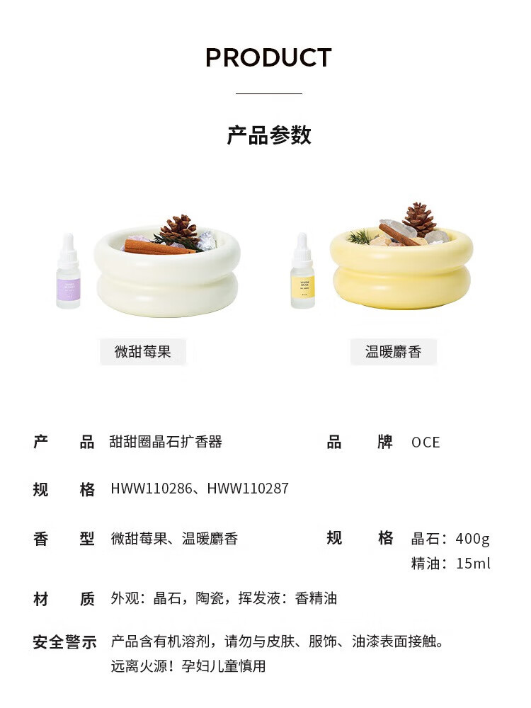 OCE Donut Crystal Diffuser-Warm Musk, Slightly Sweet Berry