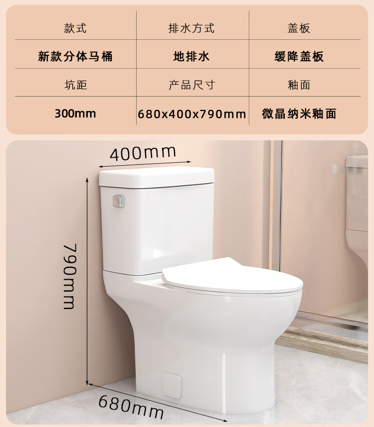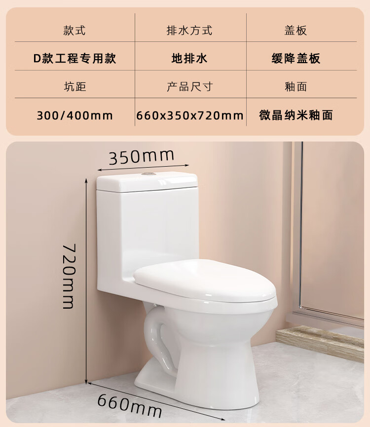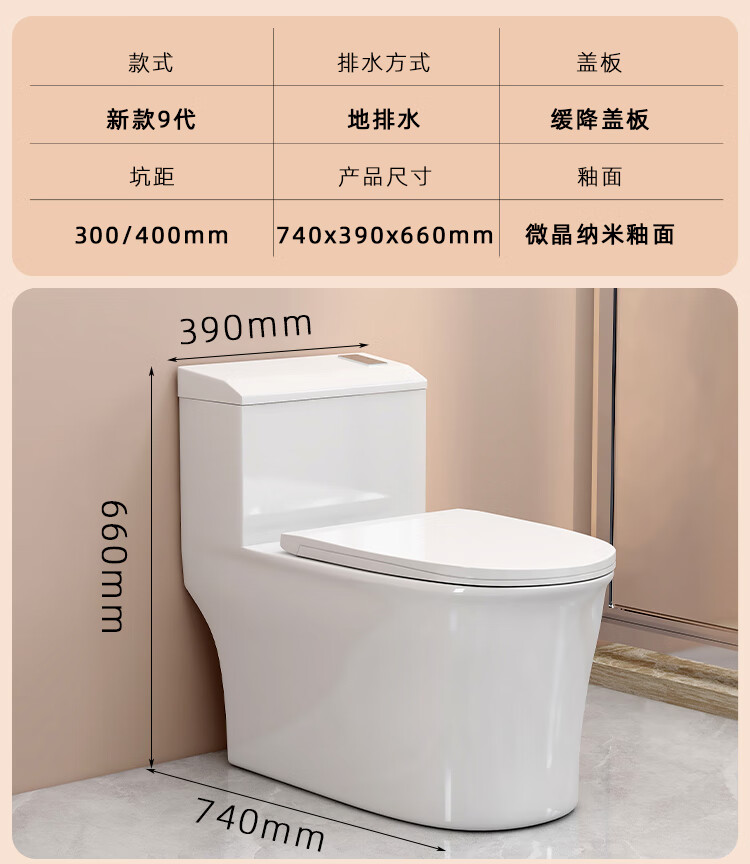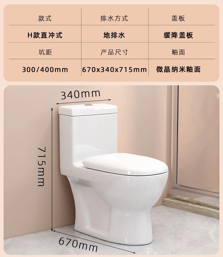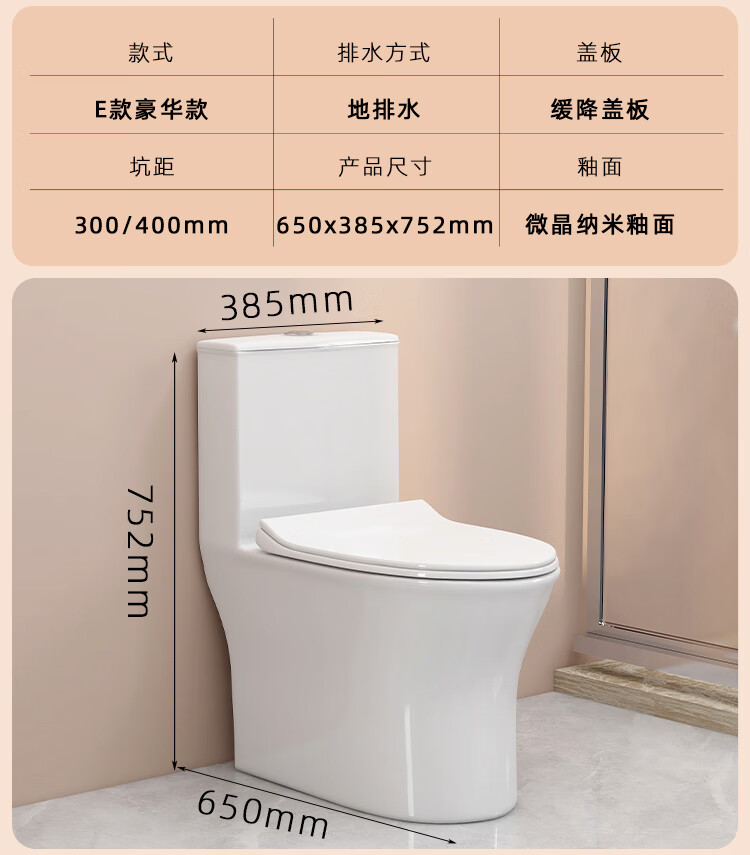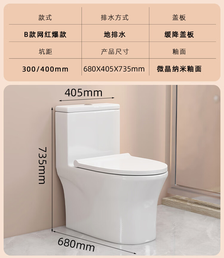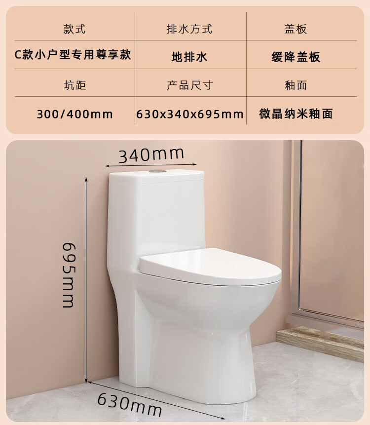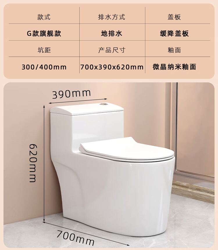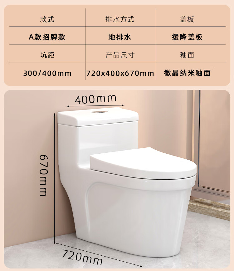 家用抽水马桶大口径卫浴座便虹吸式防臭坐厕小户型普通陶瓷坐便器 A款升级釉面 静音脲醛盖板 A款 305mm