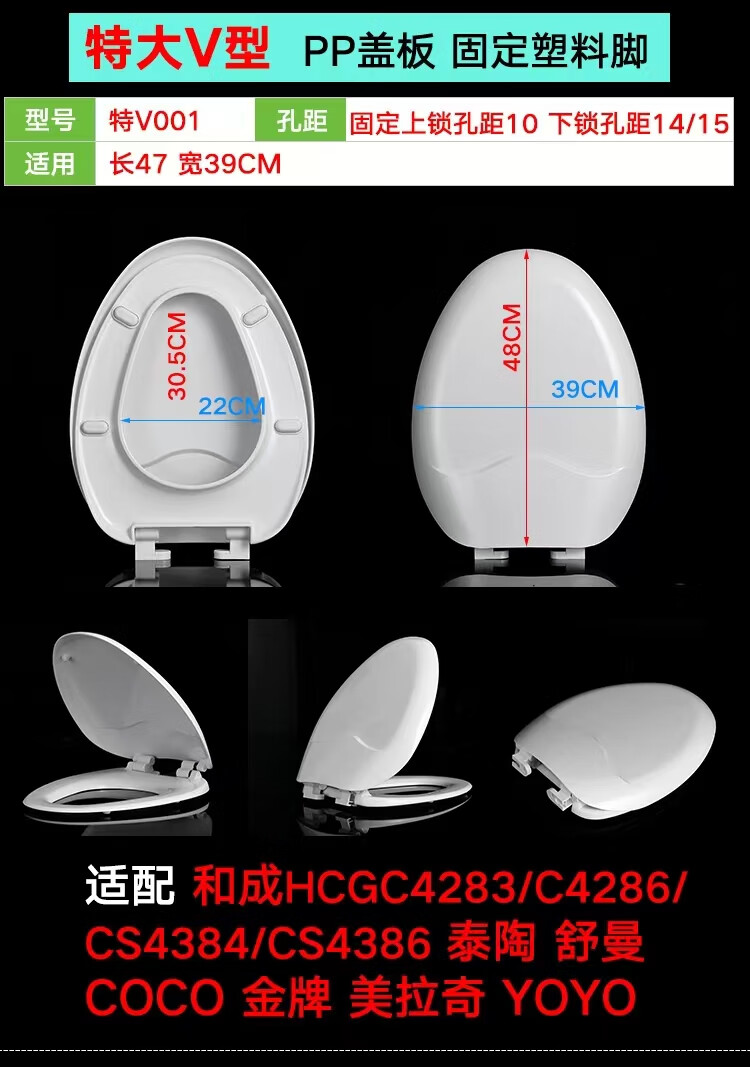 Hecheng HCG toilet seat universal C4283/C4286/CS4384/CS4386 slow-down 38/39cm wide cover plate PP extra large V type (original without label)
