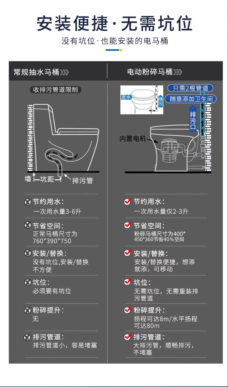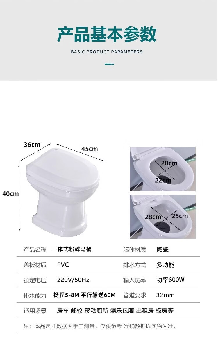 电动粉碎马桶一体式无水箱坐便器房车出租房地下室卫生间增压排污 一体式按键粉碎马桶(静音) 其他/other