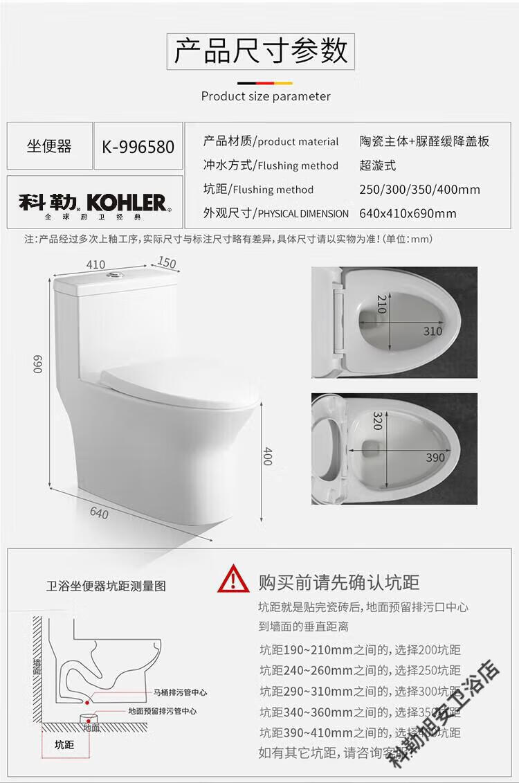 科勒(KOHLER)陶瓷马桶家用防臭卫生间坐厕普通中户型超漩虹吸式节水坐