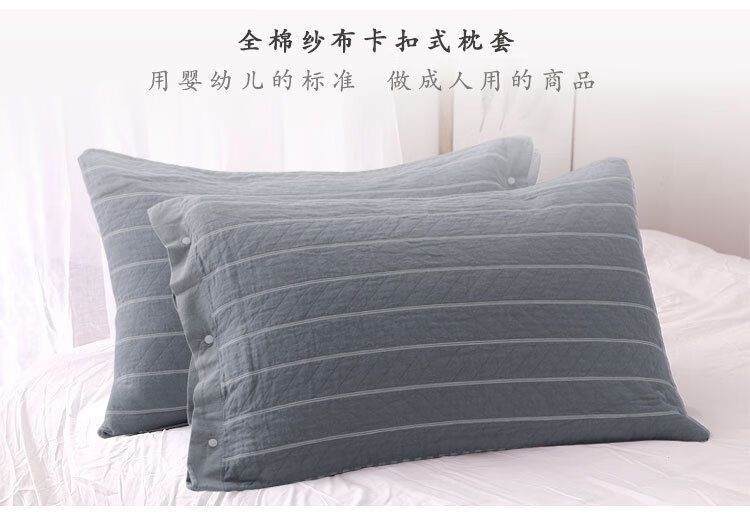 Porcelain buckle pillow cover, thickened pillowcase, three-layer gauze all-inclusive fixed buckle, non-slip, non-removable, pink, 50x78 cm, two packs