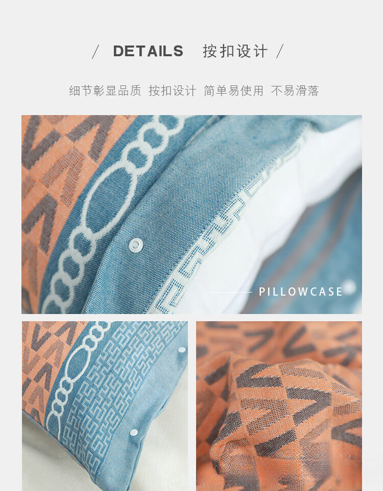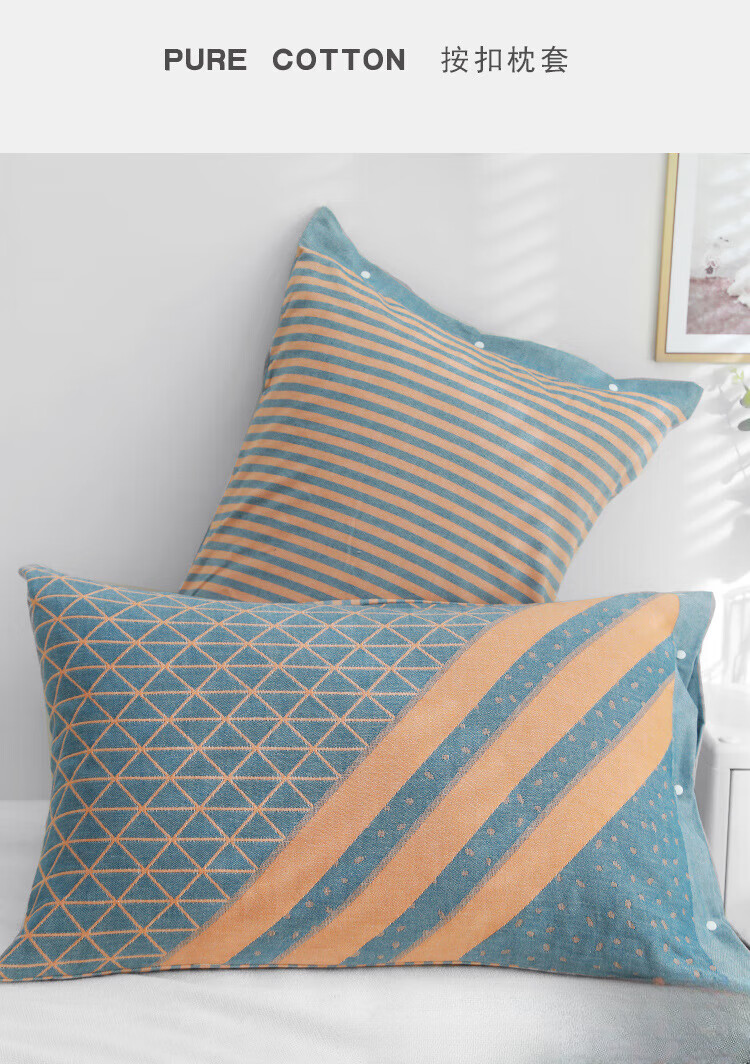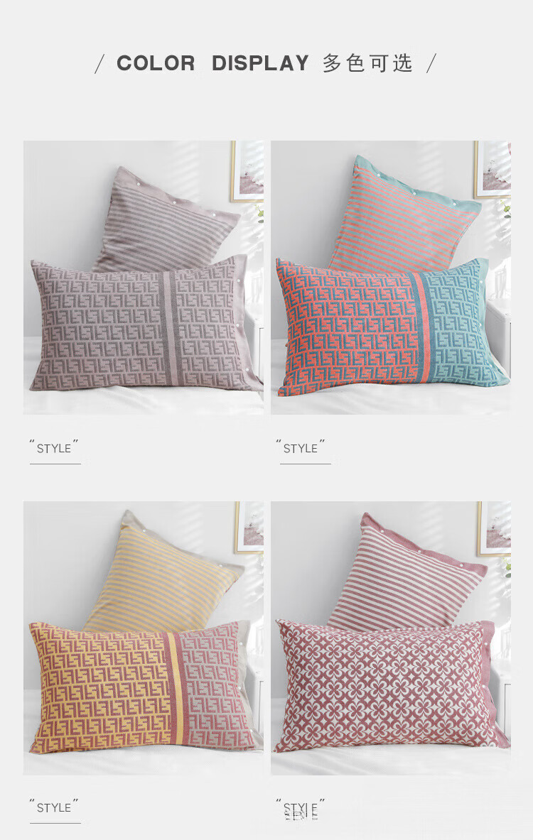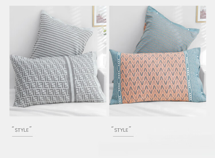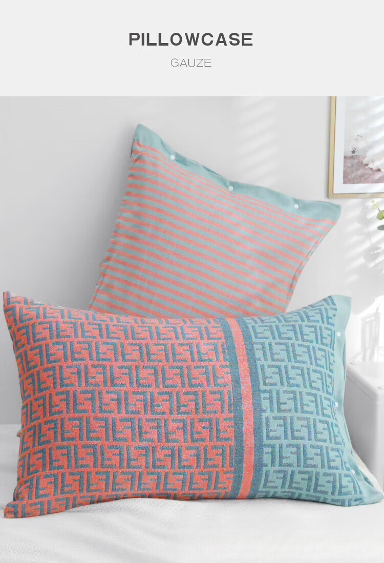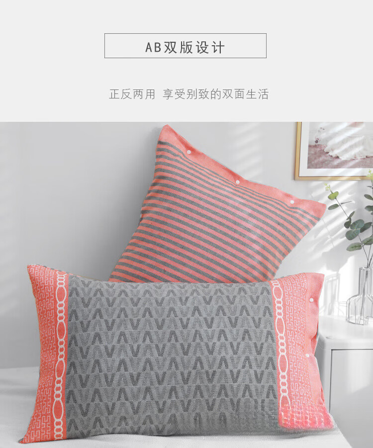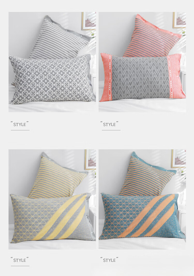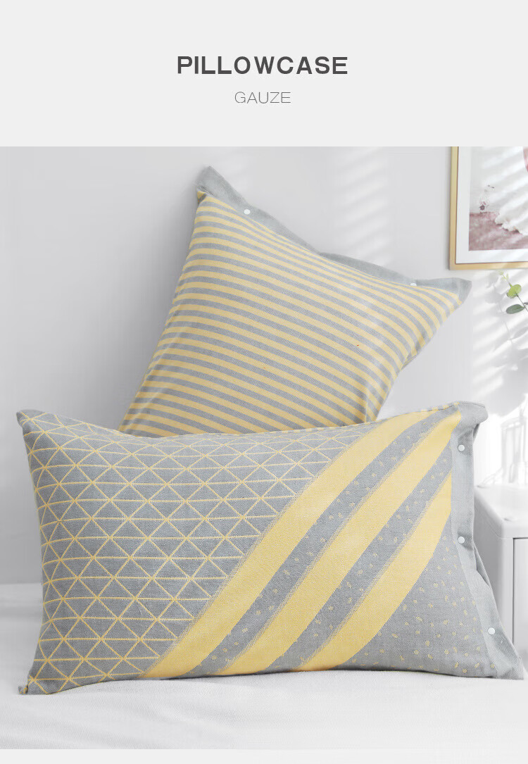 法兰格慕纱布枕套单人装一对装加厚加大轻奢枕头套吸汗透气成人款四季通用 四叶草灰色 两条装(50X75)