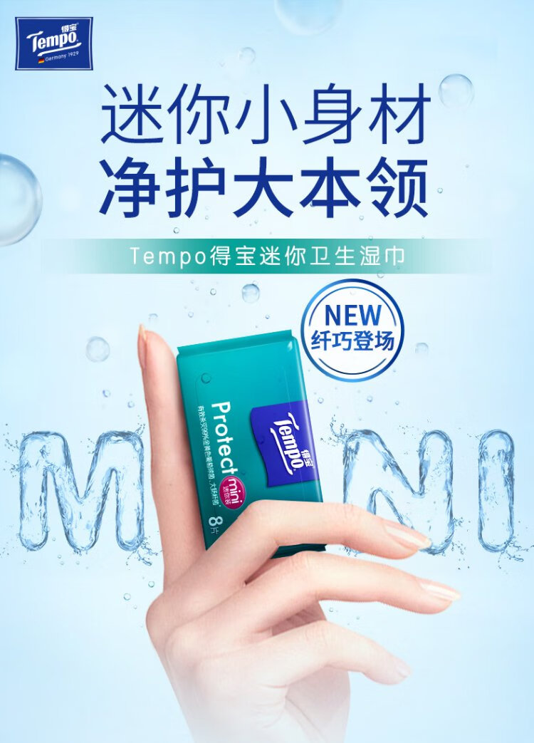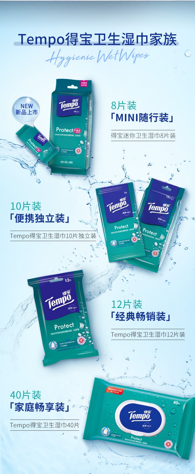 TEMPO sterilizing wipes 8 pieces*6 pack mini wipes 99.9% sterilization rate mild and non-irritating wet wipes packet