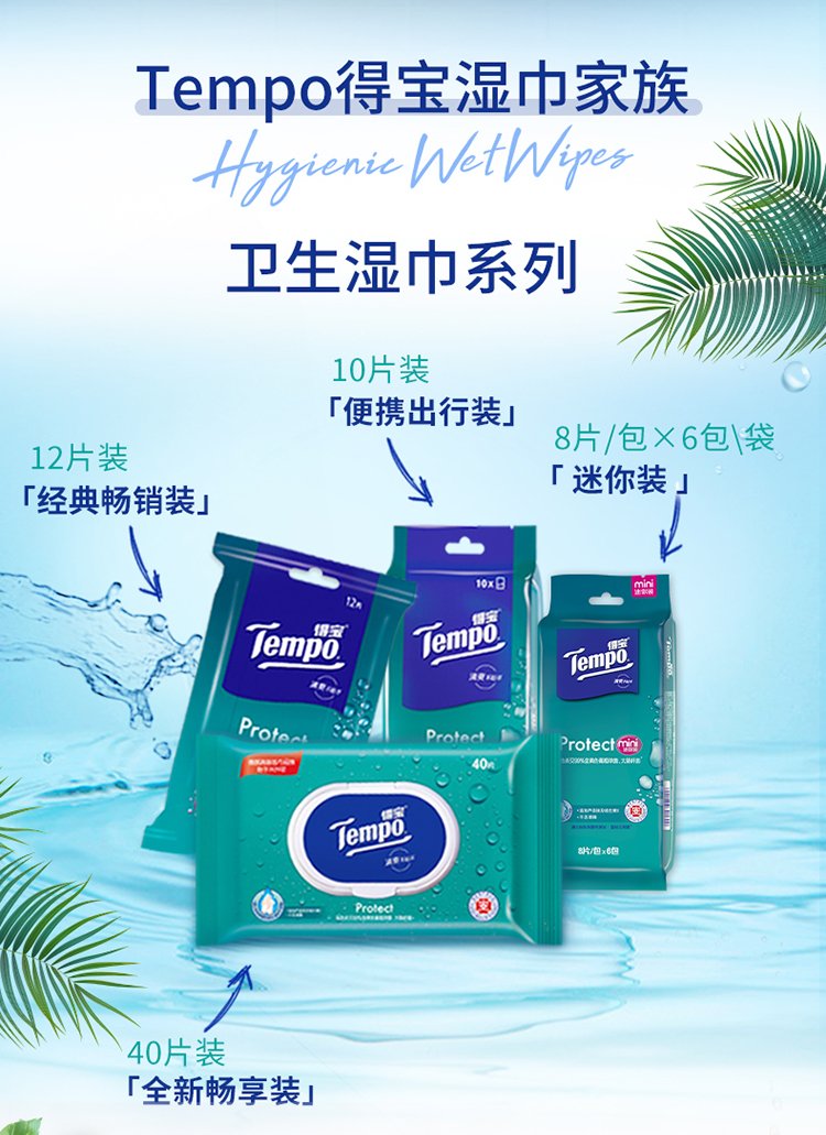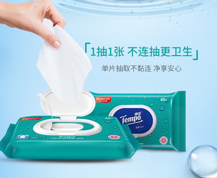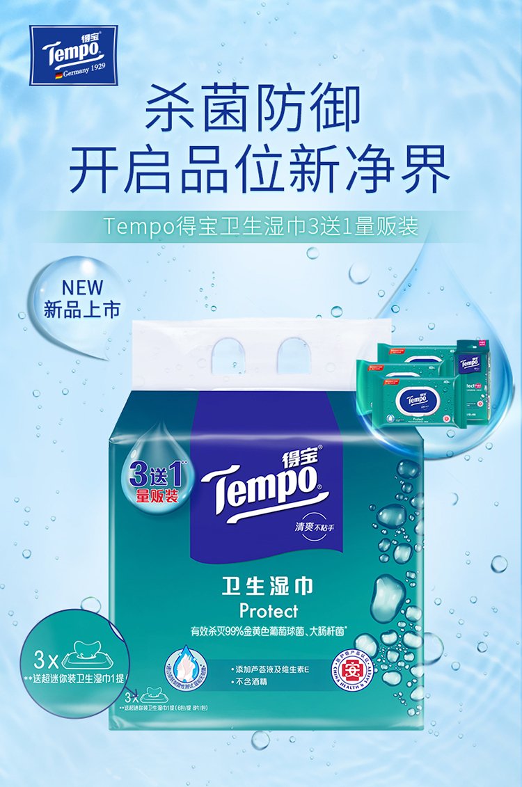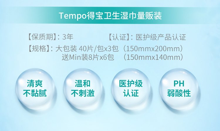 TEMPO sterilizing wipes 40 pieces*3 packs+8 pieces*6 packs, sterilization rate 99.9%, mild and non-irritating wet wipes