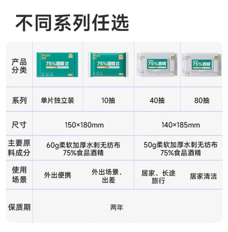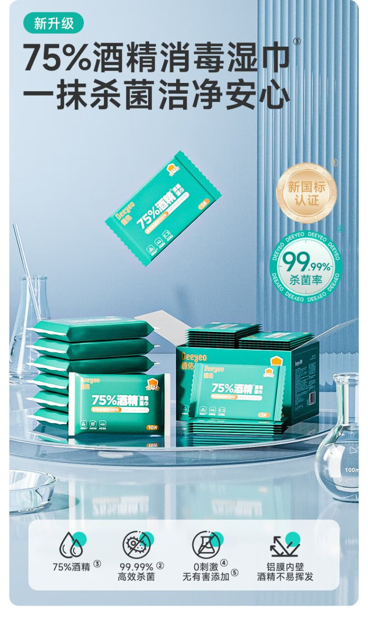 Deyou 75% alcohol disinfectant wipes 10 x 20 packs of sterilizing wet wipes, hygienic and portable small package, 99.9% sterilization
