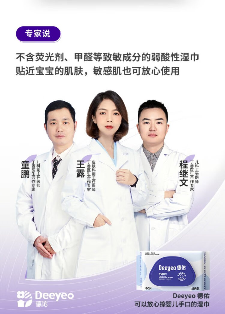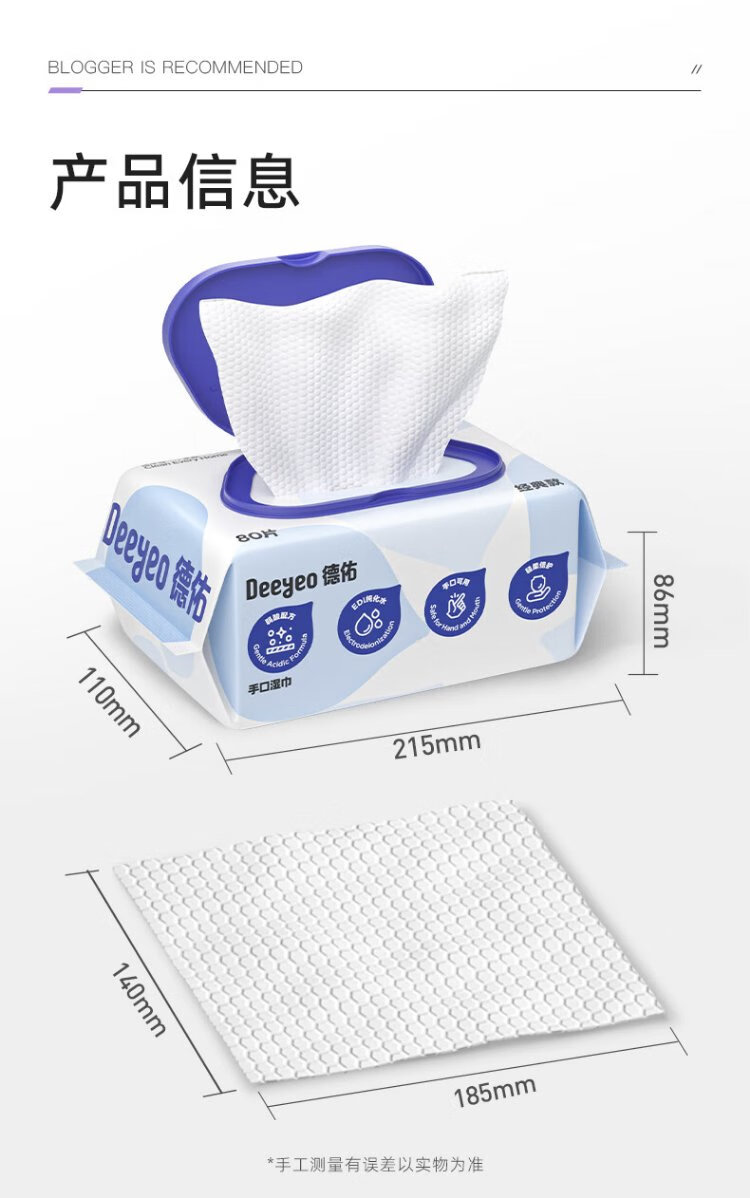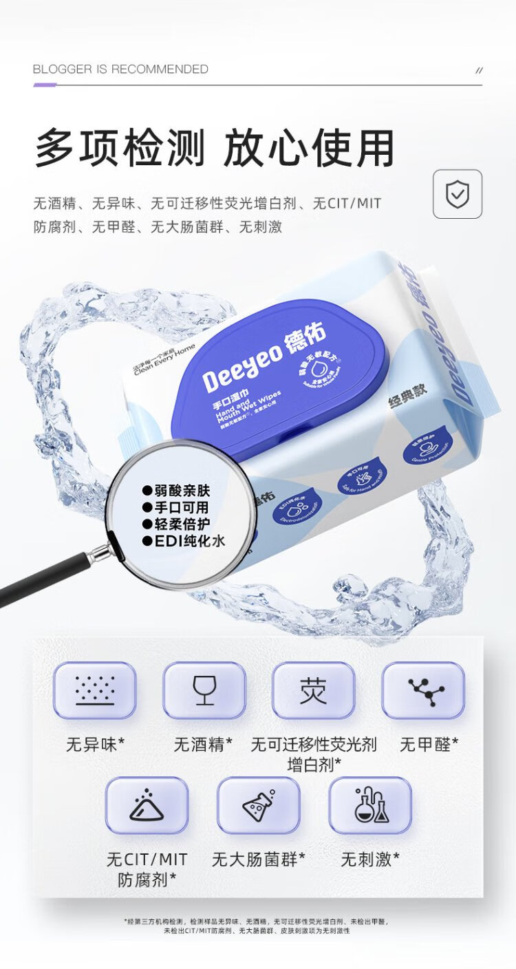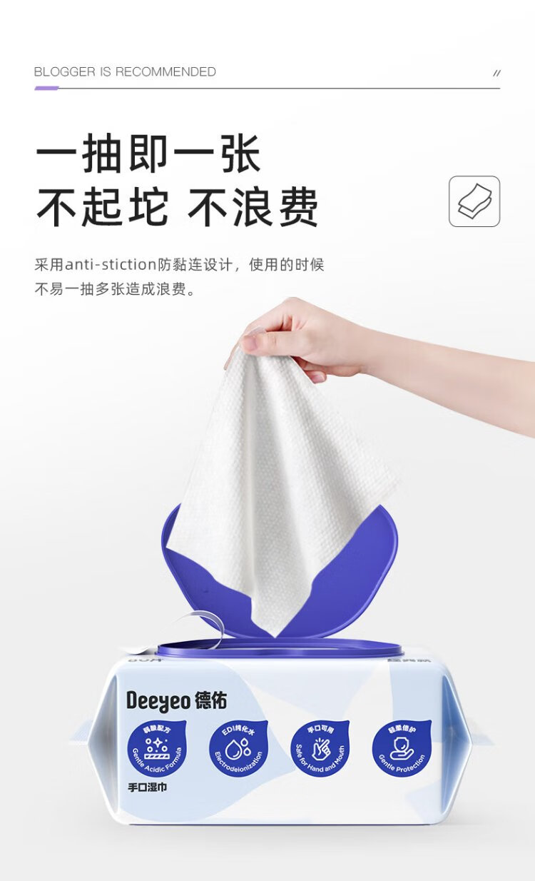 Deyou wet wipes large pack 80*10 packs EDI pure water cleansing wipes baby hand and mouth wipes in carton
