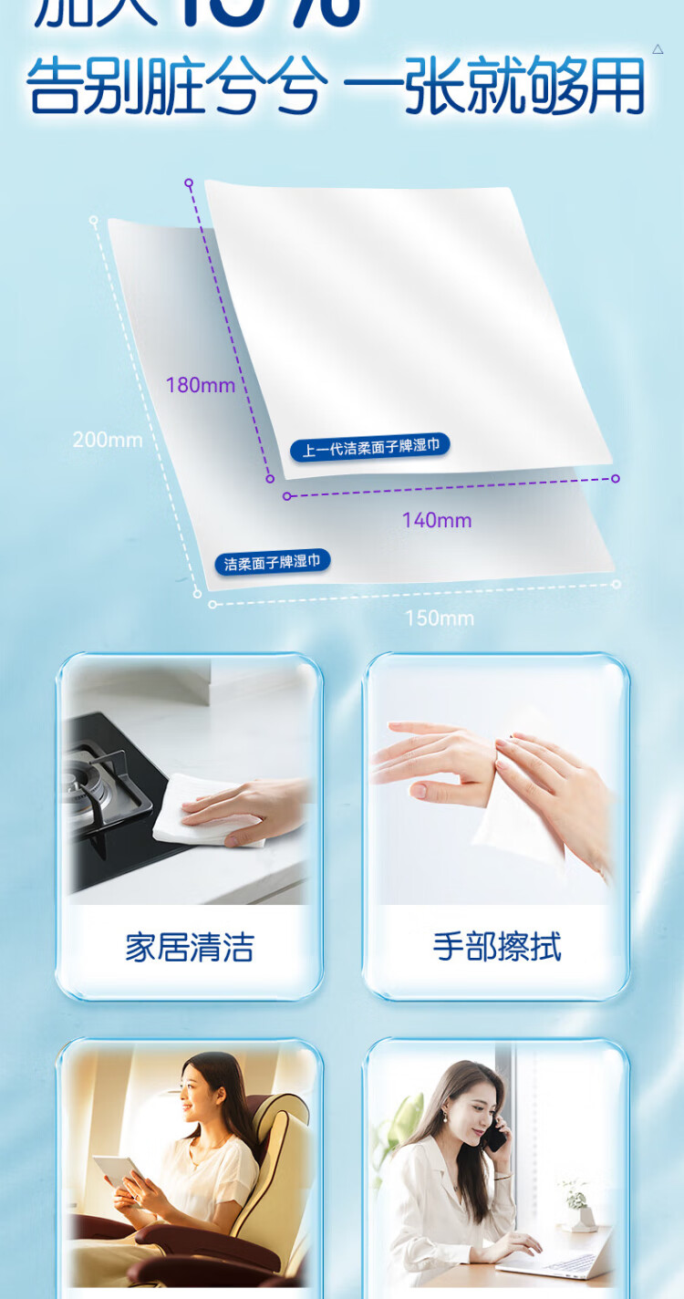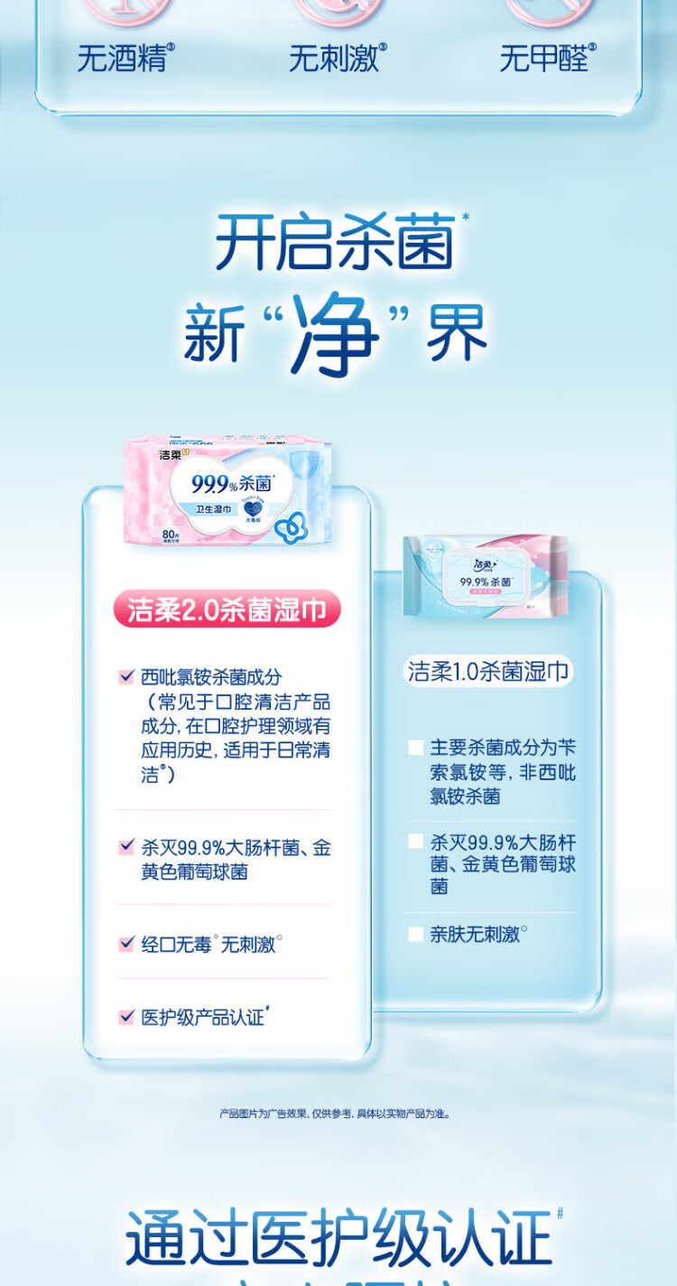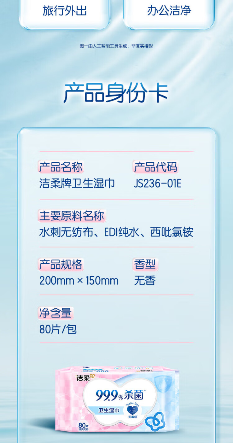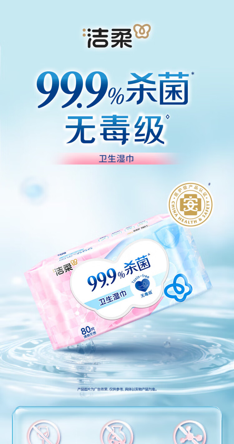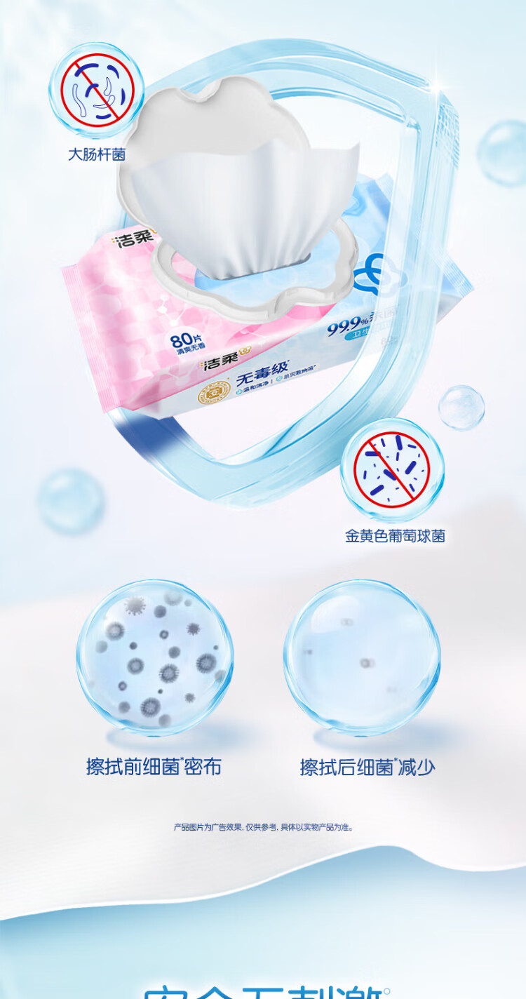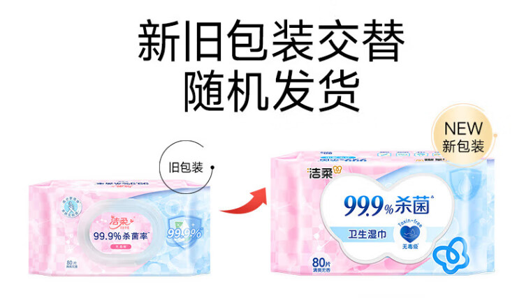 Jierou sanitary wipes thickened 80 pumps 4 packs of wet wipes 99.9% sterilizing and cleaning RO pure water care for sensitive skin whole box