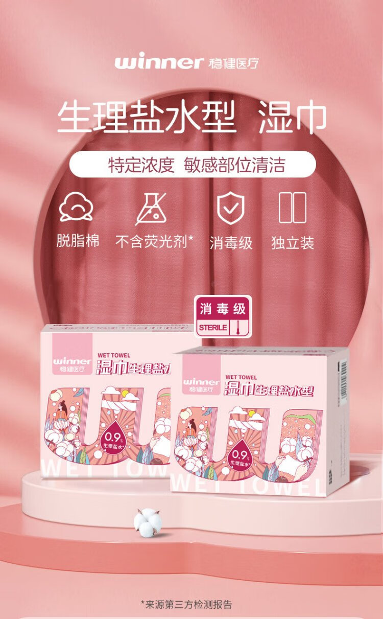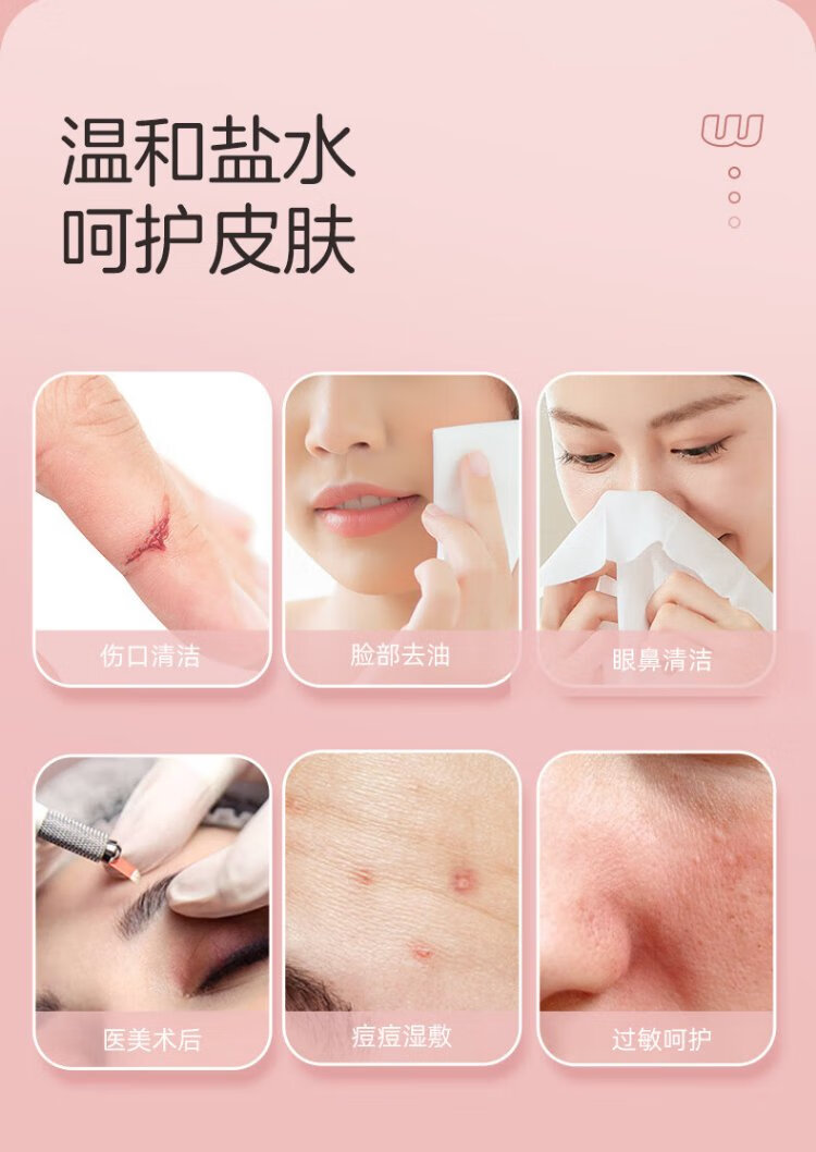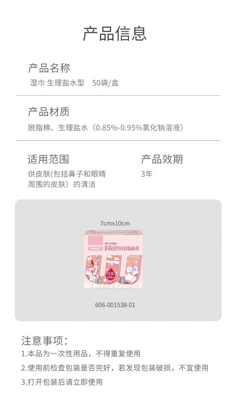 Robust 0.9% saline wipes for face, acne, eyes and nose, baby hands and mouth sterilized cleaning cotton, individually packaged 50 pieces