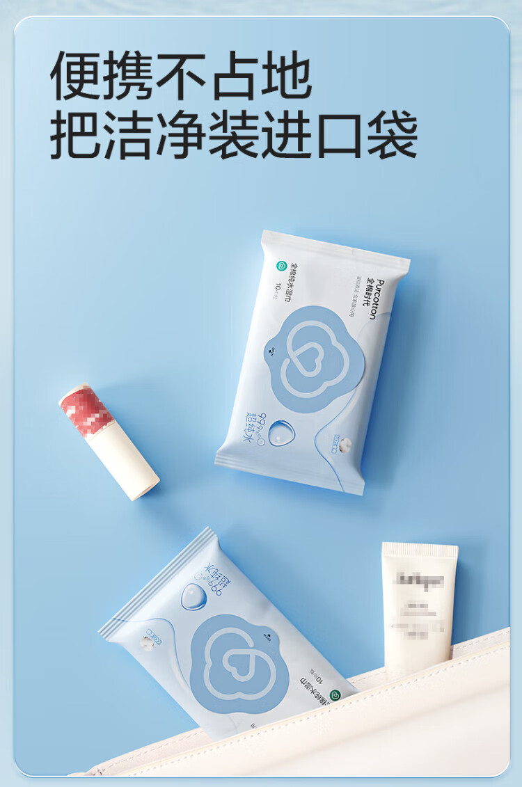 All-cotton era portable wet wipes 10 pieces * 10 packs of EDI ultrapure water 100% cotton small pack travel towel face wipes wet wipes