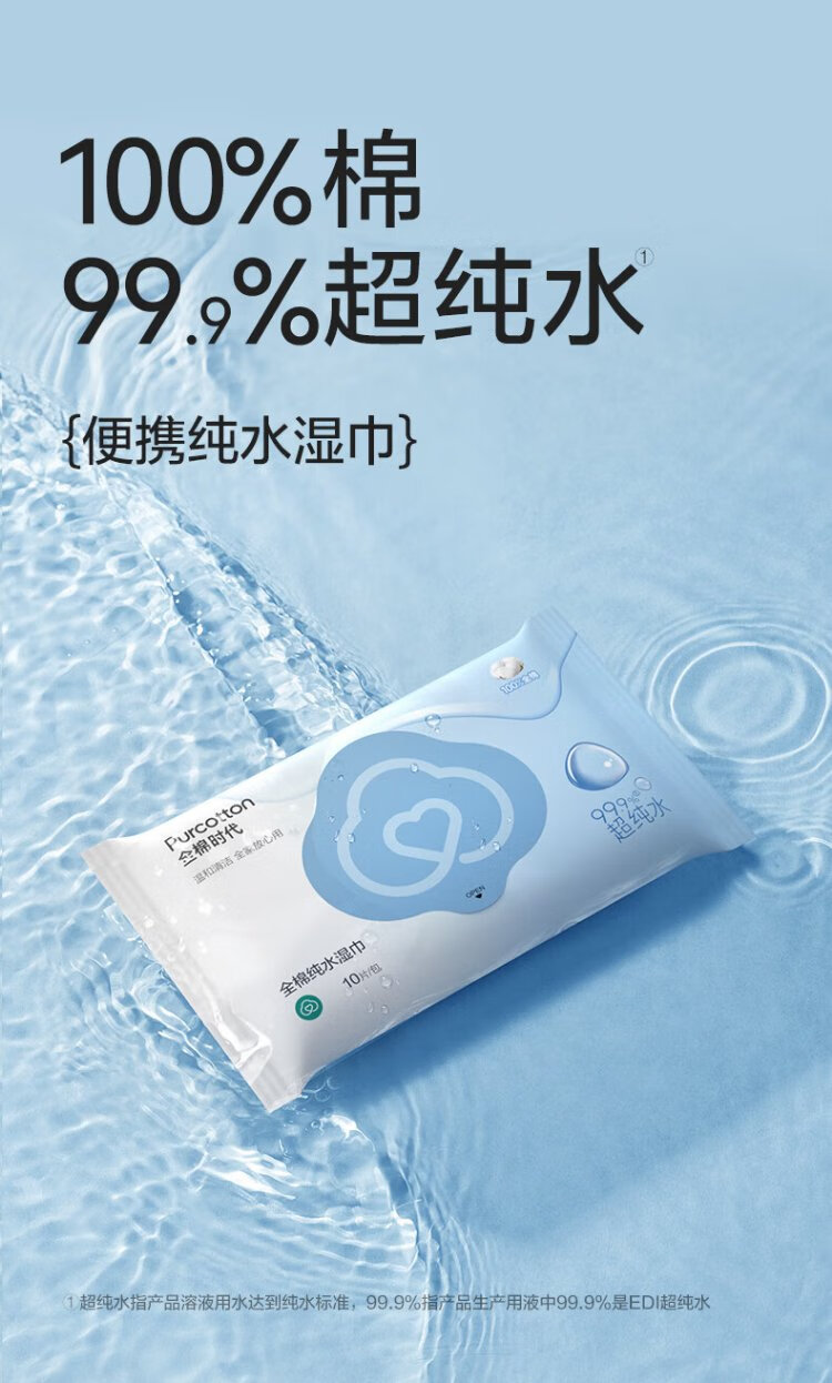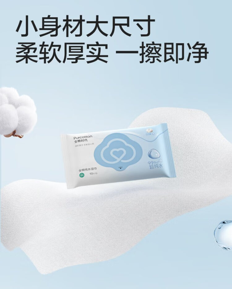 Cotton era wet wipes 10 pumps/pack*1EDI ultrapure water disposable towel for home use 100% portable 15*17.8CM