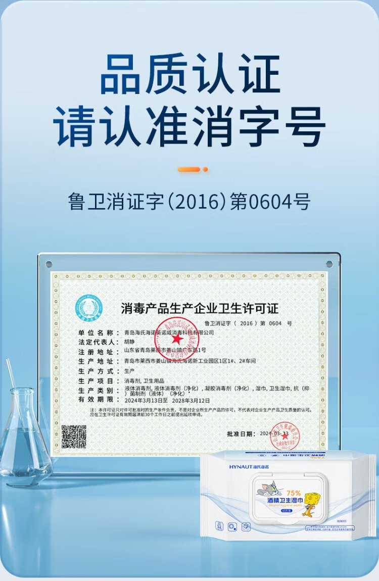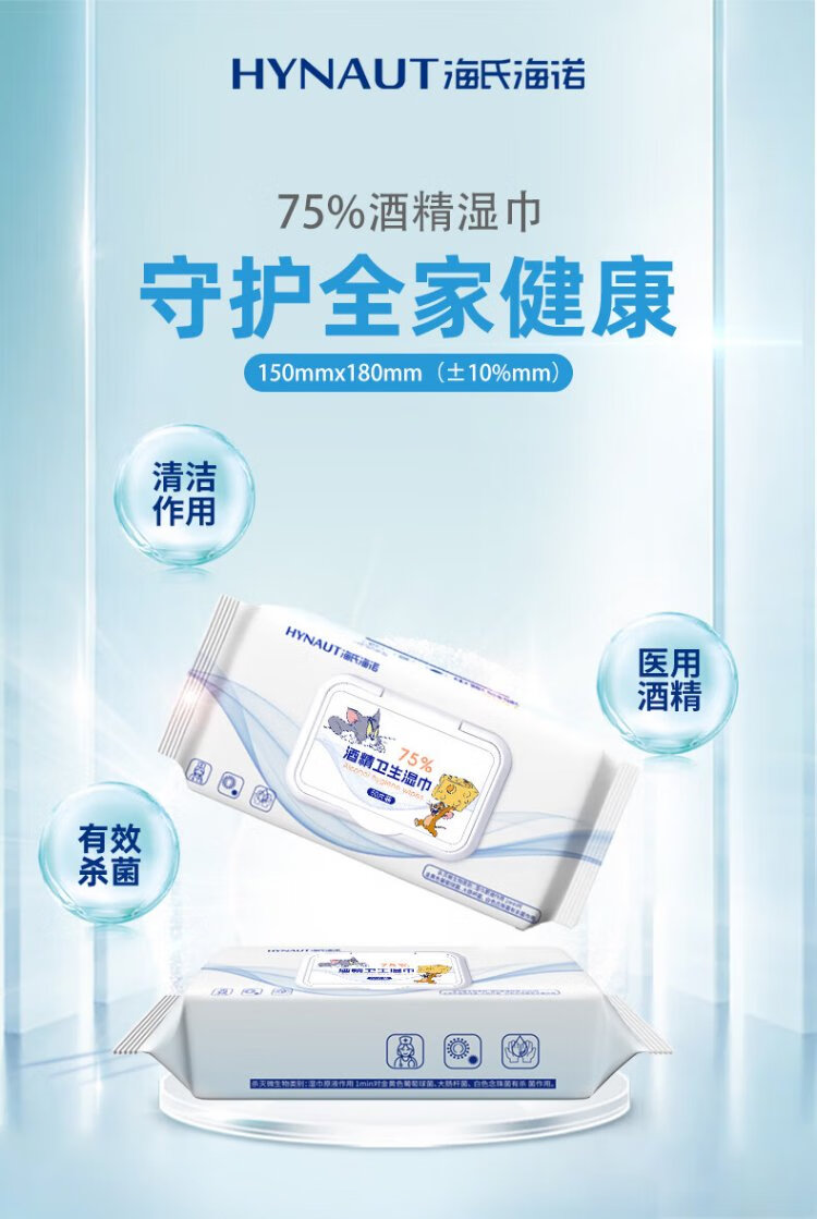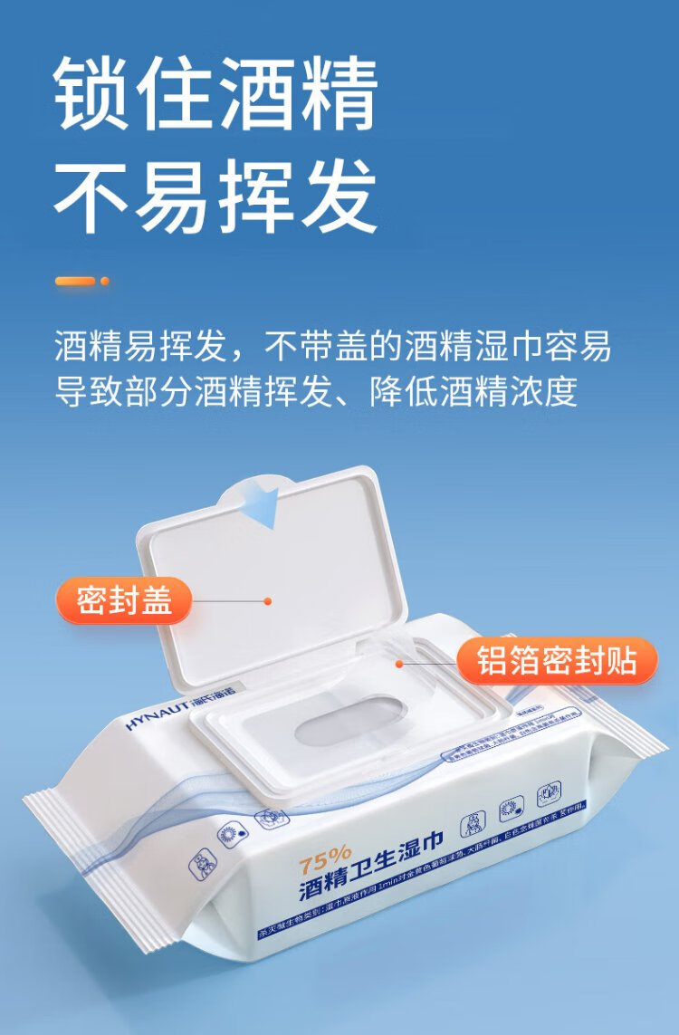Haishi Hainuo 75% alcohol wet wipes sanitary wipes large pack large size home office portable sterilization and disinfection 60 pumps