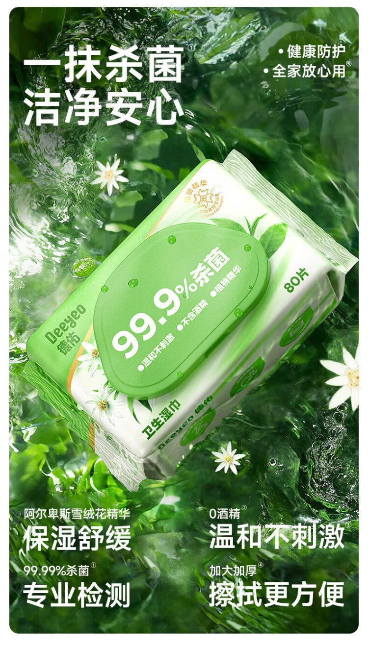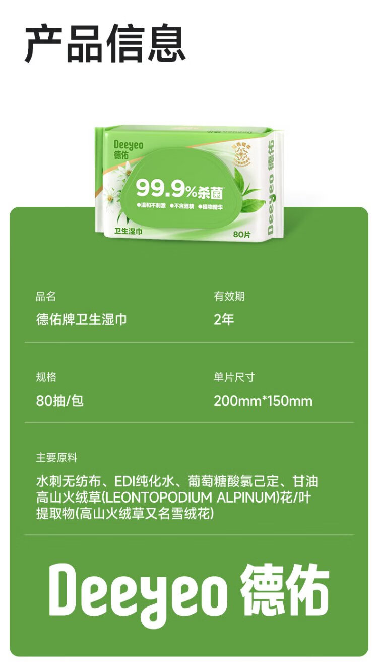 Deyou antiseptic wipes 80 cigarettes*1 pack, medical grade wet wipes, non-alcoholic sanitary wipes, sterilization rate 99.9%