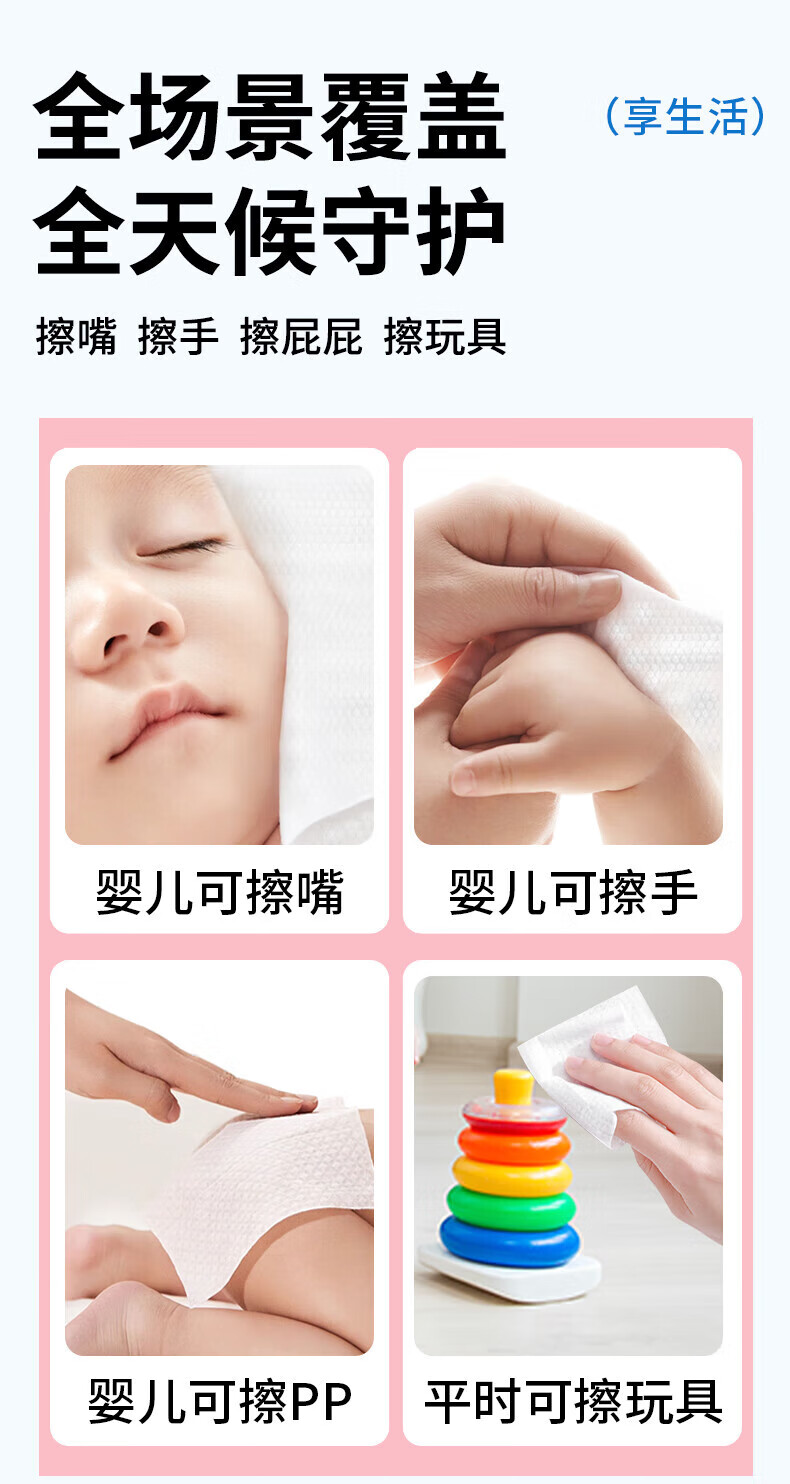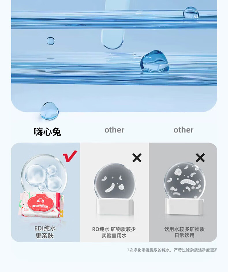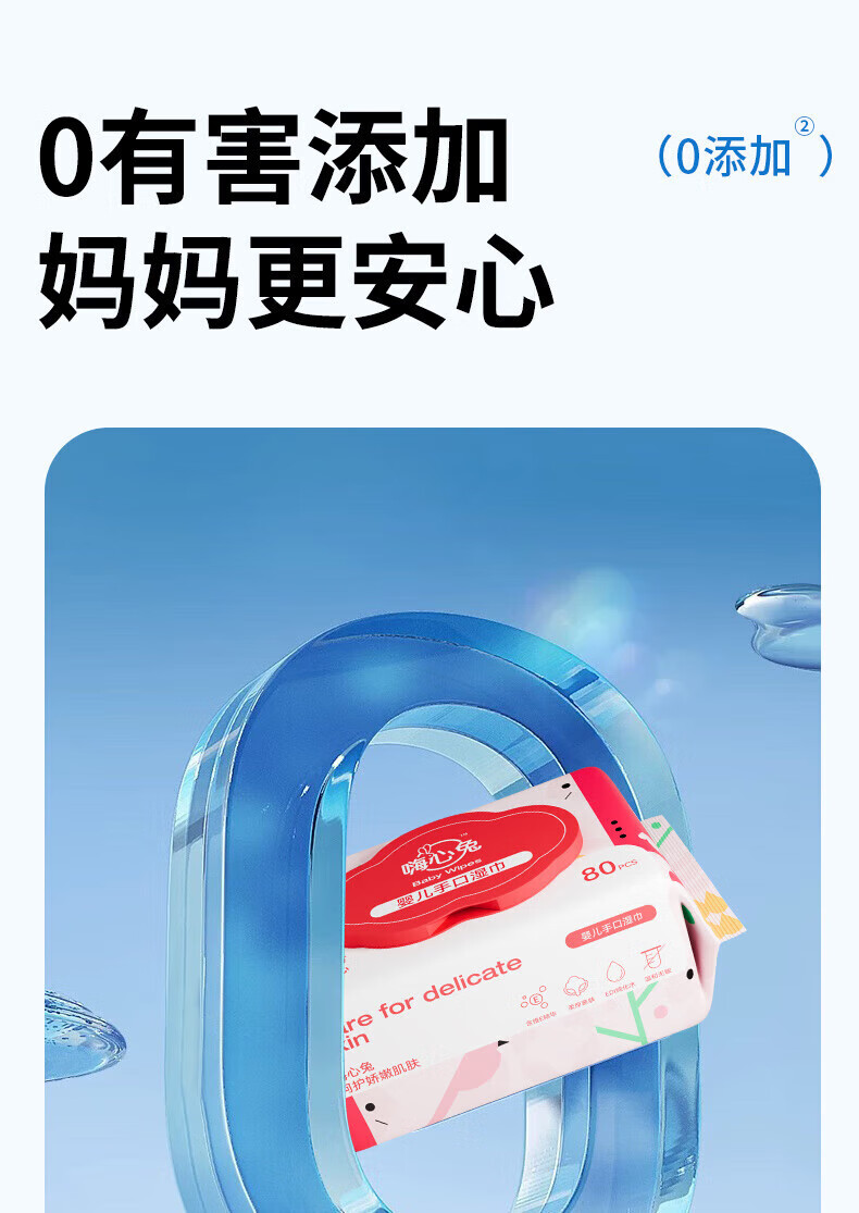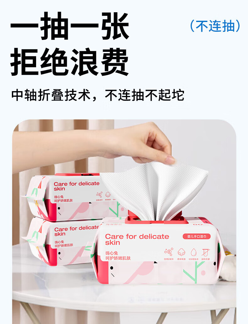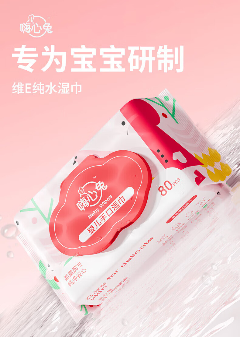 Hi Heart Rabbit EDI Pure Water Wet Wipes Large Pack Baby Vitamin E Skin Care Wet Wipes Hand and Mouth Baby Special Household Tissue Paper to Wipe Buttocks Vitamin E Skin Care Baby Special 80 Tissues*3 Pack