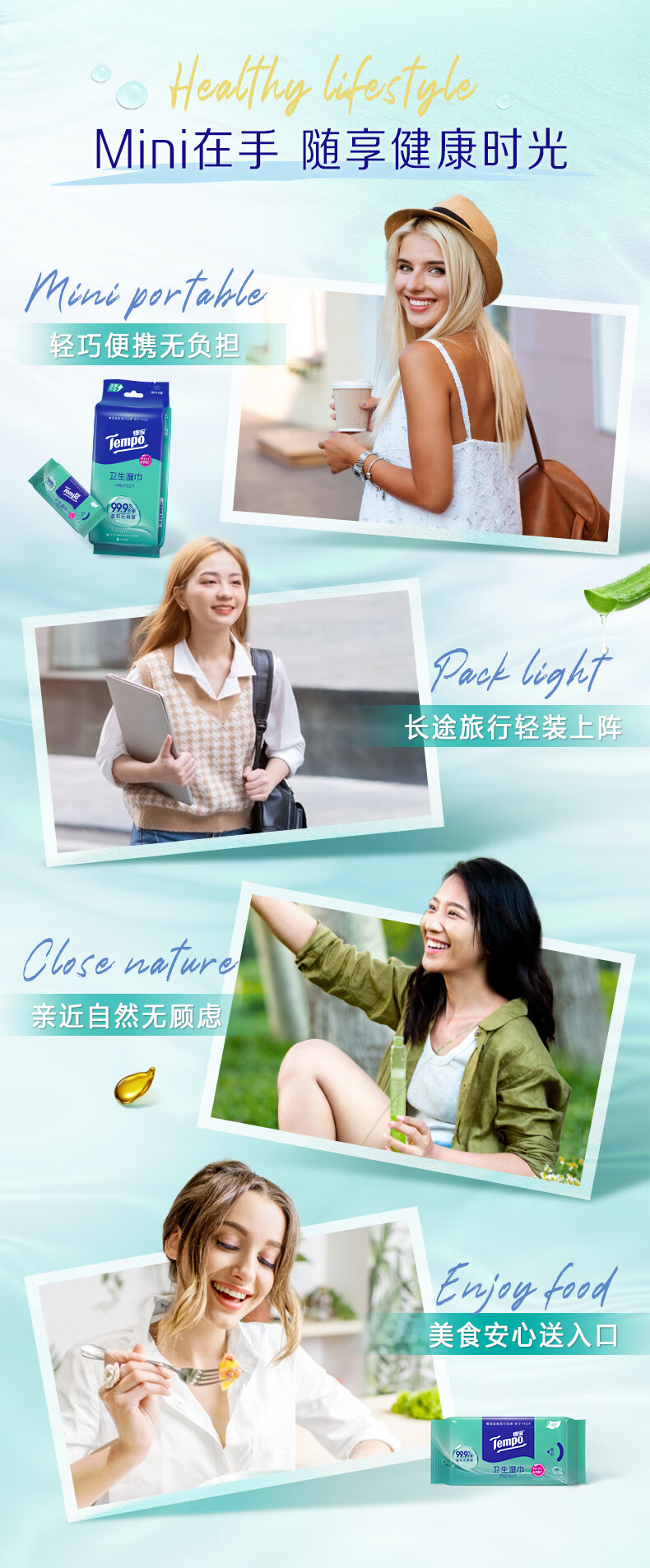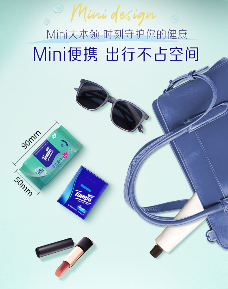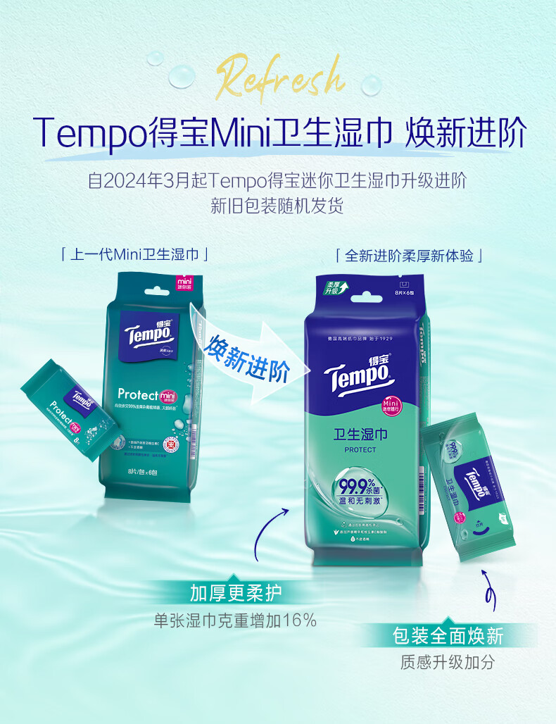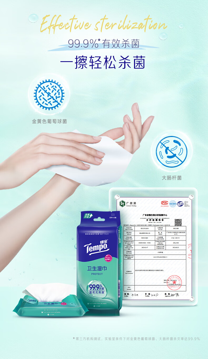 TEMPO germicidal wipes 8 pieces*6 packs mini wipes sterilization rate 99.9% mild and non-irritating wet wipes small pack 8 pieces*6 packs