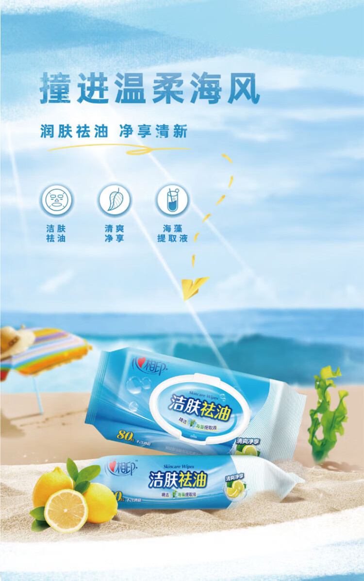 Xinxiangyin cleansing and oil-removing wipes 80 per pack, face cleansing wipes are mild and alcohol-free, new and old packaging are randomly distributed