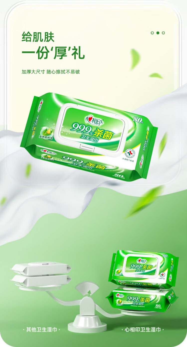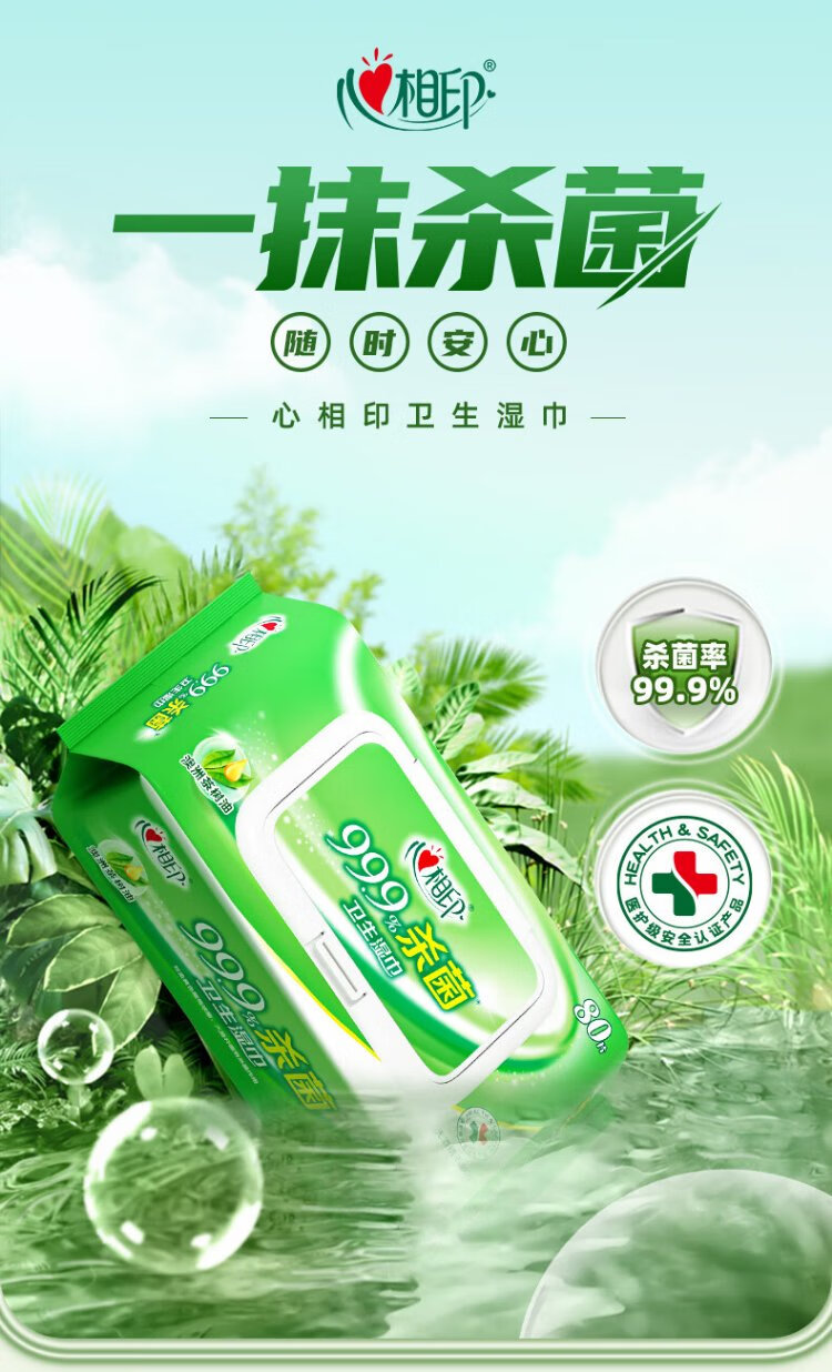 Xinxiangyin Sterilizing Wipes 80 packs, 99.9% sterilizing and hygienic, with lid for extraction, new and old packaging