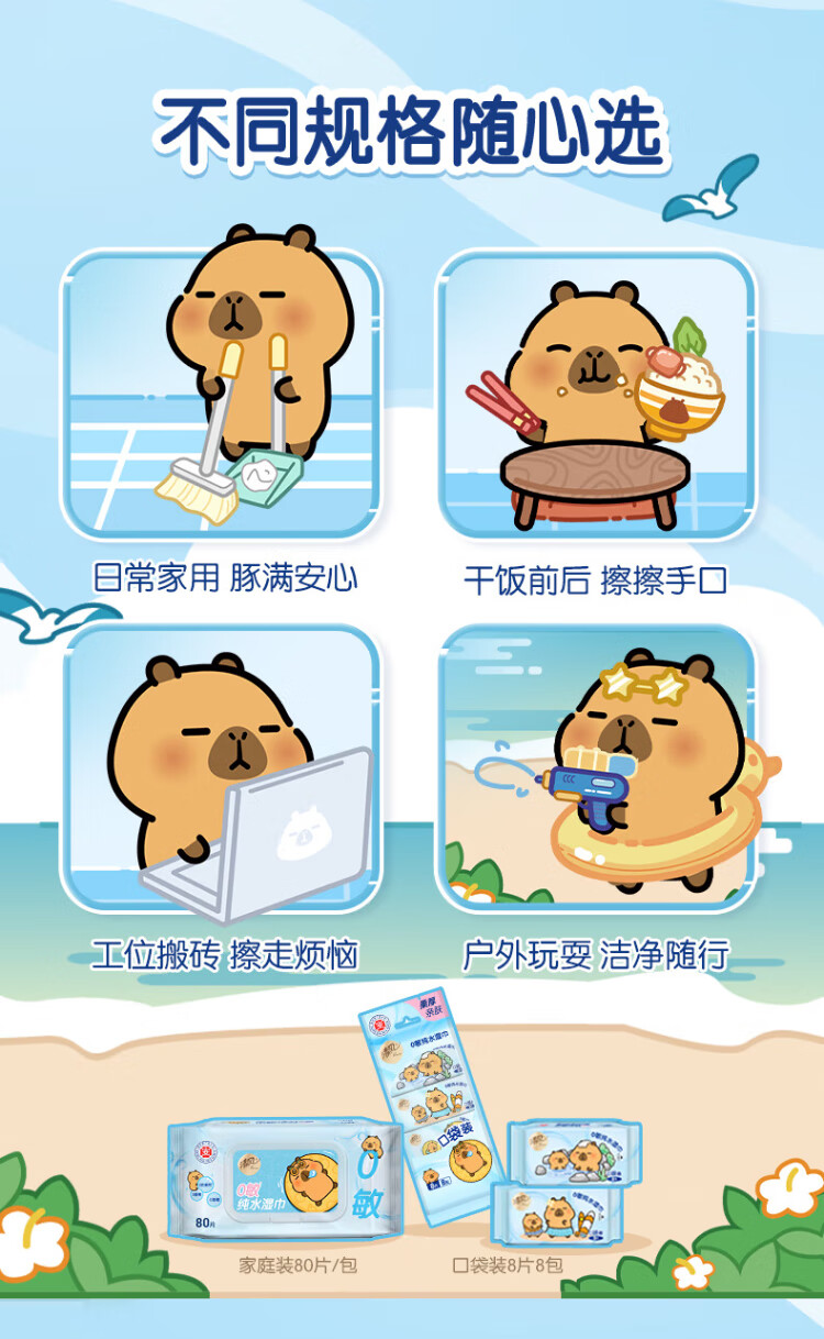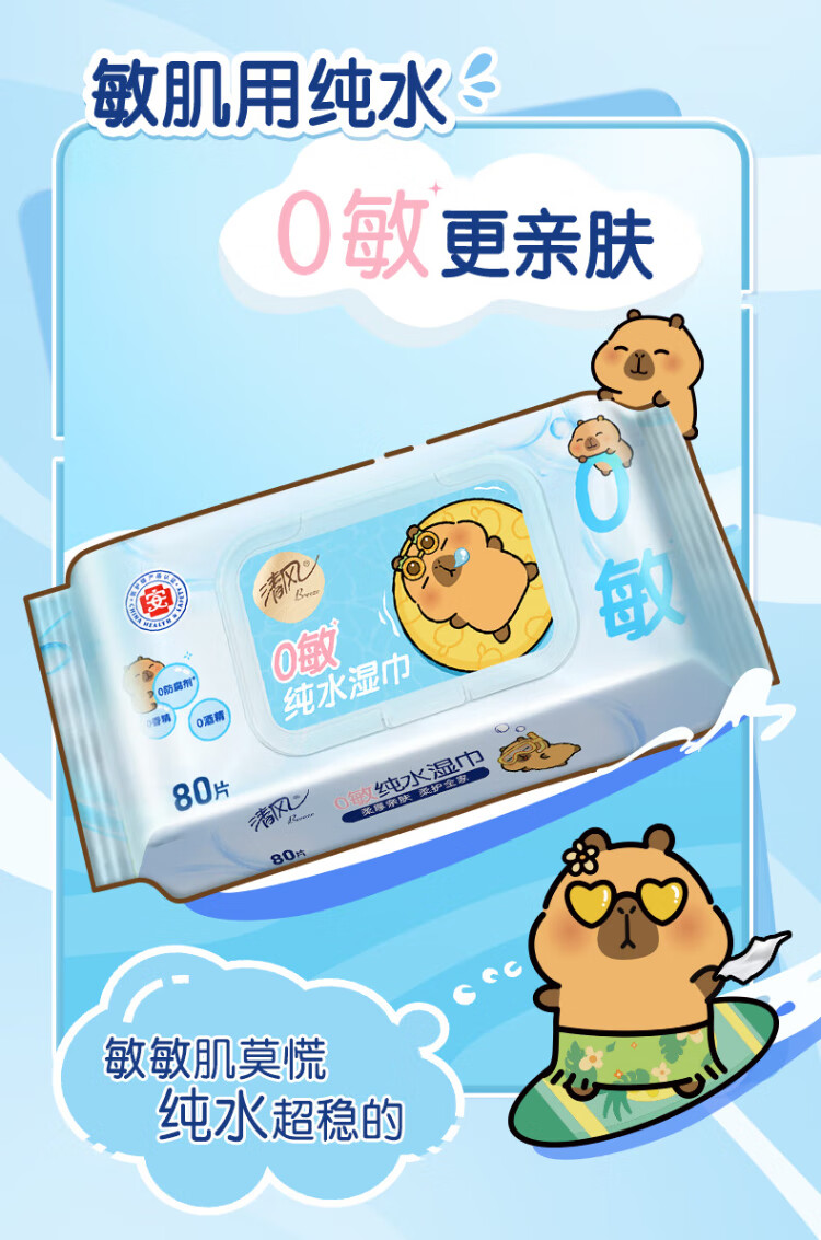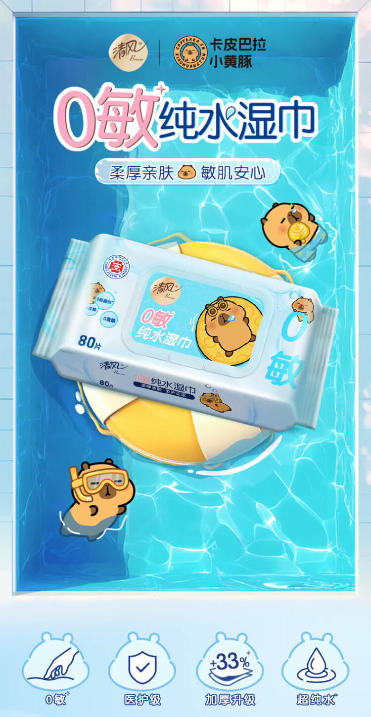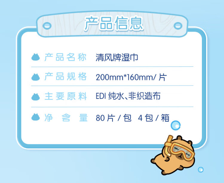 Qingfeng Li Yunrui's same style EDI pure water wet wipes 80 pieces * 4 packs, alcohol-free, can be used for hands and mouth, wet wipes