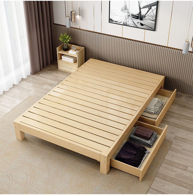 No bedside bed frame double bed solid wood bed 1.8m double bed tatami bed frame modern simple 1.2 simple single bed for rental 1.5m (tatami) solid wood model 30 high 1.8 meters wide * 1.9 meters long