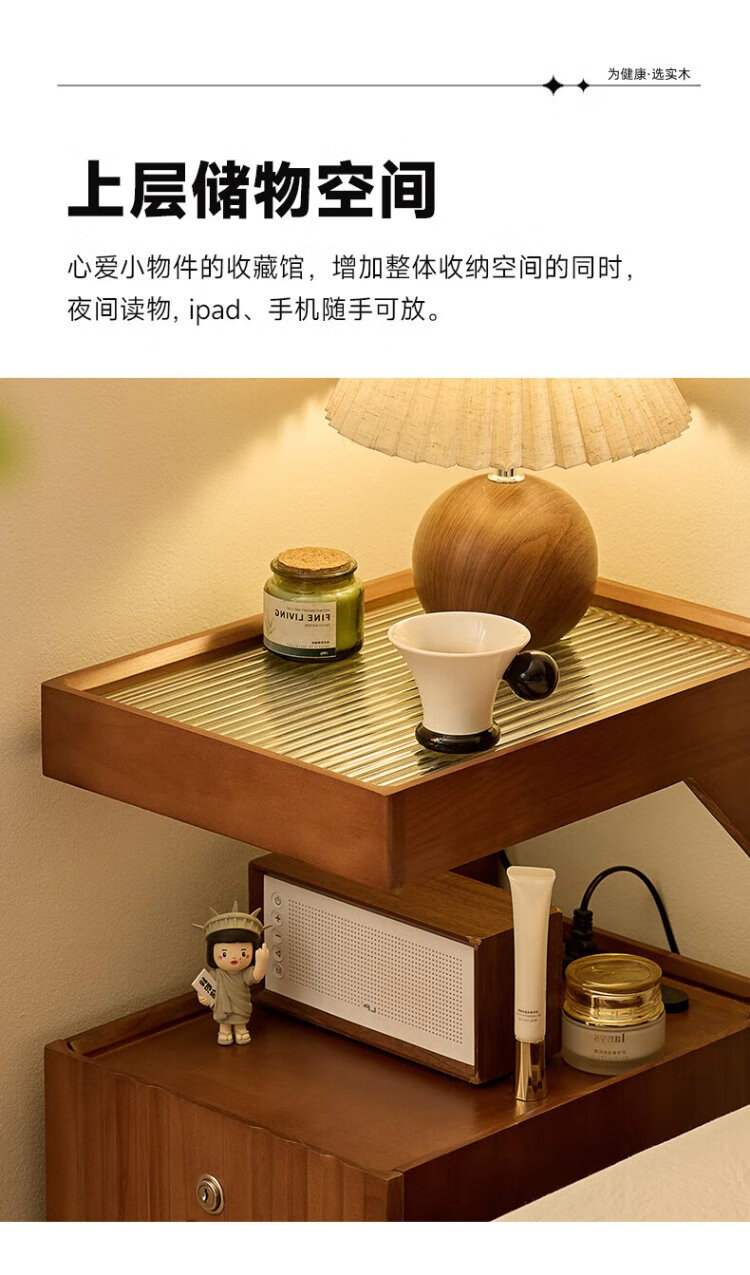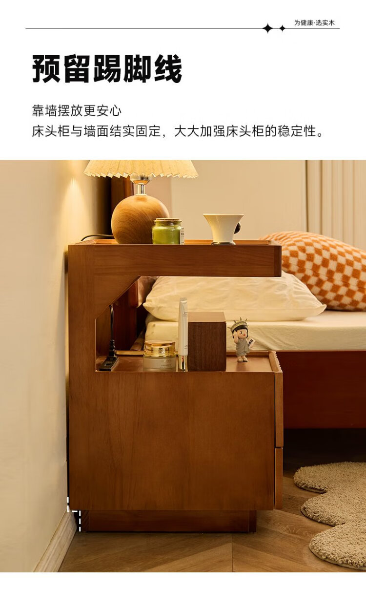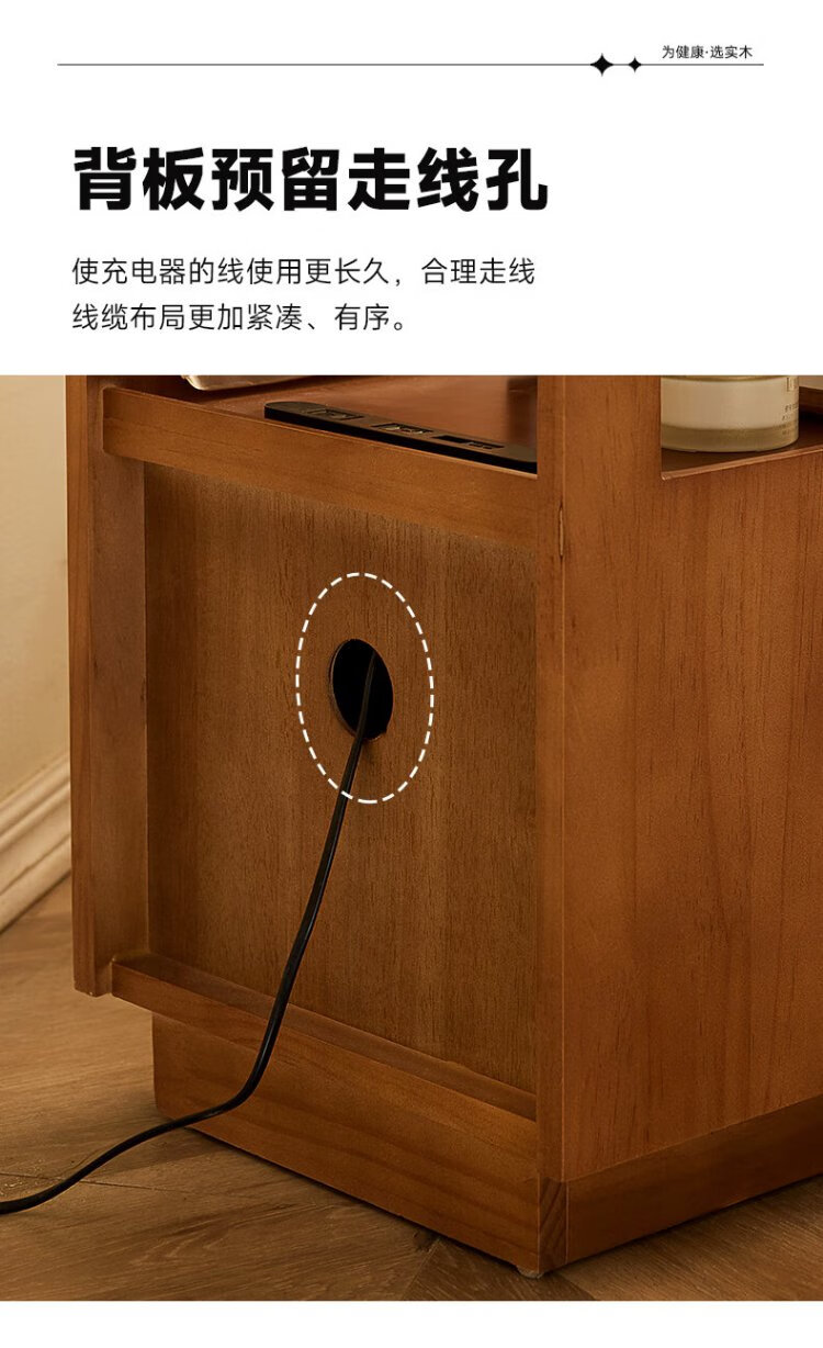家逸全实木床头柜小型卧室置物柜高级感窄逢收纳柜带抽屉2025新款