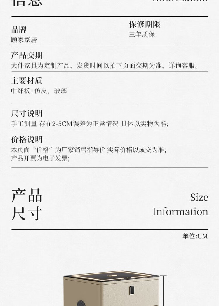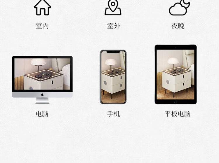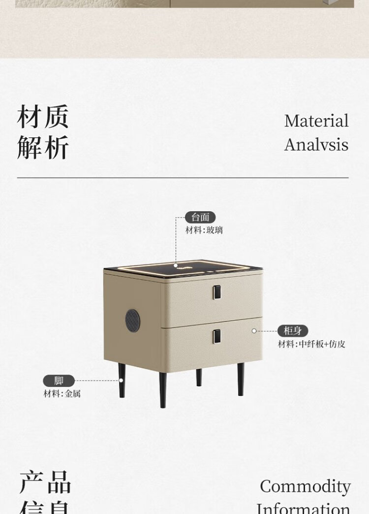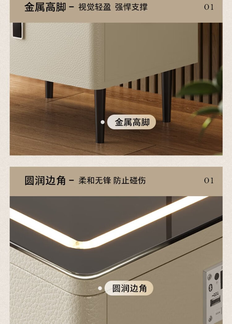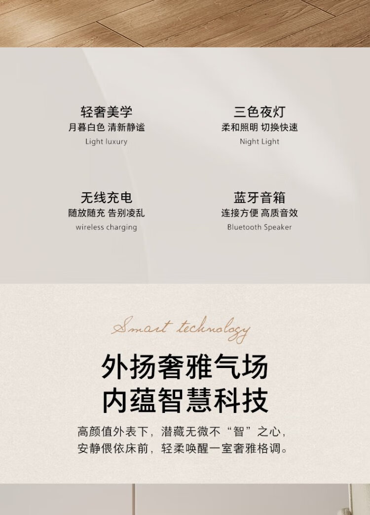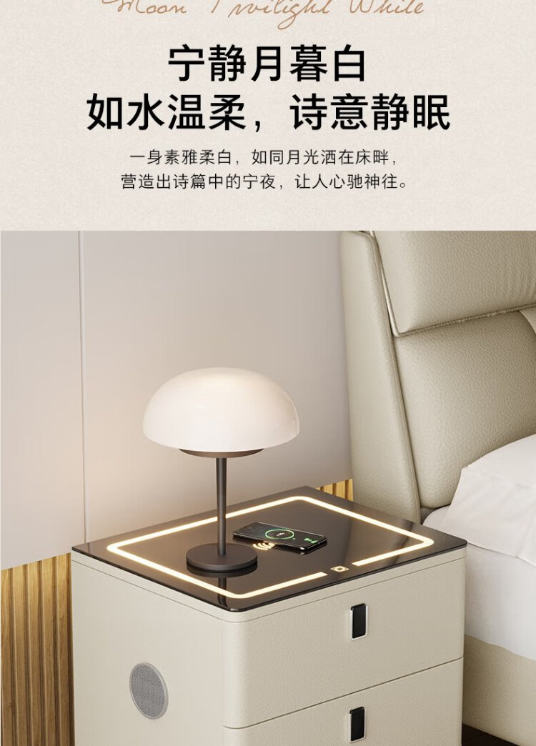 Gujia Home Light Luxus-Schlafzimmer-Smart-Nachttisch DS7932G Beige Supreme-Modell Audio + kabelloses Laden + Sensor-Lichtleiste