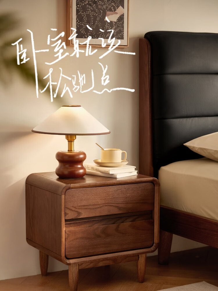 Lin's Home Retro All Solid Wood Bedside Table New Oak Ultra-Narrow Storage Cabinet Lin's Wood Cocoa Series LH586B1 Retro Color | 586B1-A Bedside Table Express