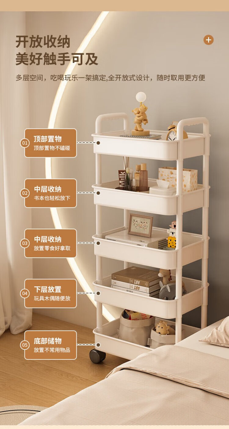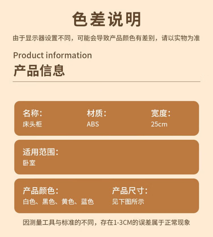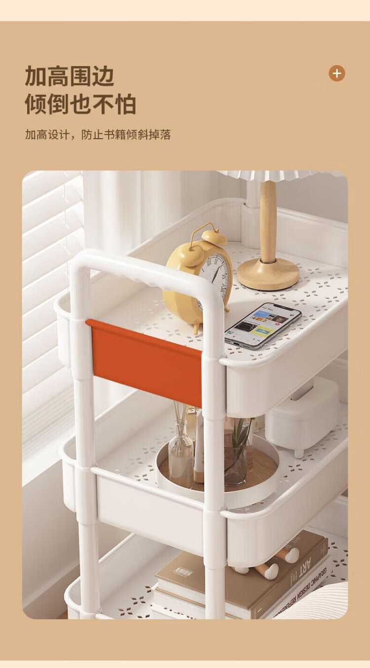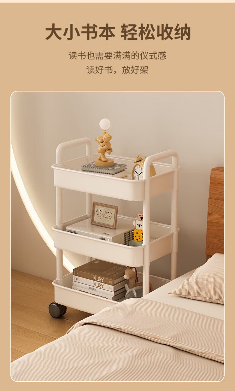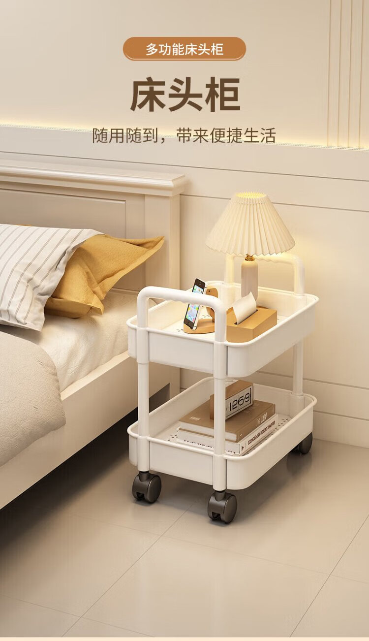 Verschwenden Sie keine Zeit, Nachttisch, schlicht, modern, Schlafzimmer, Nachttisch, kleines Aufbewahrungsregal, Heimsofa, Mini-Beistelltisch, beweglicher kleiner Schrank, zwei Schichten – perlweiß, gratis, 4 Riemenscheiben + Haken