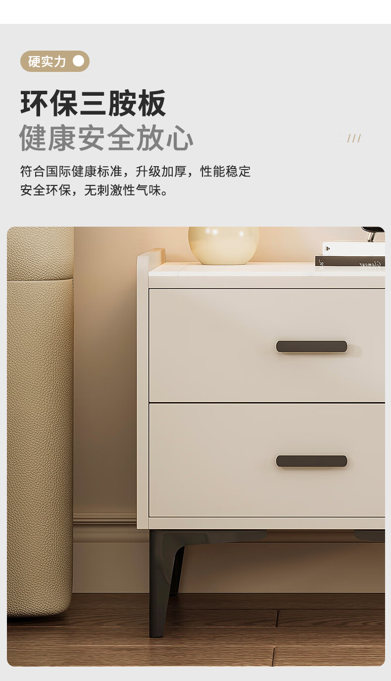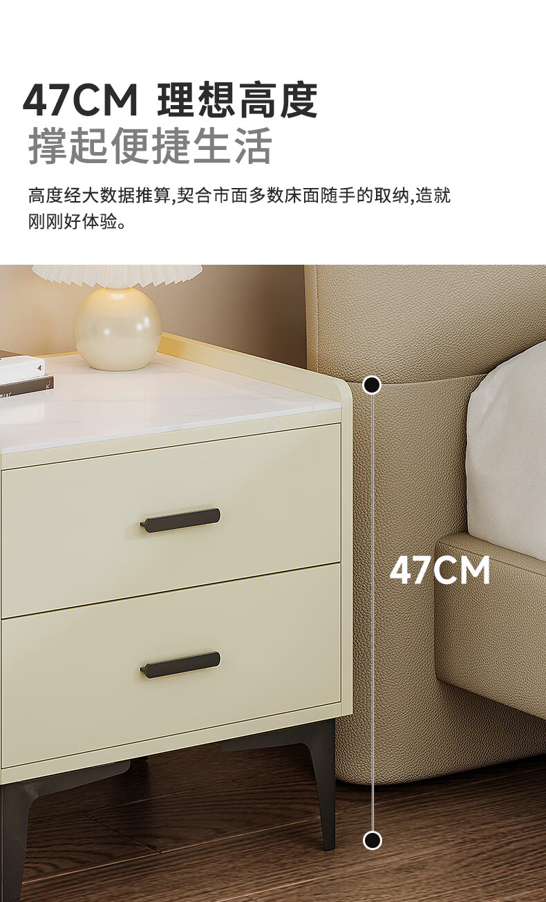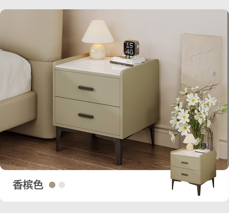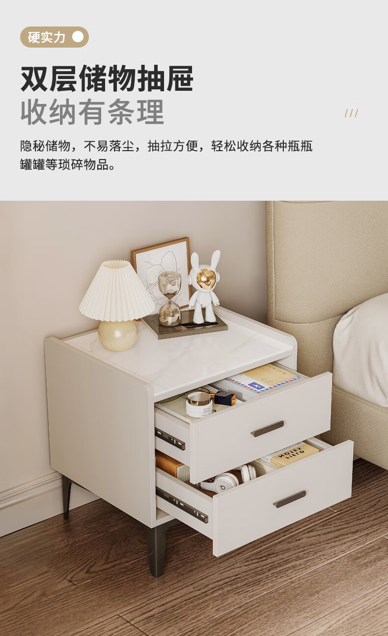 Sophia Slate Bedside Table Bedroom Small Storage Cabinet Bedside Cabinet Storage Cabinet All-in-one Modern Simple Home Furnishings Milk White Minimalist Bedside Table