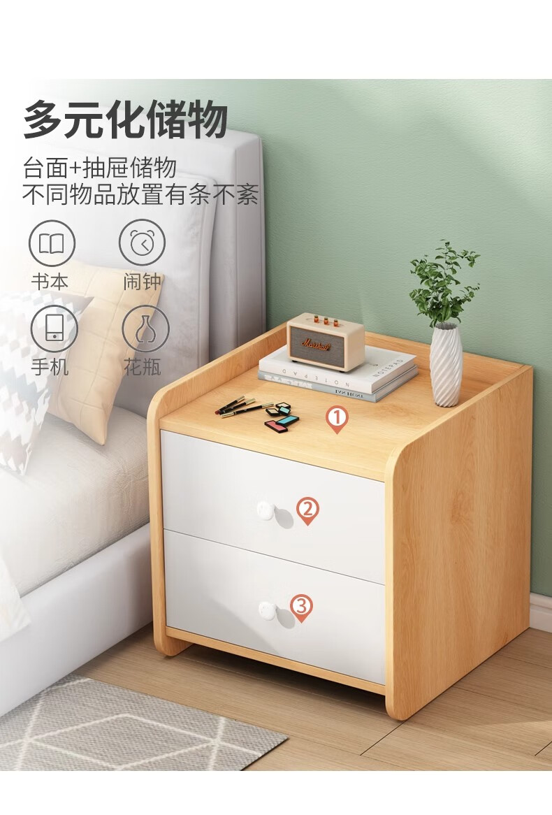 Oumao Bedside Table Light Luxury Simple Modern Bedside Storage Rack Italian Storage Cabinet Small Ins Style Bedroom Storage Cabinet Three Drawers Warm White (Upgraded Model)