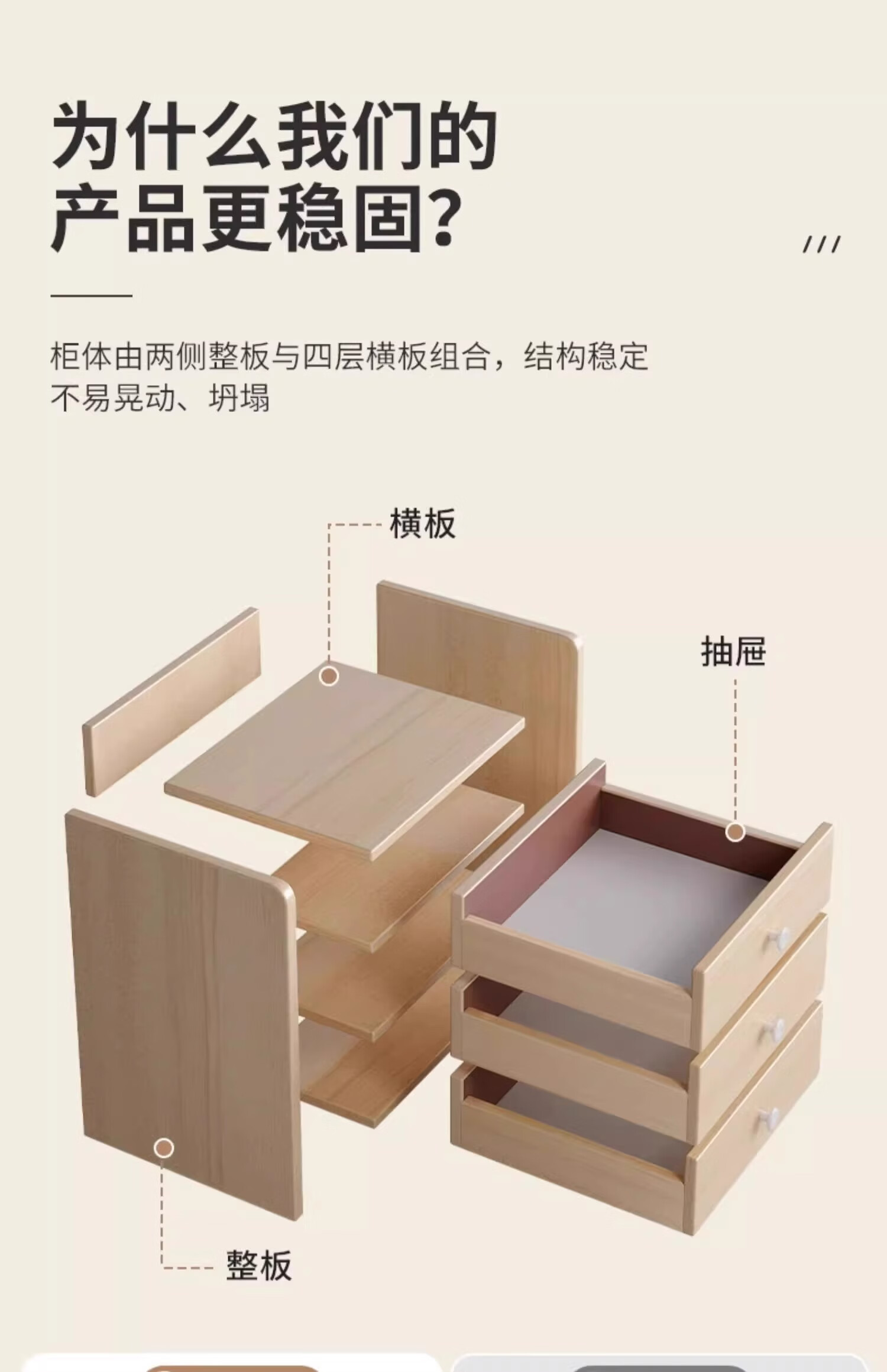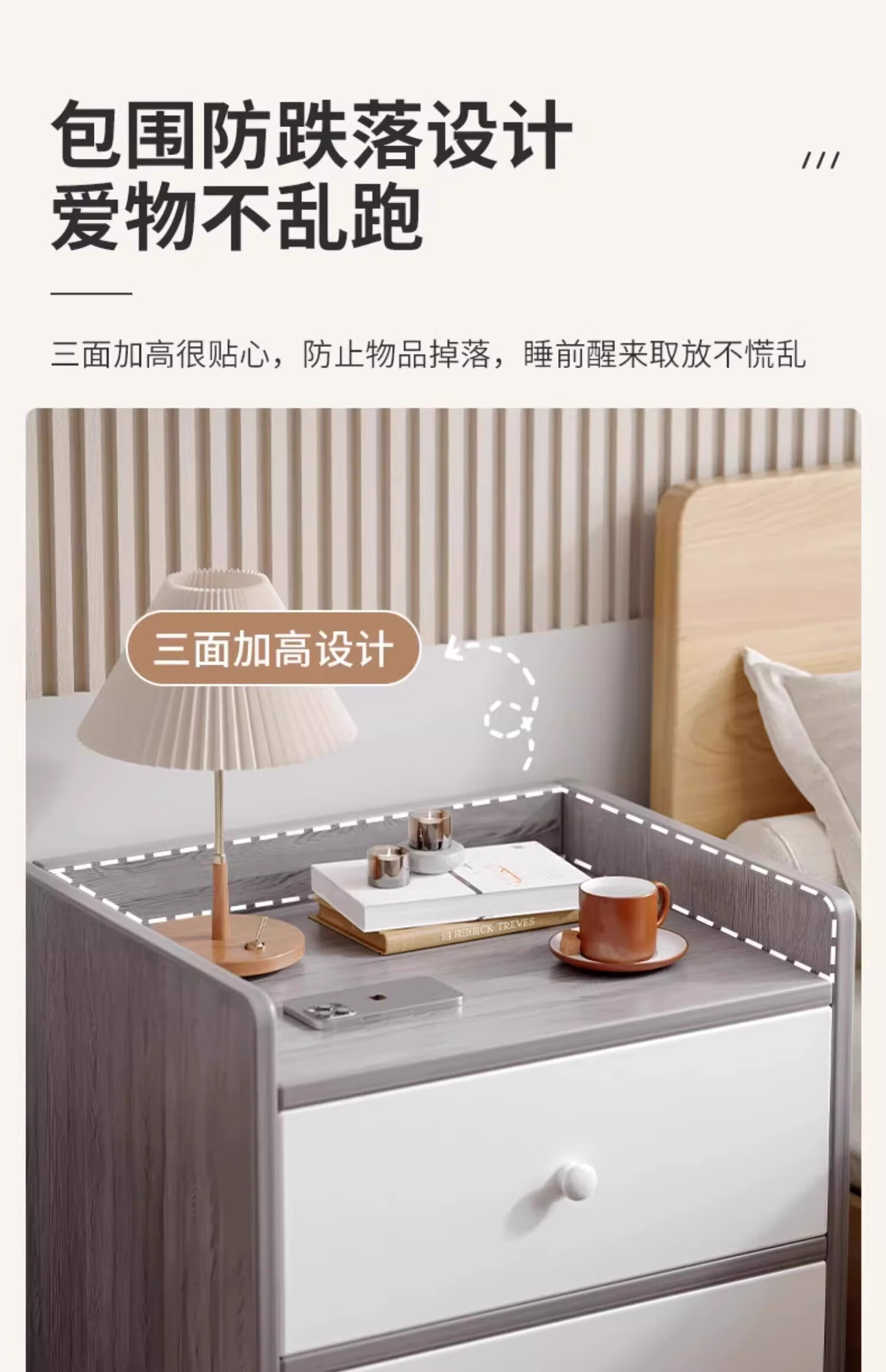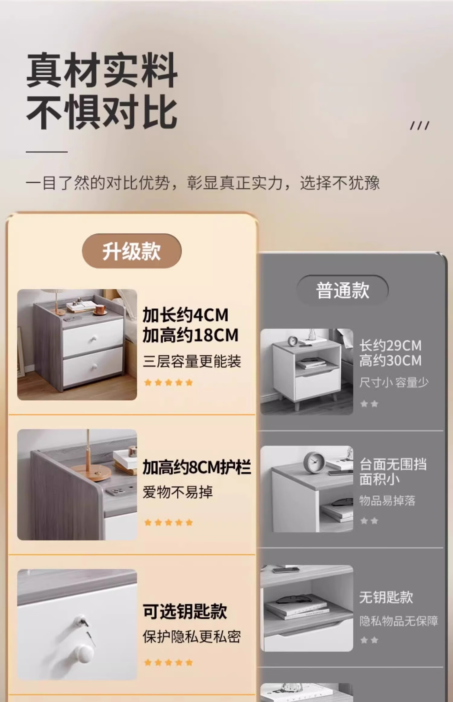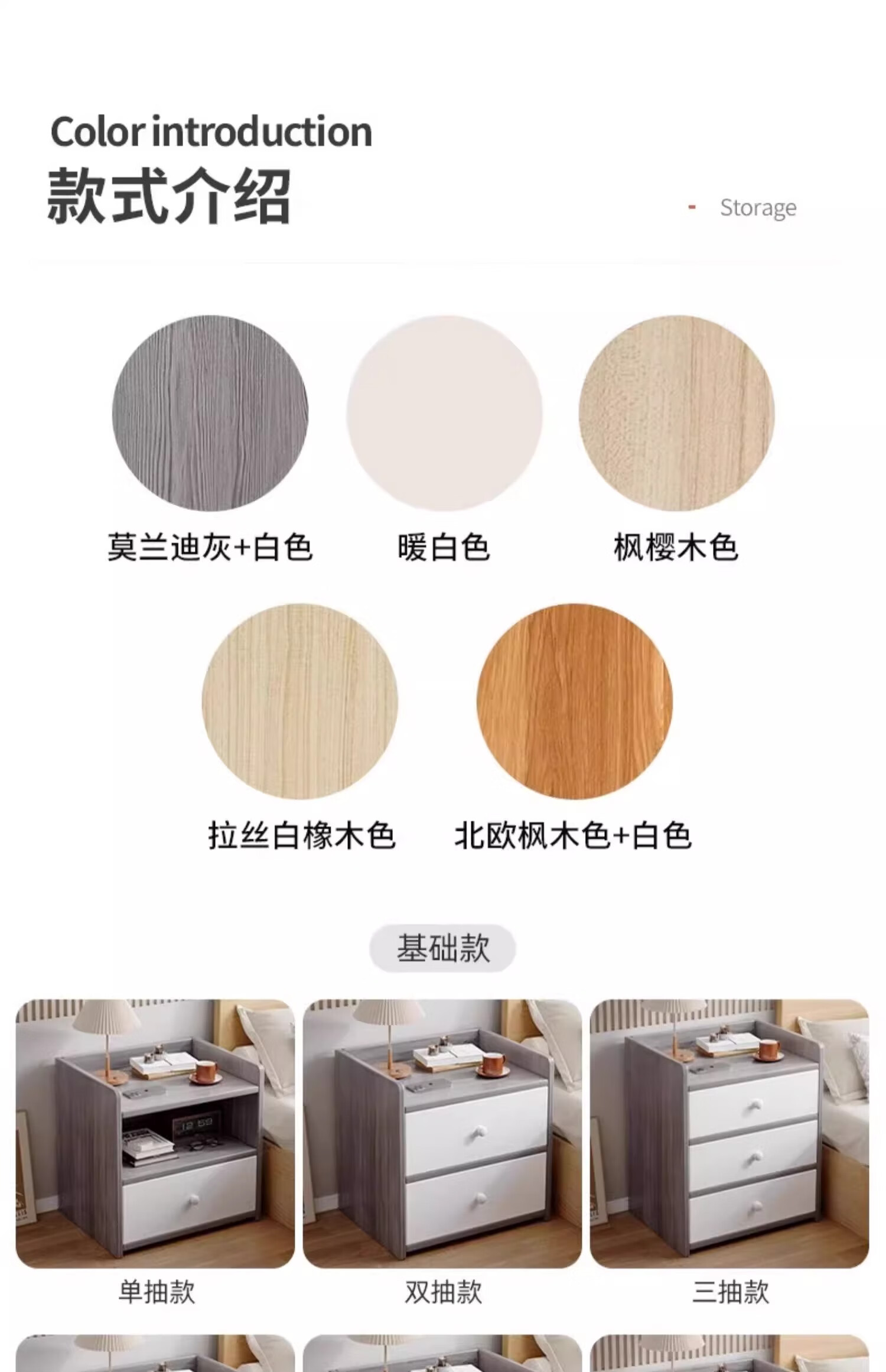 Zhongtao Nachttisch, Schlafzimmer, Massivholzfarbe, modern, schlicht, klein, Nachttisch-Aufbewahrungsregal mit Schloss, einfache Aufbewahrung, Nachttisch, Bild 2 – einzelne Schublade mit Schloss