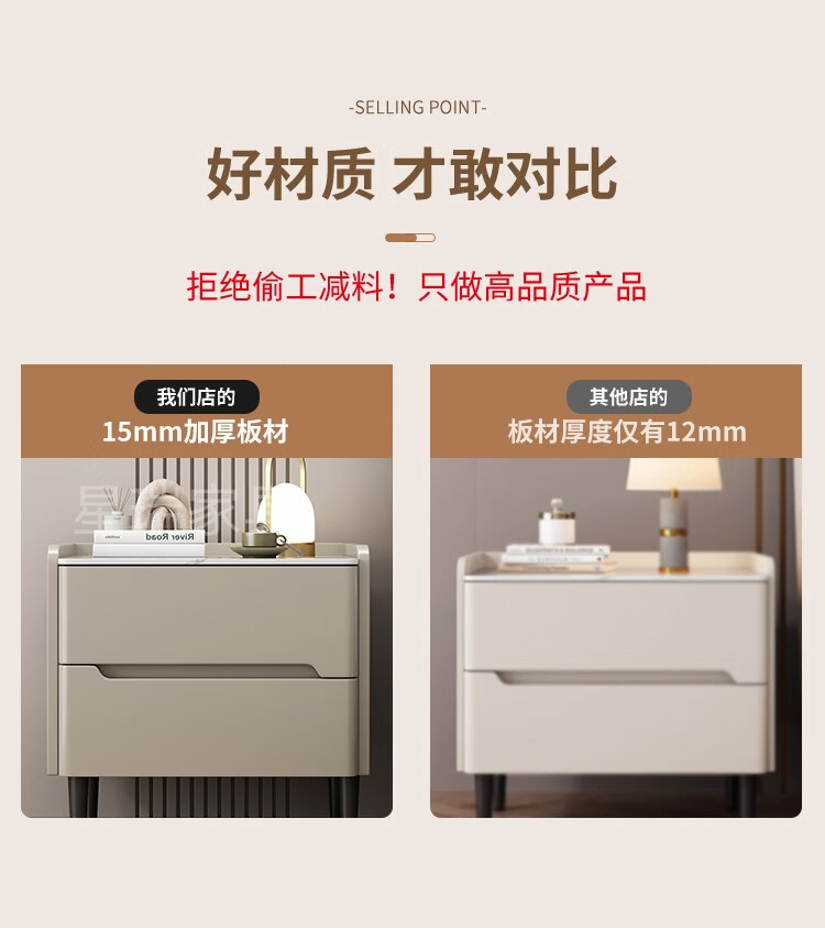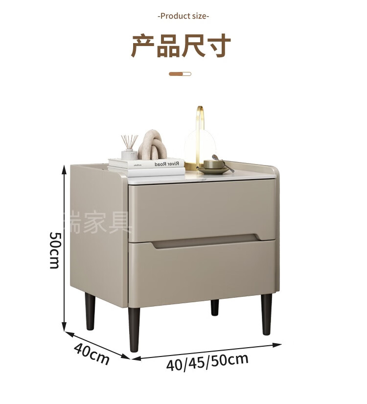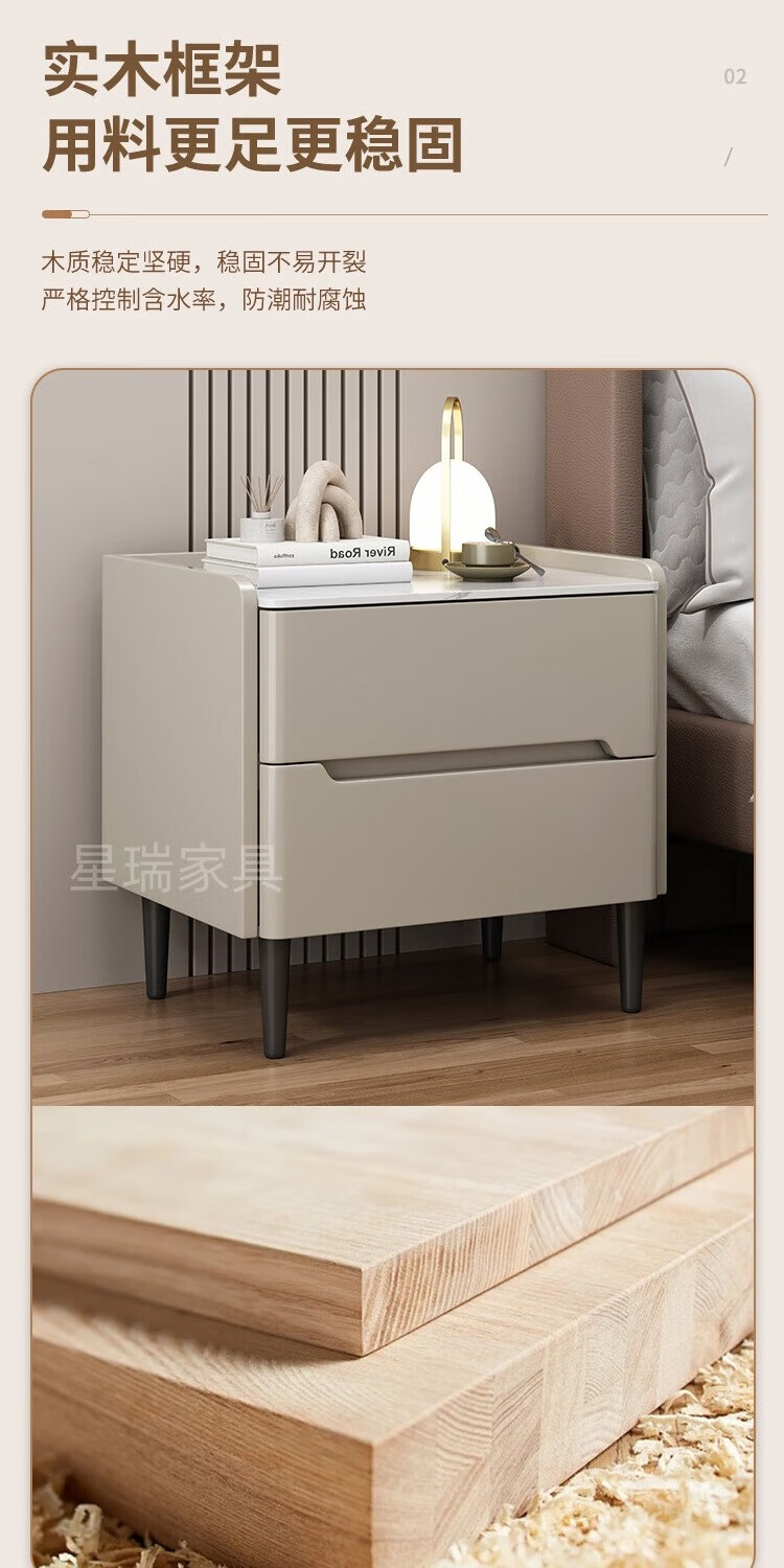 Komplett aus Massivholz lackierter Nachttisch, heller luxuriöser Schiefer-Aufbewahrungsschrank, Schlafzimmer, einfacher moderner Nachttisch, kleiner Wohnungs-Aufbewahrungsschrank, Khaki-Farbe (umweltfreundliches und geruchloses Lackierverfahren auf Wasserbasis), 50 x 40 x 50 cm
